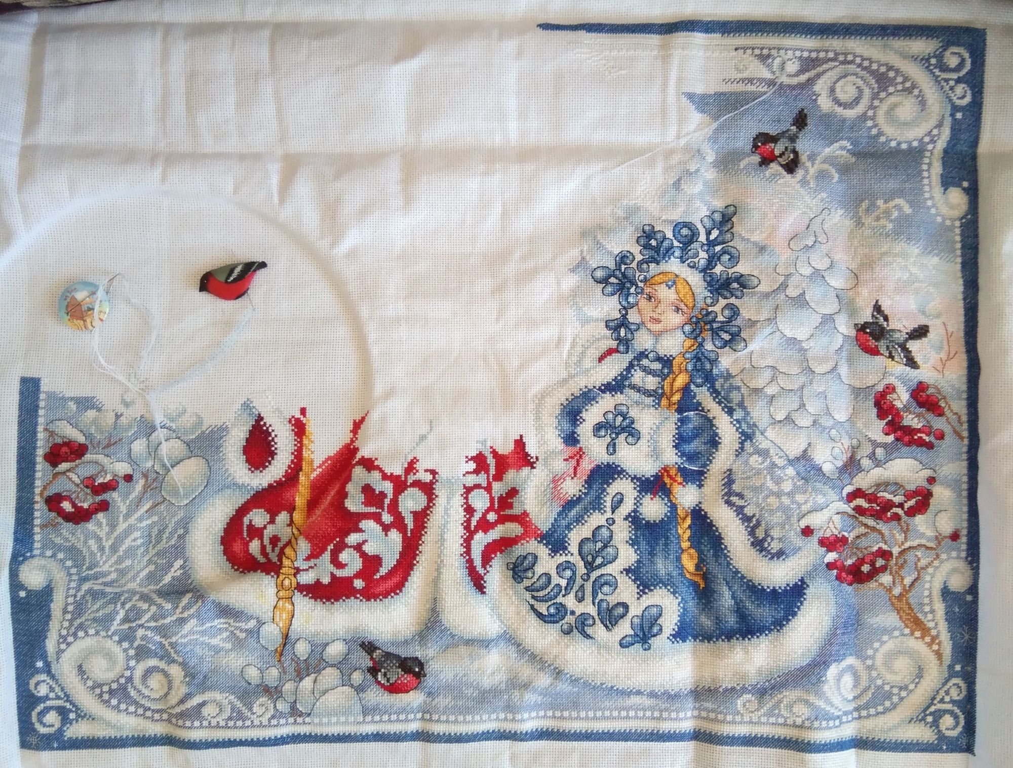 27 марта 2022 Всем доброго здравия У вас как погодка? У нас прям зима зимой...метель, вьюга. Время отчёта. Но у меня не густо в принципе вышивалось не много, потому что одна мелкая козявочка сломала ручку ходим в гипсе....сама в шоке....плюс простыла когда из травмы вышли. Здесь сами виноваты нету курточку надели и она на гипс не застегнулась. Но мы не думали, что перелом ёпрст! 30 числа едем снимать гипс. Вернёмся к нашим баранам, т.е отчёту. Вышивала баннер димовский. Хорошо так вышивается. Можно вышивать с закрытыми глазами) ну и как водится бэк делаю сразу. Танцы с бубнами тоже были. Это ж американец и я решила, что ниточки надо постирать и не прогадала полиняло три цвета. Два дня вымачивала, замачивала, отстаивала. Вроде справилась. Так же вышивала Зимнюю сказку. Продвижение есть, но на 18 канве при таком размере капля в море,так что показывать не буду. За выходные не сделала ни одного крестика, грустно. На сим откланиваюсь. Всем хорошего настроения и крепкого здоровья Дикая белочка, irchick2308, Хозяйка смешных зверей и 13 других сказали спасибо Поделиться сообщением Ссылка на сообщение