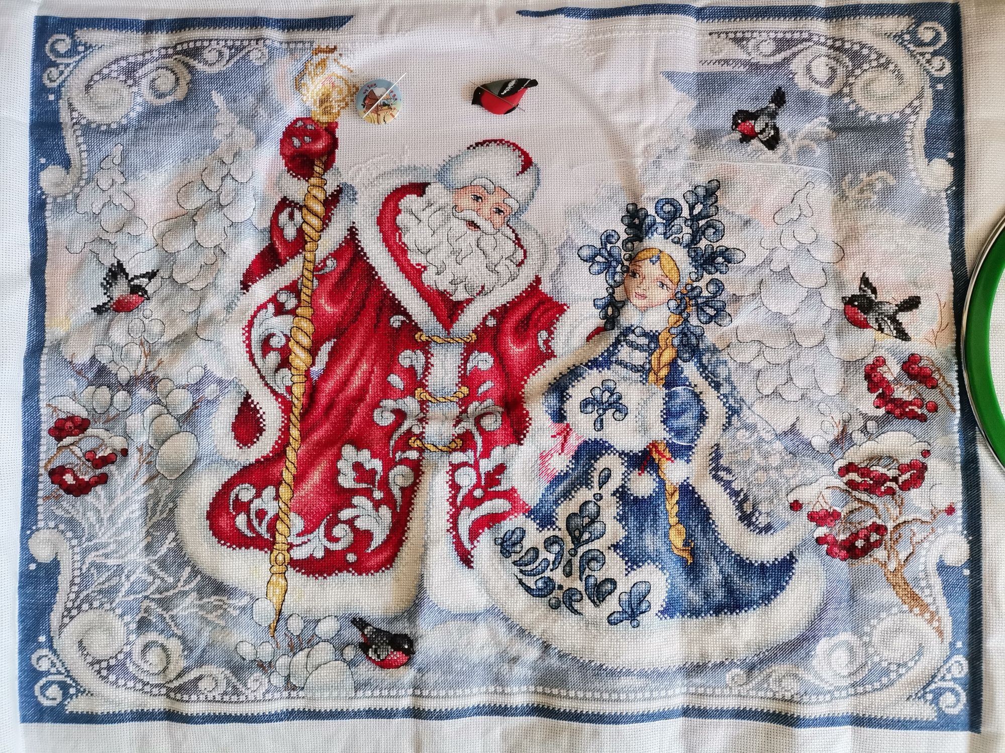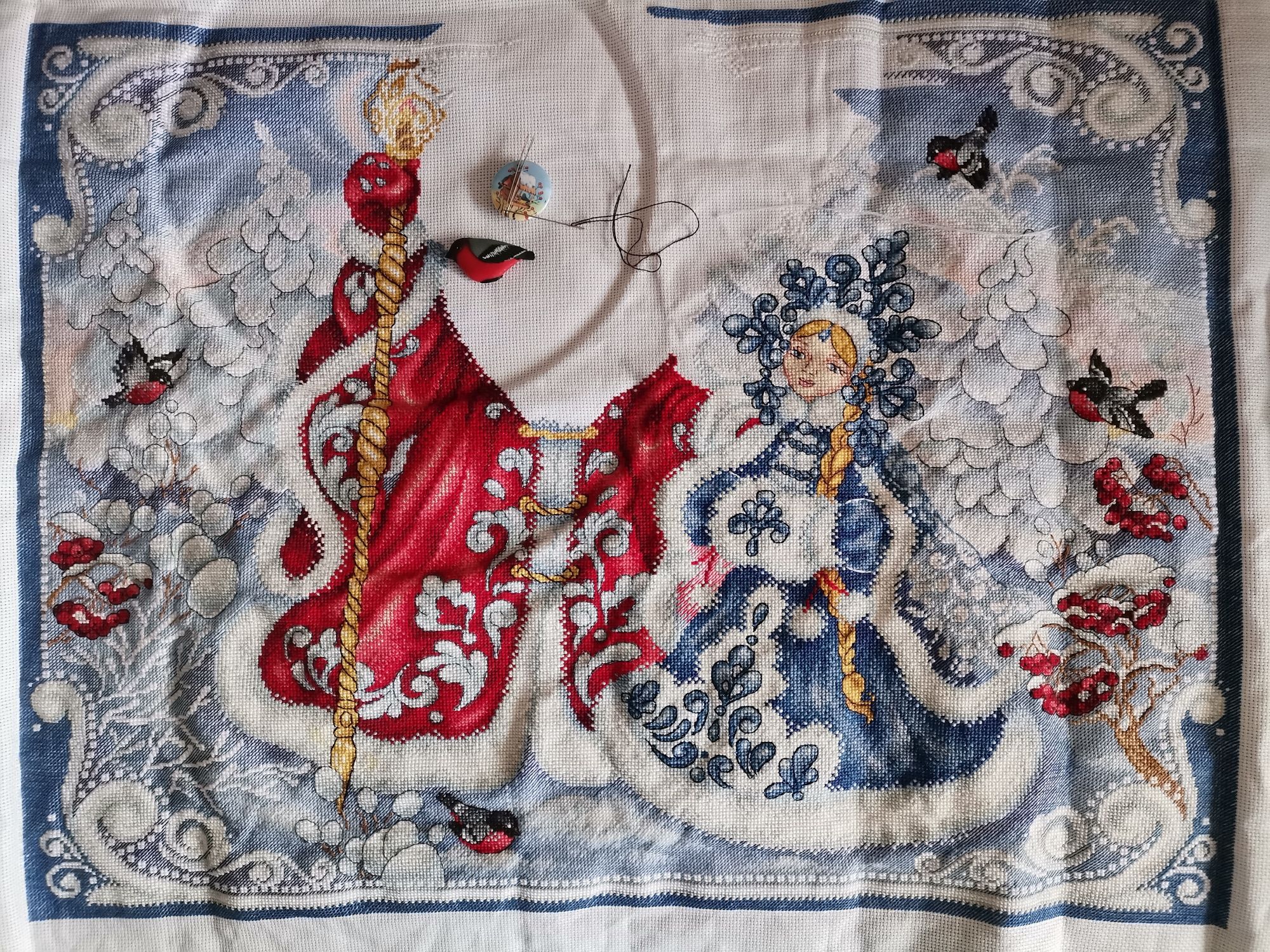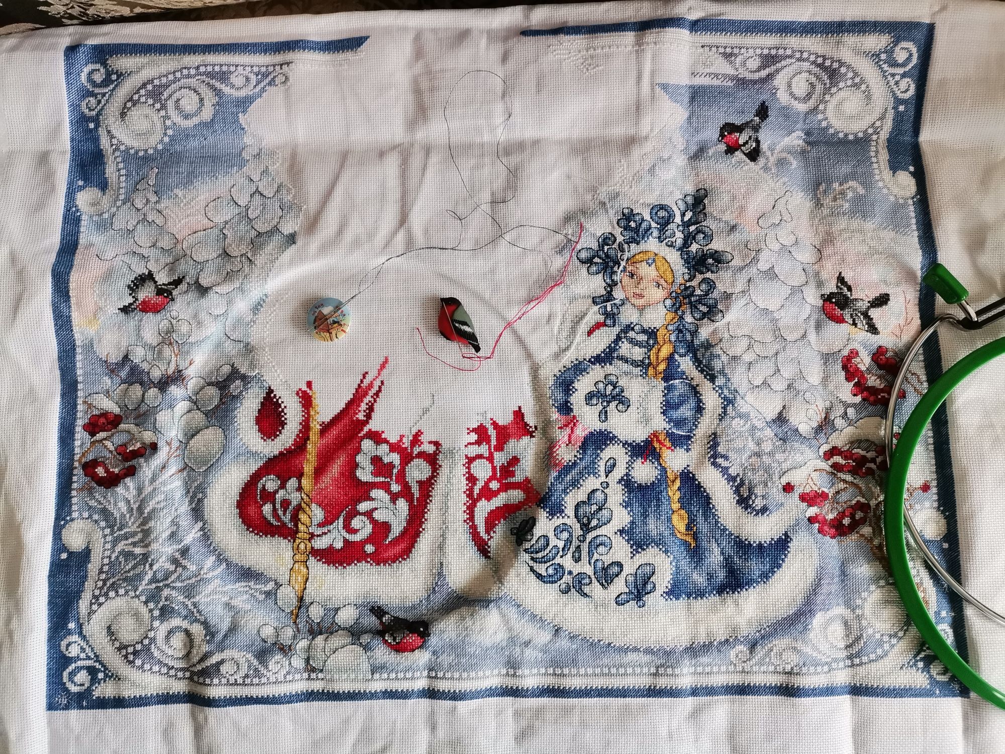 24 августа 2022 И таки да, свершилось, я его закончила но сначала сам процесс Ведь действительно сам процесс не сложный , но эти нитки меня просто доканали. Бэк на шубах, кокошнике и посохе делала крейником. Фрузики хотела заменить на бисер, но передумала и сделала как в инструкции с небольшим изменением в сторону удобства) по инструкции фрузик делать в одну нить и два обвития я же сделала в две нити и одно обвитие и с бисерной иглой, получились аккуратные и не стала делать снежинки в углах, показались лишними, на мой вкус) Однозначно это финиш года! На сим откланиваюсь! Всем хорошего настроения и крепкого здоровья Lenara, Zanfiska, BlueeYeS и 19 других сказали спасибо Поделиться сообщением Ссылка на сообщение
