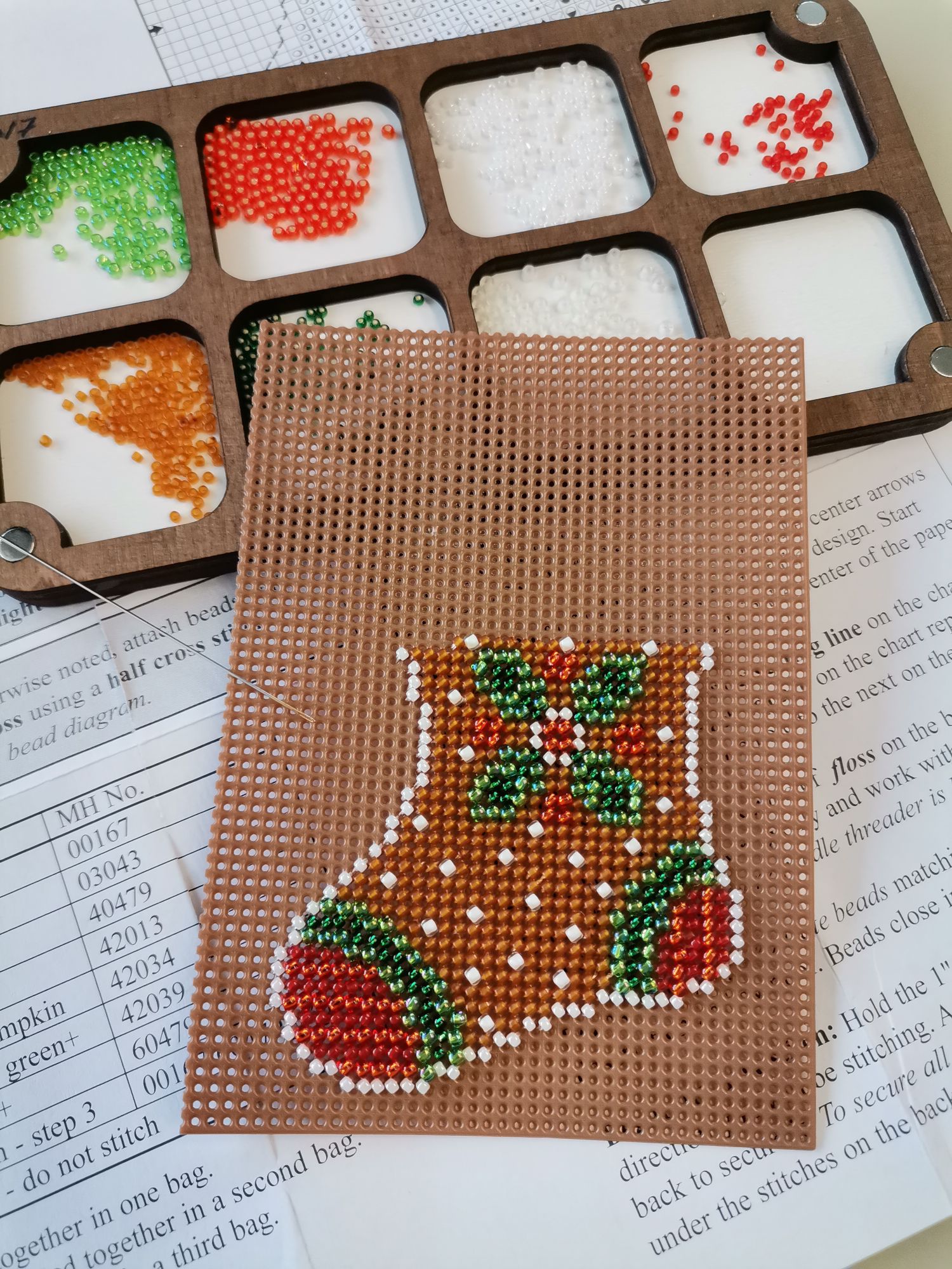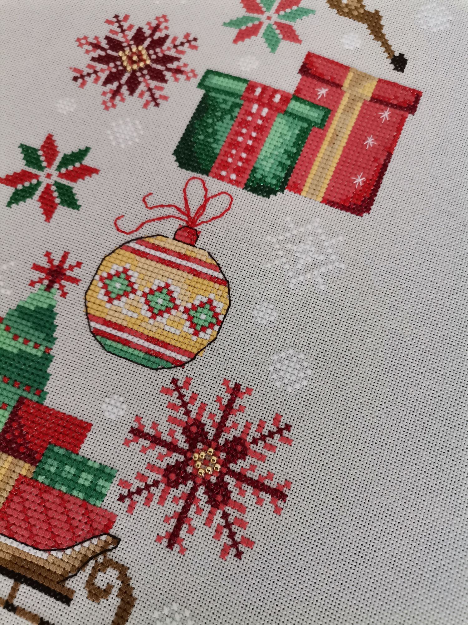 7 февраля 2023 Всем доброго здравия Вот и готовы мои игрушки от Rozwood. Долго ими любовалась, но всё же пришлось убрать к остальным( Они прекрасны! Жаль фото не передаёт всего блеска и цвета бисера. бисера хватило всего И продолжение баннера от Марьи Искусницы. Я всё смотрела и думала пока вышивала и решила, что белый бисер мне не нравится категорично. Выпорола его и пришила золотой, который лежит в наборе. И тут на днях поняла, что мне не хватит золотого бисера, а им ещё вышивать рога у оленя. Написала производителю и мне написали номер бисера, это оказался МН00557 и он есть у меня в запасах) повезло! осталось вышить самого оленя и сборка с заменой вложенных материалов На сим откланиваюсь. Всем хорошего настроения и крепкого здоровья ole4k@, Елизарочка, relax_cross_stitch и 9 других сказали спасибо Поделиться сообщением Ссылка на сообщение