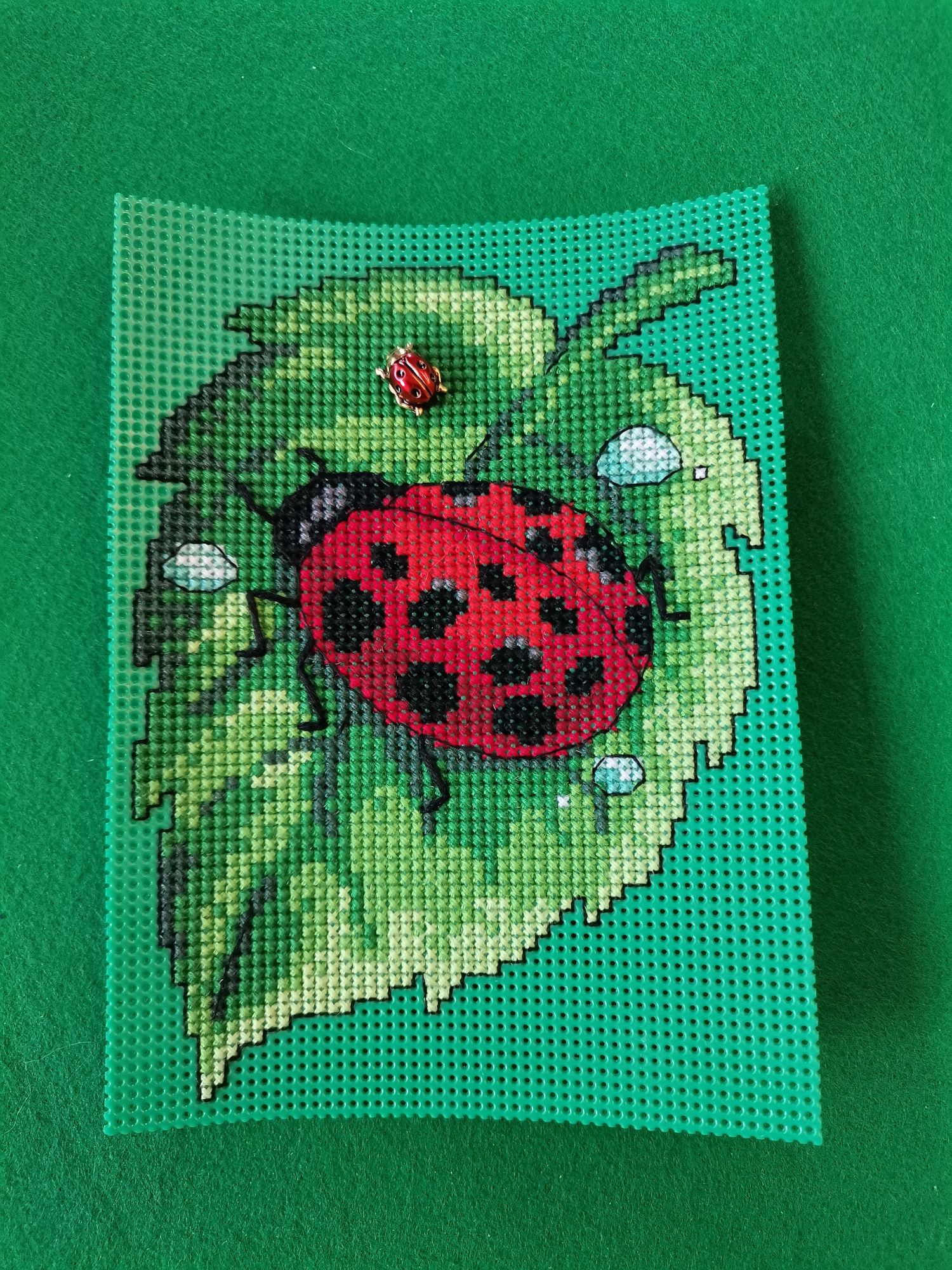 6 сентября 2023 Всем доброго здравия Внуча сидит смотрит мультфильм. Я включила себе любимый рок и решила отчитаться по процессам. Будет маленькое продвижение и оформленная работа. Начну с продвижения в Ростомере от МП Студии было/стало Завершила Божью коровку от Дим. Надпись делать не стала и на её место пришила шармик с божьей коровкой. Дополнительную коровку тоже не стала вышивать. И да, на зелёном пластике смотрится ярко. Мне очень нравится. И оформила Два букетика листьев от Жанны Стрибук. Раму заказывала в группе Sunflower House в ВК . Натягивала нитками. Очень тяжело подловить оригинальный цвет основы. На сим откланиваюсь. Всем крепкого здоровья и мирного неба Гало4ка, BlueeYeS, Юнона1960 и 13 других сказали спасибо Поделиться сообщением Ссылка на сообщение