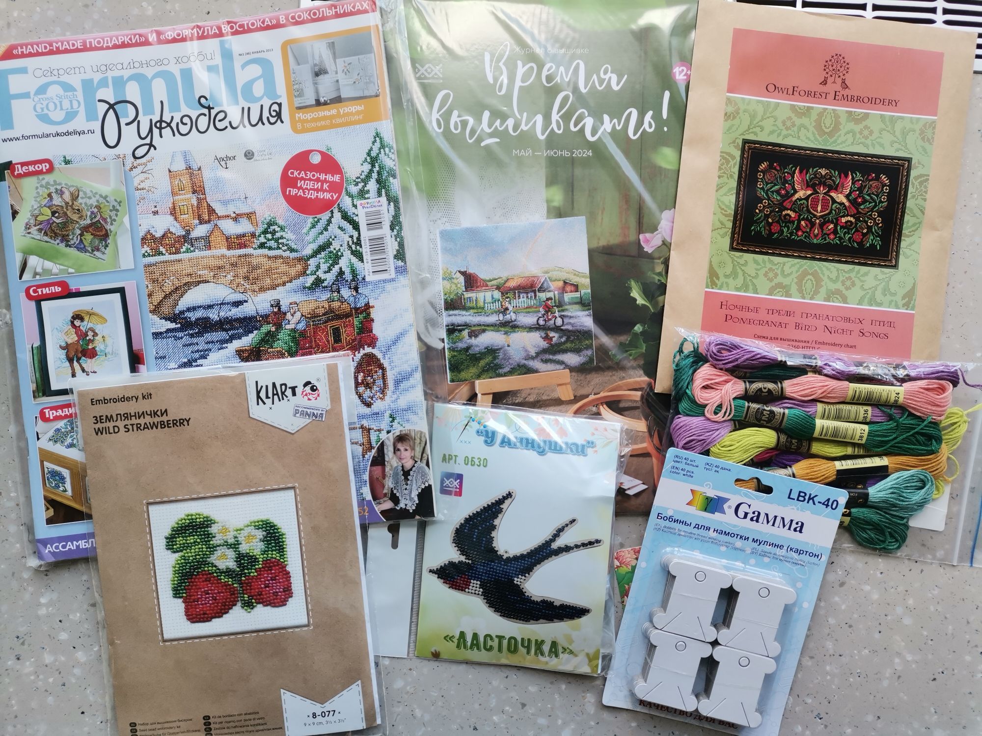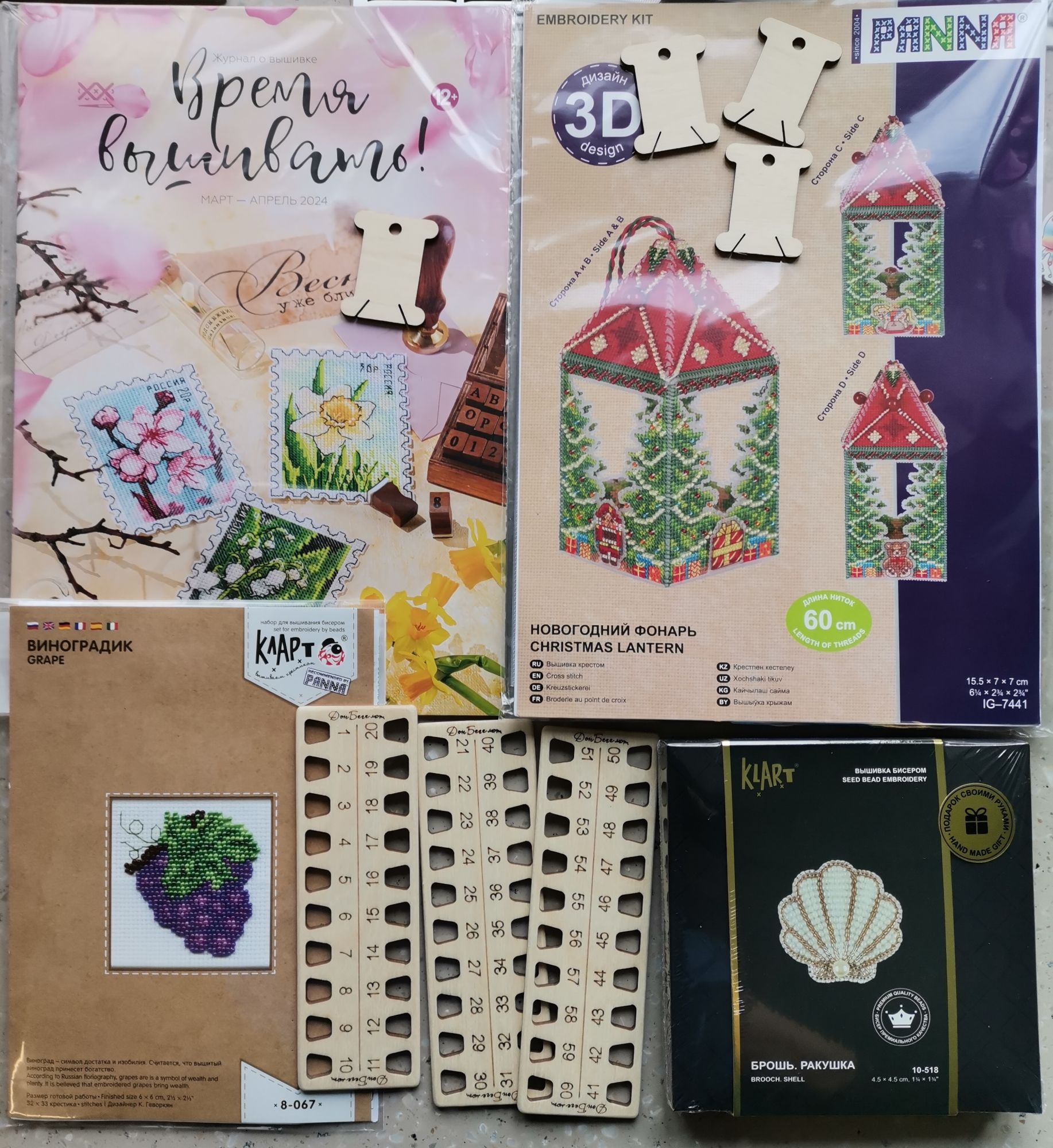 19 апреля 2024 Всем доброго здравия Приступим к отчёту. На прошлой недели по кубику в игре Вышить всё 2024 снова выпал Бурный поток лошадей от Доме. Вышилось не очень много, но всё же продвижение для такого большого процесса есть. Фото не в гаечку. Вышивала место с брызгами. А дальше очередной поток апрельских стартов кинулась во все тяжкие 9ым стартом у меня был Виноград от Дим из серии Уимси. Покупала сборку в ВК. В наборе обложка и схема- копия с оригинала, ниточки Дименшионс, проволока и натуральный материал для бантика(блин, забыла название) . Без основы. Основу взяла свою коричневый пластик от Гаммы. 10 старт. Жасмин от Джаст Нан. Ура, я начала мой первый процесс по схемам Джаст Нан. Схема оригинальная с паком - цветочек и бисер. Вышиваю по ключу на Кашеле 28 каунт, по-моему 52 цвета, короче говоря натуральный. Ниточки по ключу, но вперемешку ДМС и СХС. 11 старт. Павлин от Коттедж Гаден. Столько схем от этого производителя лежит, но мне так понравился этот Павлин, что я не выдержала и начала. В этом году не собиралась его начинать, но........ Вышиваю на льне Пермин 32 каунта цвета овечья шерсть, ниточками ДМС и СХС. В ключе есть 1 цвет Викса - купила. Это шикарный лён и шикарный цвет И приехал мой мечтательный наборчик и бисер к шарику от Золотой иголочки. В этом году начинать его не буду....а как хооочеетсяяяяя На сим откланиваюсь. Всем крепкого здоровья и мирного неба АлёNка, nadyusha, Гало4ка и 8 других сказали спасибо Поделиться сообщением Ссылка на сообщение