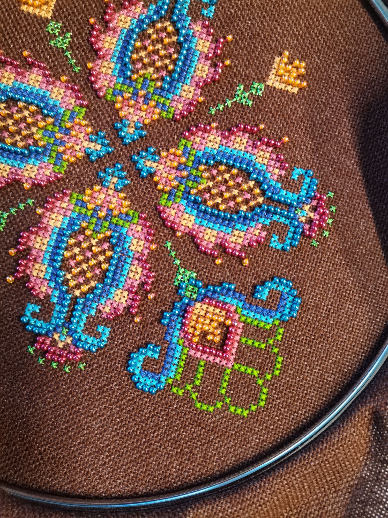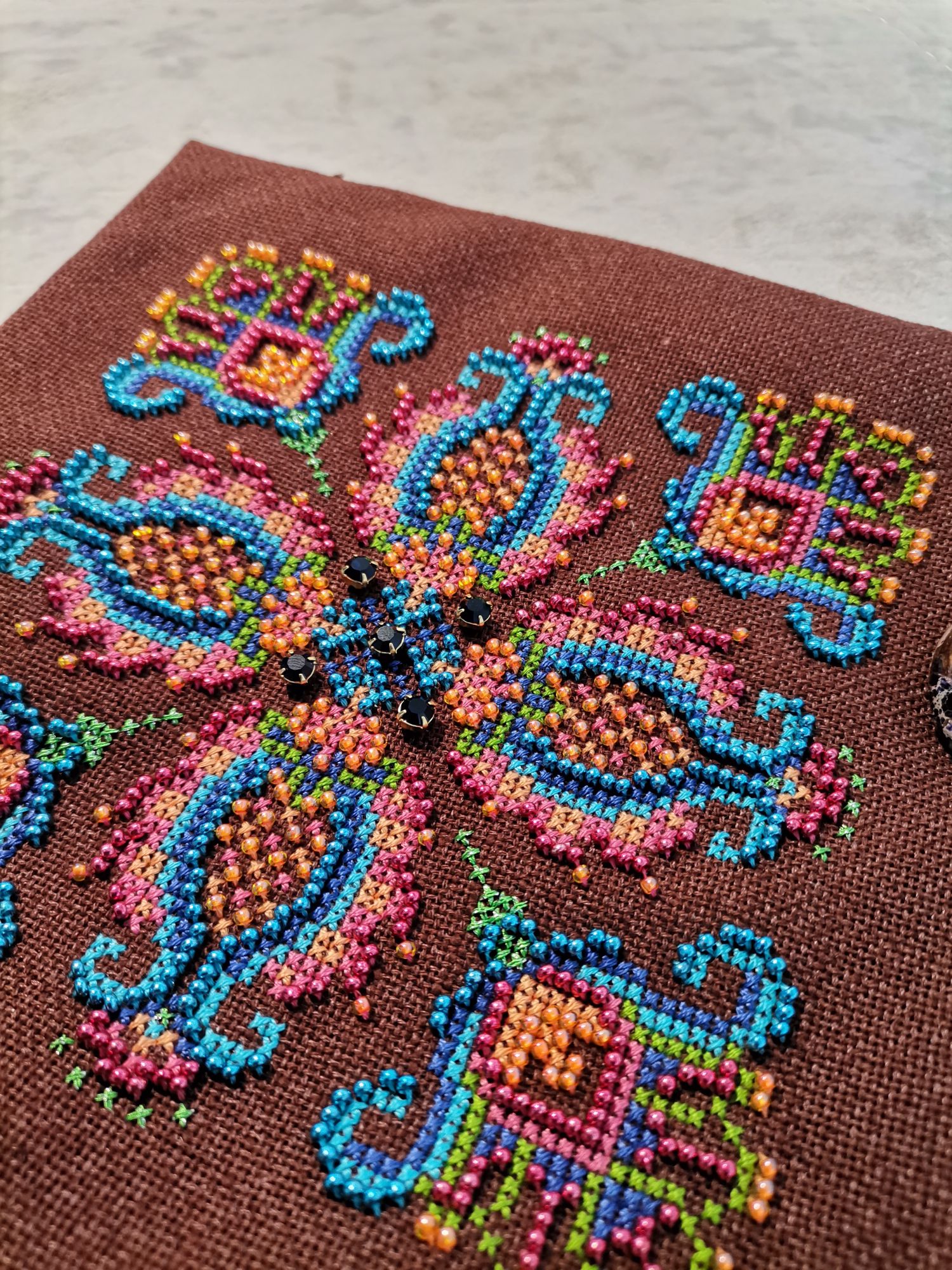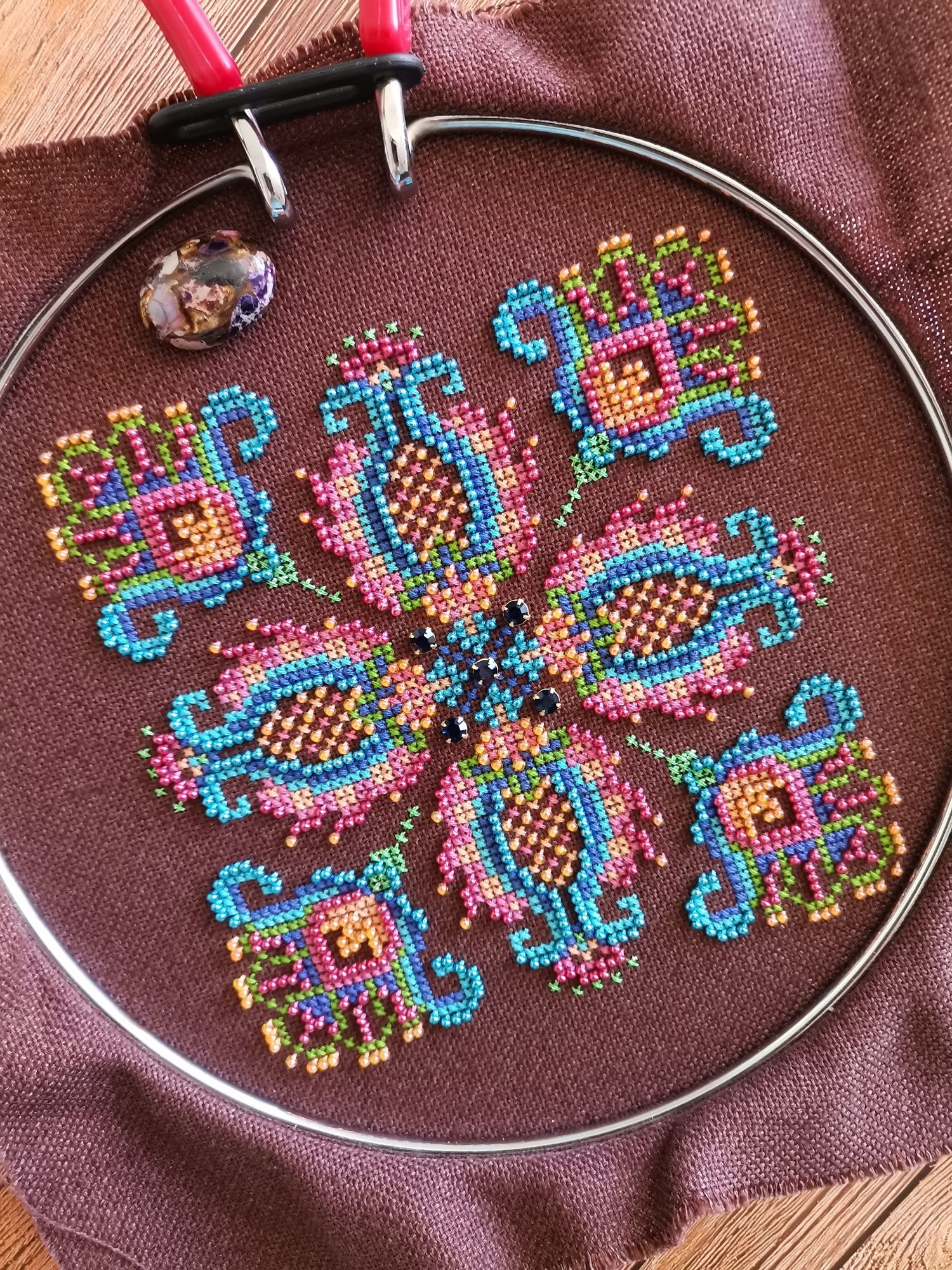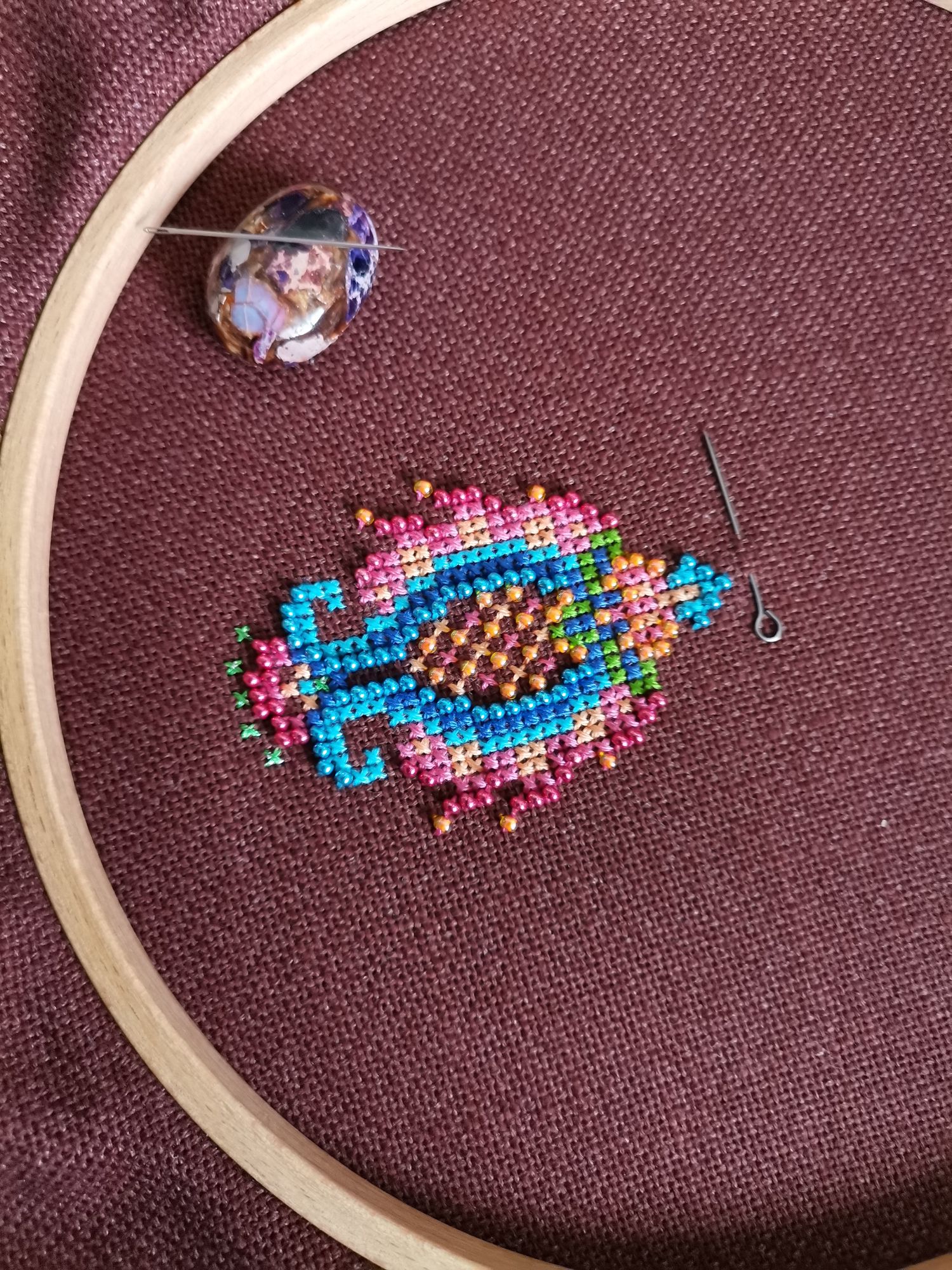 24 июня 2024 Всем доброго здравия Решила в ночи отчётик нацарапкать, а то всё было не до него да и вышивала мало. У мужа был отпуск и мы из двух недель только один день дома были, а остальные дни гуляли. Вышивала малость вечером или с утречка) И что же я продвинулаНосок от Дим точно продвинула, было/стало нахожусь в поиске алфавита и делаю бэк Вышила ещё один набор от Волшебной страны Паровоз. Осталось три набора. Правда за это время успела вступить в совместник Оксаны Ершовой Молодильные яблочки. Получила посылочку с заготовками для совместника и не только. И вышила два яблочка. Дизайны Оксаны обожаю. Один из лучших дизайнеров! Первое яблочко было синее. Вышивала подбором остатками из наборов МП Студии. Два цвета взяла мулине этуаль. Бисер по ключу. Второе яблочко оранжевое. И снова подбором. Зелёный цвет этуаль и взяла лавандовый цвет металлик. Бисер два цвета по ключу. Захотелось использовать сиреневые оттенки бисера. И у меня случился перво отшив. Схема Яркая Индия Ксении Дмитриевой. 5 цветов мулине и 3 цв бисера прициоза. Я добавила 1 цвет металлика. Вышиваю на Тренто 28 ct шоколадного цвета ниточками СХС. Бисер подбирала на свой вкус. Дизайнер одобрила. Процесс лёгкий, яркий красочный. Я когда увидела дизайн, то сразу знала на какой основе я бы вышила. Списались с дизайнером и вуаля, он у меня и я его вышиваю На сим откланиваюсь. Всем крепкого здоровья и мирного неба!!!! Маса, Bogdan, Юнона1960 и 13 других сказали спасибо Поделиться сообщением Ссылка на сообщение