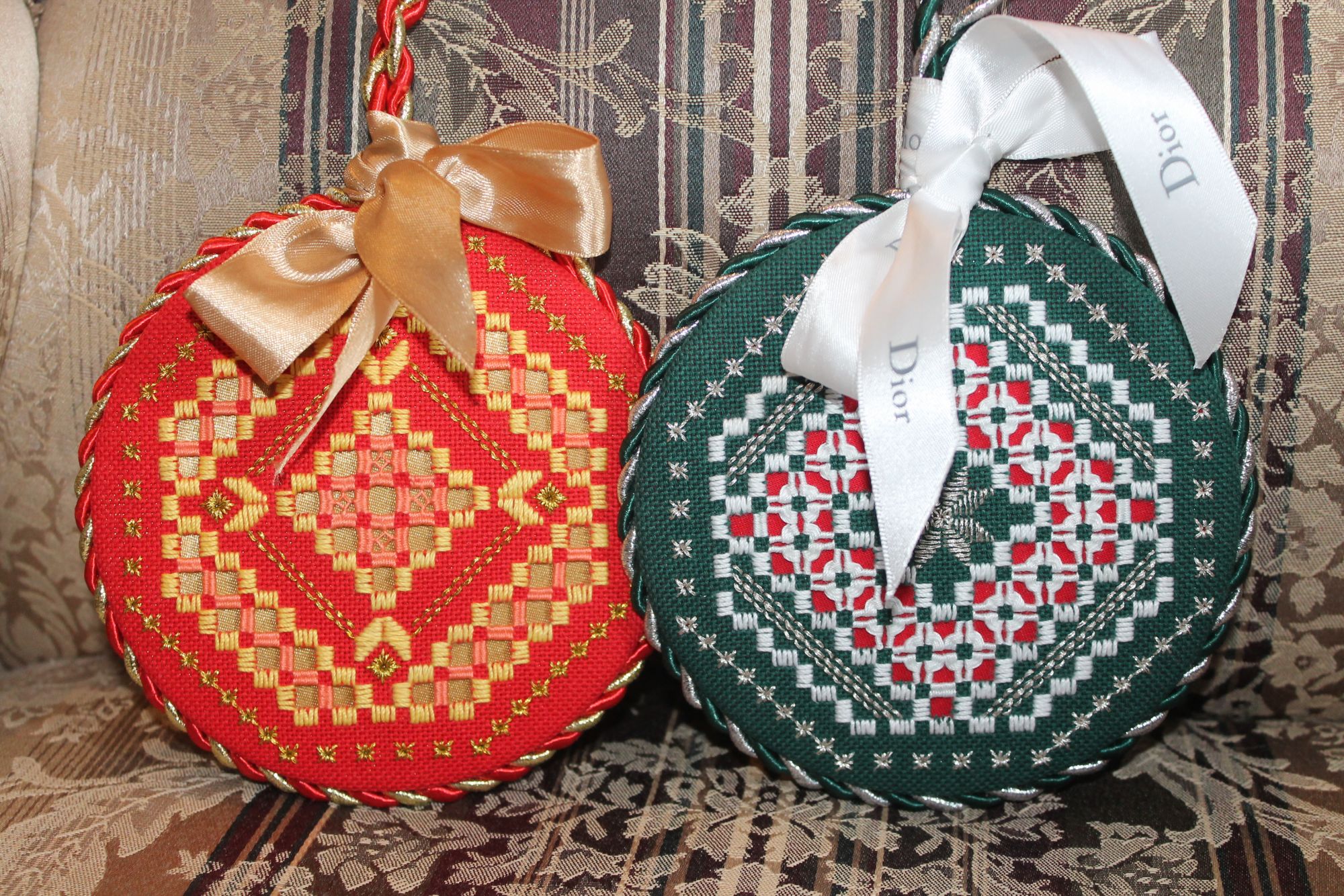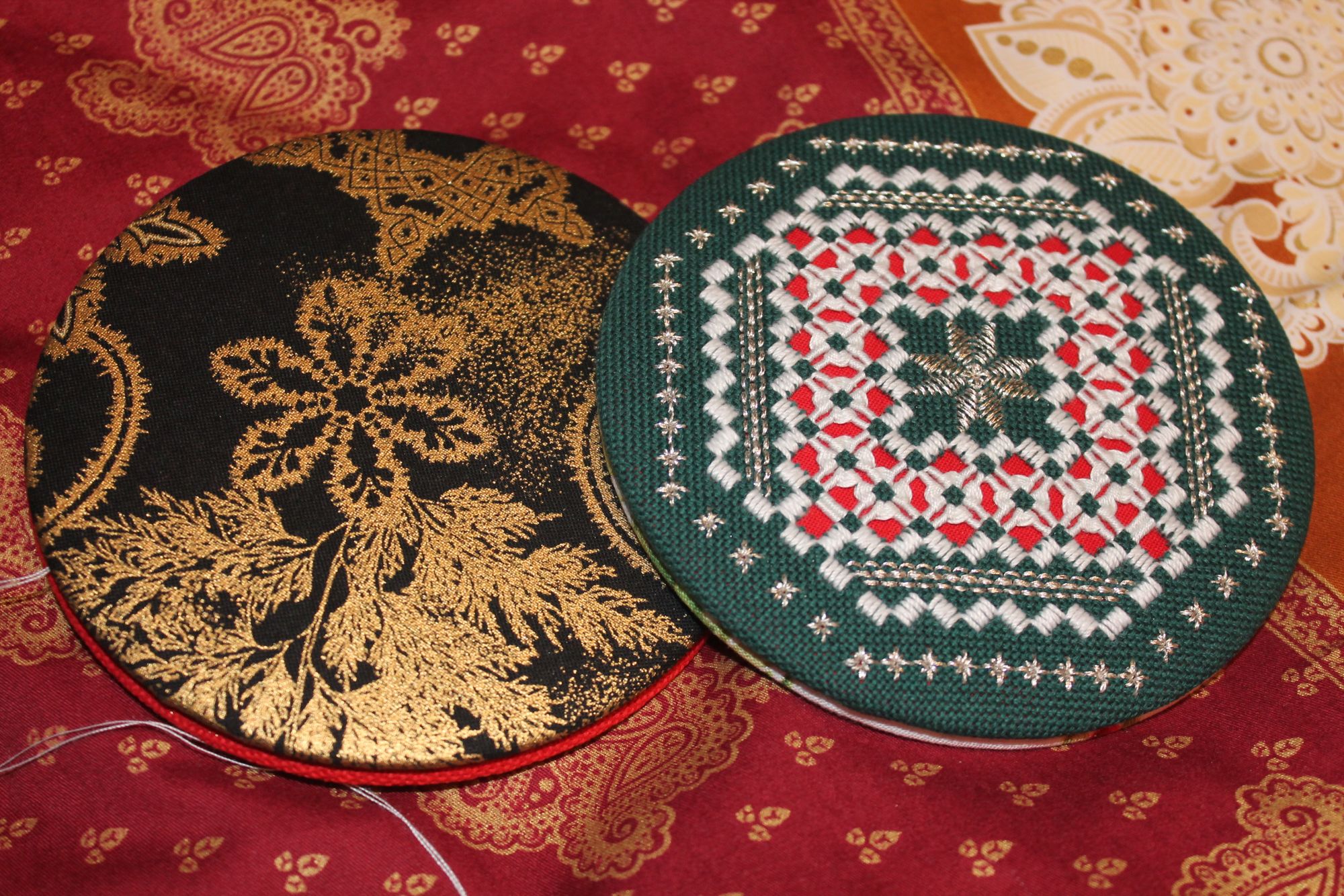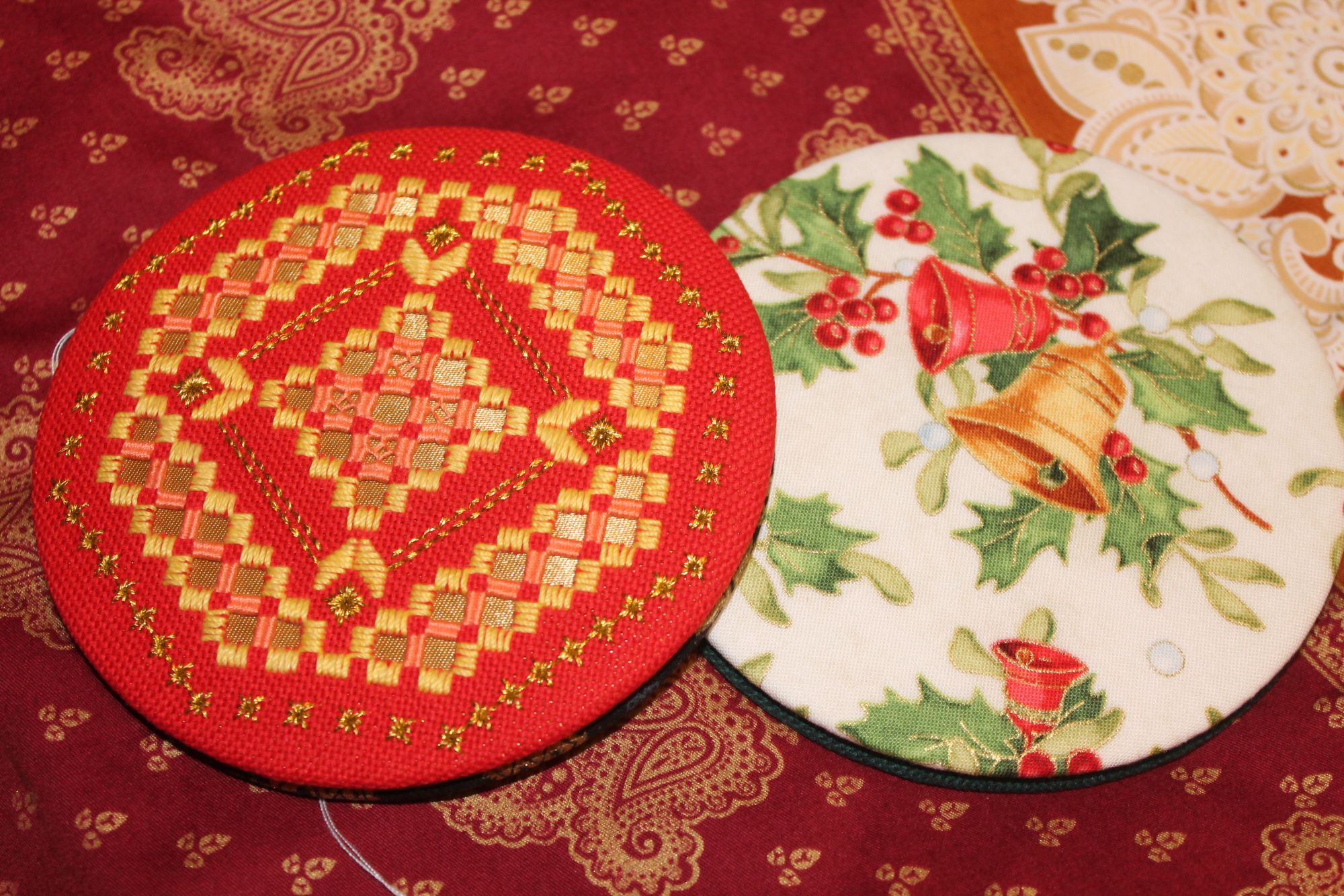 13 февраля 2017 Продолжаем наш разговор))) Собрала Новогодние шары пинкип от Натки Трямhttps://vk.com/hardanger_tryam...это ж мой первый пинкип))) фотки подробные. В сборке принимали участие: CD диски основа, флис для мягкости, х/б ткань для пэчворка на задники, шнур и много метров х/б нитки Сборку целиком и полностью делала без клея. Первым этапом обтянула флисом диски(диски предложила сама дизайнер) , затем поверх флиса натянула контрастную ткань и далее вышивку , задники по той же схеме . Затем сшила потайным швом переднюю сторону и заднюю . И в конце работы пришивала декоративный шнур, так же потайным швом, а вот фото сделать забыла, торопилась закончить))) и готовые ОльгаВл, Юнона1960, ЛАДОМИРА и 10 других сказали спасибо Поделиться сообщением Ссылка на сообщение