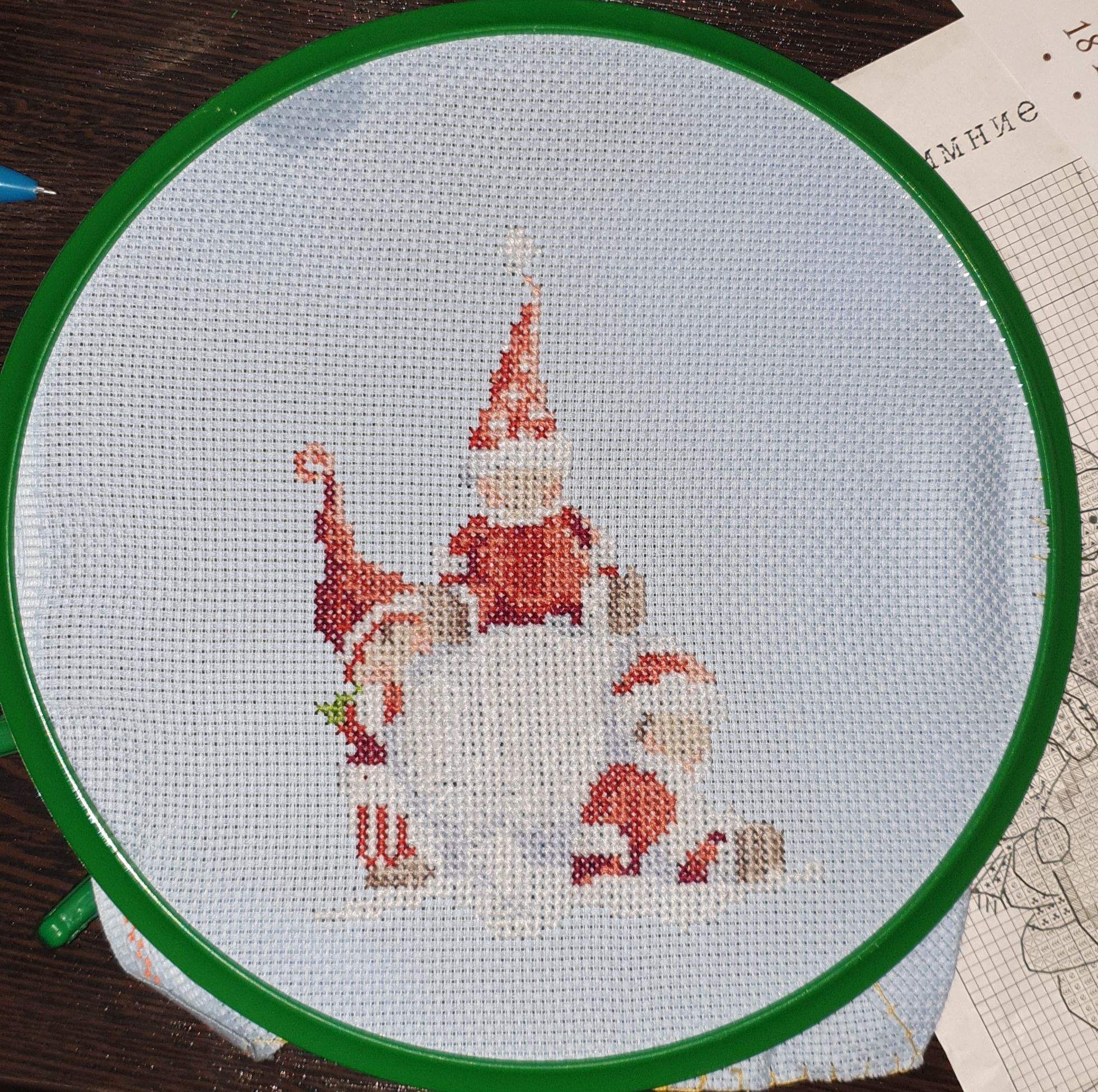 31 января 2020 Привет и снова я с зелеными Гаечками! На этот раз у меня получилась мини зимняя подборка сюжетов! 1. Зимние забавы от Неокрафт Как оказалось я очень соскучилась по аиде. Крестики вышились очень быстро, но бэк это, конечно нечто без равномерки. Помогла острая игла и несколько вечеров. Милые малыши получились: 2. Волшебная страна, FLK-059, сине-зеленая сосулька, 4,5х12 см, бисер. Не успеваю уставать от бисера на этих наборах. Удобный отрганайзер, игла и дело в шляпе: 3. Волшебная страна, FLK-221, звезда с бантом, 9х9 см, бисер Вот тут меня ждал сюрприз, в наборе лежало два пакетика с номером два, ну я подумала все приехали. Выяснила, что нет белого цвета Все собрала , убрала в набор. Пошла написала производителю, чтобы подсказали номер бисера, чтобы купить. Потом снова полезла в набор, а там есть номера бисера. Благо мелкое увлечение шовчиками позволяет иметь некоторое количество его и был нужный номер. Понимаю, что человеческий фактор, но осадочек остался. Производитель написал, что без проблем вышлет не достающий бисер. 4. Свеча. Дизайнер Марина Ткачева: Очень хотелось вышить этот дизайн, лежал ждал своей очереди. Вышито сатиновыми и китайскими ниточками. Процесс на самом деле уже вышит, но не дошли руки его погладить с фотографировать с бэком. Записалась в сюрприз, но есть несколько процессов, что нужно доделать. Сейчас только обдумывание и составление плана! Всем отличного настроения и хорошего февраля Vereena, Г@лина, mamatata и 16 других сказали спасибо Поделиться сообщением Ссылка на сообщение