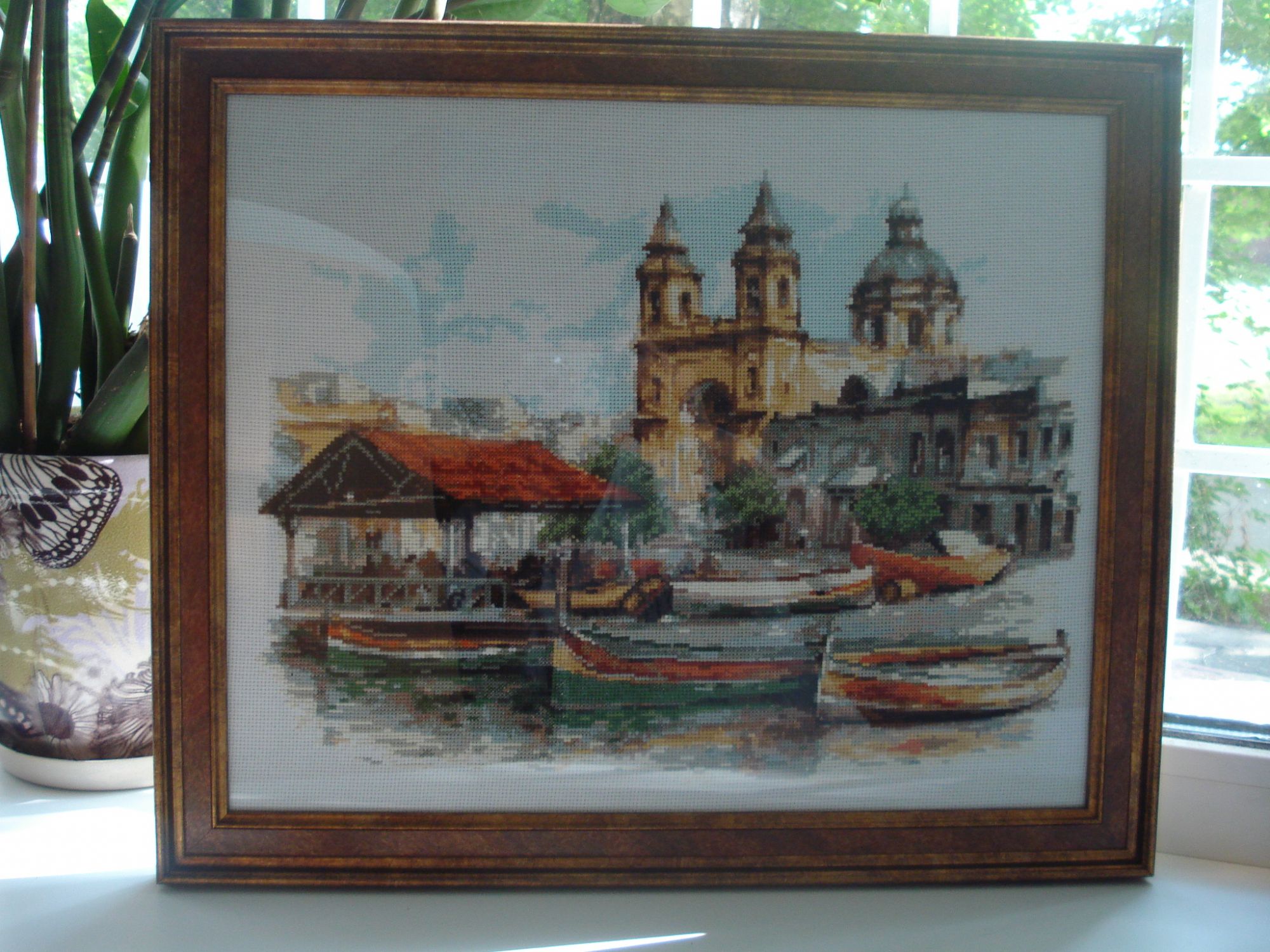 28 июня 2016 Добрый вечер !!!! Жара немного стихла - можно собраться с мыслями и написать отчет . Вот вам десерт ,, но не думайте так просто взять , при нем имеется сторож ! Выставила Мальту в галерею, пыталась хорошо ее снять, но видимо , это очень капризная работа, лучше всего получилась на тумбочке с канцелярскими принадлежностями Повышивала я садовую калитку - , остается небольшой фрагмент слева. Буциловские орхидейки тоже подросли ( маленькая неприятность - закончилась пастмочка фиолетового цвета для бека, пришлось на серединки подбирать похожий ДМС) Неожиданно начала небольшой процесик из журнала , и уже вышит первый листочек И , наконец то, я оформила РТО-шные розы - сижу в большом сомнении и даже разочаровании . Левый край все в порядке, а между правым и рамой просвет все-таки великоват. кажется, что вышивку криво натянули. Мысли кипят - паспарту не подойдет , т.к. будет очень узко, обыграть эту строну тонким кружевом - получается совсем ужасно. И вообщем, купила я несколько оттенков бисера в тон краям и постараюсь бисерными штрихами немного обыграть пустое место. Пока работу не разбирала, жду ваших советов . belovolovaanastasya, Lenara, Иржи и 17 других сказали спасибо Поделиться сообщением Ссылка на сообщение