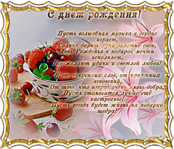 28 апреля 2018 Наташа, с днём рождения!!! Дата у тебя красивая , ягодная! Всего тебе самого хорошего, пусть все в твоей жизни будет СУПЕР! Наталья2013 сказал(а) спасибо Поделиться сообщением Ссылка на сообщение