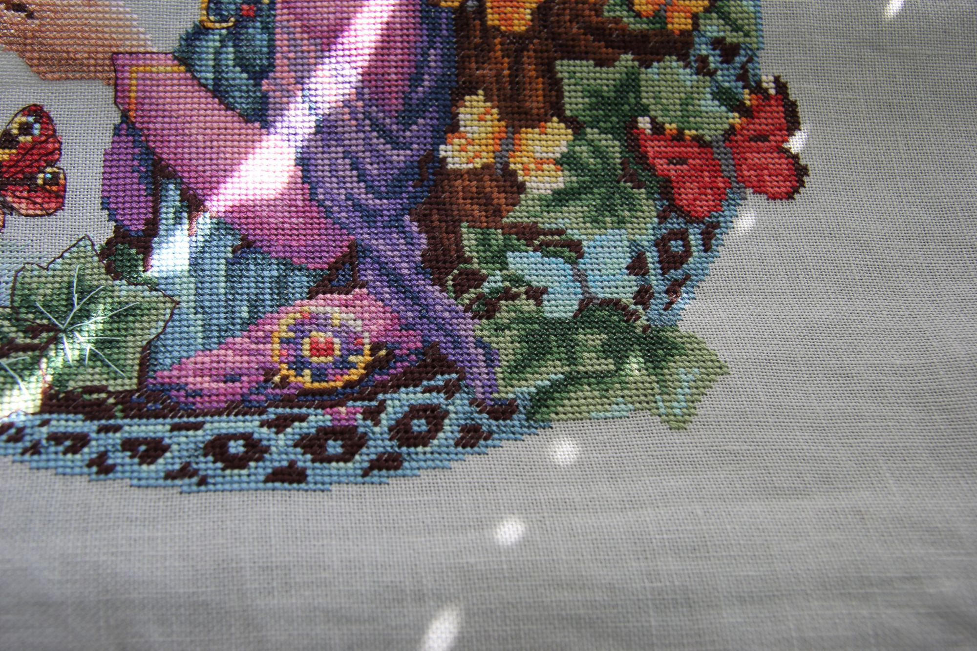 8 сентября 2018 Добрый день ! Я сегодня к вам с отчетом ( можно было бы дождаться и нужной даты, но захотелось сегодня Продолжаю начатую фею бабочек - вот что было и стало ( в хронологическом порядке)- . Процесс очень легкий, частая смена ниток не дает скучать, но в то же время сразу появляется вполне узнаваемый элемент. Осталось меньше половины, да и оставшаяся часть - это лицо и несколько бабочек с фоном. Для тех кто очень ждал, продолжаю Мирабилию - фею чая Было -, стало - Очень соскучилась по этому процессу и за один вечер отшила такой немаленький фрагмент. Сделала замену ДМС похожего цвета на тот , что по ключу, и локоть стал выглядеть не так контрастно . Не стала заморачиваться петитом в коже , вышила крестиком и очень мне нравится. По ходу работы стала пришивать бисер , иначе непонятно , то ли пропущены крестики, то ли это для бисера. Бусины совершенно не мешают. ( вечером провела испытание Милл-Хилла на прочность окраски с помощью моющего средства, вроде бы ничего не облезло) Третьим процессом не стала очередная фея или ангел, а стал второй квилт из моей серии Как всегда все материалы по ключу, очень все легко и даже скучновато местами. Пуговки из собственных запасов ( если найду что-то поинтереснее на Формуле Рукоделия, то заменю) на этом пока все, хороших выходных и солнечной погоды ! Анна_С, Linda01, Galadriel и 41 других сказали спасибо Поделиться сообщением Ссылка на сообщение