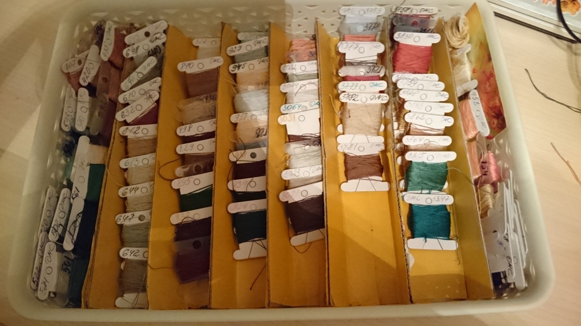 19 ноября 2018 16 минут назад, Ольга_Анатольевна сказал: Ага)))) решила, что если с нами связаться, заставим объятия показывать Вот уж чего я не боюсь, так этого Шью этот процесс как основной, иногда чередую с новогодними игрушками. Ну вот как обещала. Ничего сложного, у всех наверно так же. Все сделано из подручных материалов, главное удобство. - папка где листы разложены по рядам. Затертая бумажка - отмечаю вышитые листы, а так же служит ориентиром для следующих листов ( выше, ниже, справа, слева) - запяленный процесс, схема - органайзер для бобинок, разложены по номерам 500, 700, 800 и т.д. ( разделительные бортик мастерила муж из двустронннего скотча) , сам лоток - из хозтоваров. - органайзер для иголок - большой кусок пенопласта с наклеенным ключом. Иголки втыкаю рядом или в бумажку. Если нахожу свободно болтающуюся иголку с ниткой, то нитки выкидываю без сожаления, т.к. невозможно определить где это должно быть. Мне удобно наматывать на бобинки по одной ниточке из пастмы, т.к. при составлении бленда это удобнее. Вот как то так. Вышивание на пяльцах нисколько не напрягает, даже помогает ровнее укладывать крестики.  Хельга, Людмила Мизина, marvlase и 30 других сказали спасибо Поделиться сообщением Ссылка на сообщение