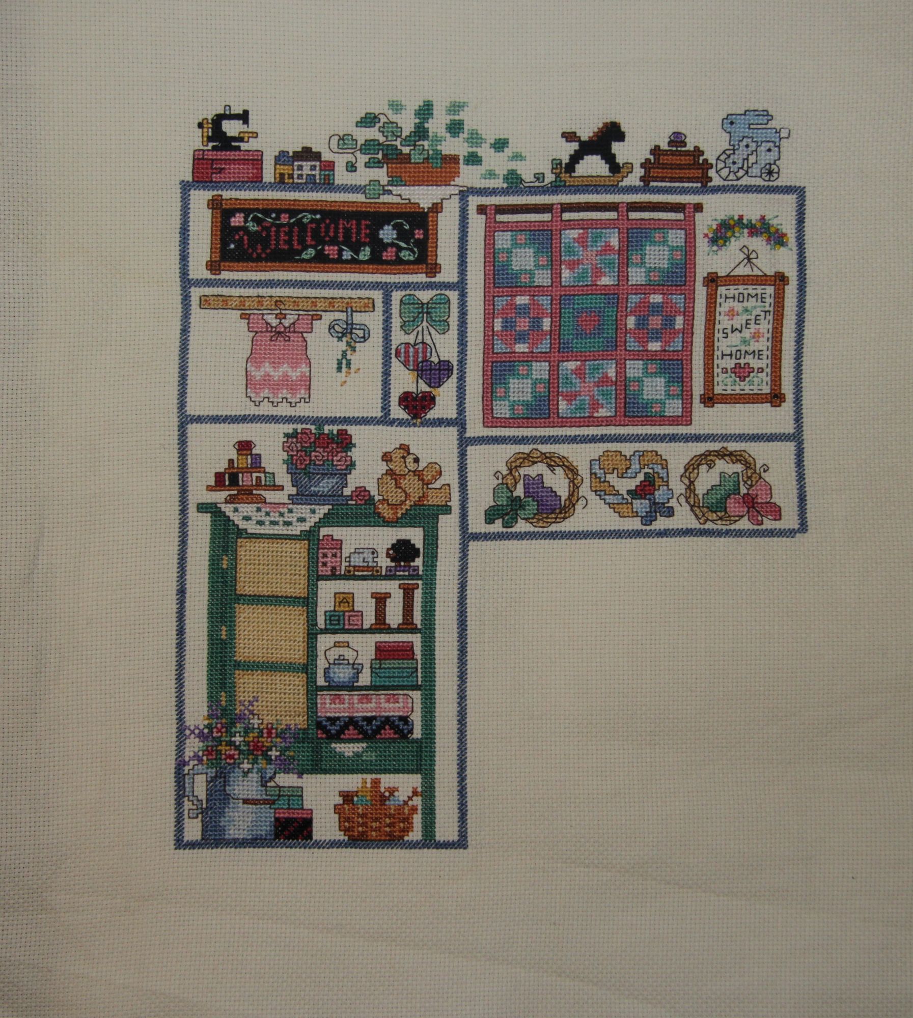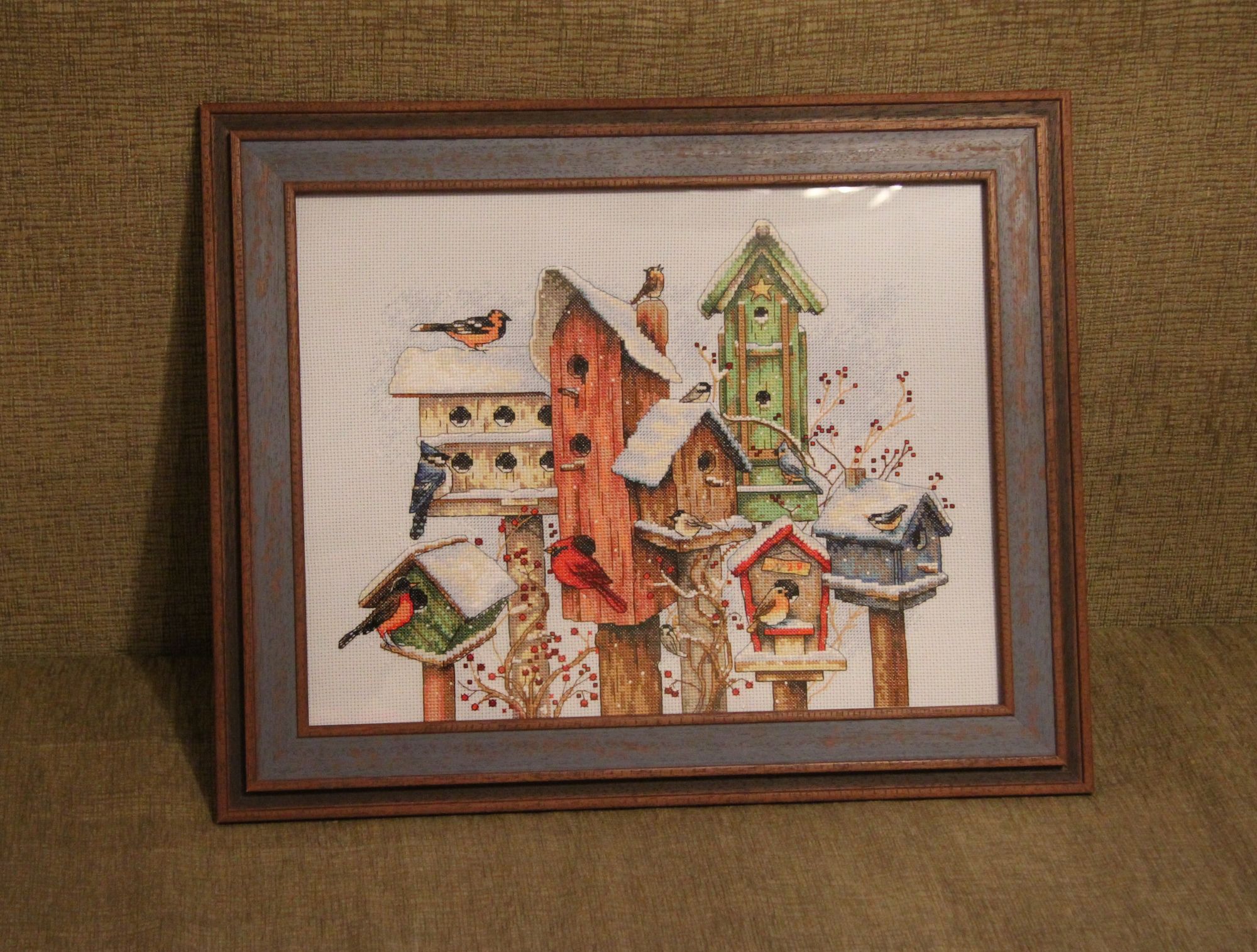 6 января 2019 Наташа - nata2017, Ольга- ОлюшКа, Оля-Ольга_Анатольевна и Марина- marvlase спасибо за поздравление ! Итак, первый отчет этого года 1. Закончен процесс Милл-Хилл "Новогодний венок" Процесс по моему мнению - не для новичка и не для первой пробы этого производителя. Вроде и венок маленький, но замороченный - то частая смена мулине , то бисер множества оттенков. С середины работы выработалась своя тактика - шью нитками, сразу же пришиваю бисер по горизонтали, спускаюсь вниз и дошиваю и бисер и нитки ( не так как рекомендовано - сначала нитки, потом бисер) , ничего не путалось и не мешало. Зато уверена , что не пропустила значки. Вырезание тоже оказалось не очень приятным - то ли у меня руки-крюки, то ли боялась случайно перерезать нить, которой пришивался бисер. На оборотную сторону приклеила белый фетр , а потом по краю бумаги обшила ее сребристым креником, чтобы сгладить зубчики . В целом , было очень интересно . У меня есть еще несколько наборов , буду продолжать 2. Продолжаю шить комнату рукодельницы - прибавился довольно таки приличный фрагмент . было -, стало - . Остался правый нижний фрагмент и бэк . 3. В начале этого года согласно намеченному плану открыла и начала два набора - и не поверите, это все отшито за 5 дней ! "Шарлотта " Херитаж здесь все шью по набору, ничего не изменяя . Не скажу что все очень просто - частая смена нитки, узкокрестики и вертикальные и горизонтальные. Посмотрим что будет в конце процесса , но один тон ниток уже закончился вчистую, некоторых осталось по 2-3 ниточки. Хорошо, что нитки ДМС и есть номера . "Гортензия " Анкор В этом наборе на выбор было два отреза ткани - Аида и равномерка, естественно, в ход пошла последняя. Сама ткань очень сыпучая, оверлочила после стирки, и то много распустилось, при этом запас свободного пространства с краев не очень большой ( при оформлении придется делать паспарту или дошивать полосы) Оттенки сумасшедшие - сочетание красного и ярко-голубого , и тут же нежная зелень. Перед Новым годом , практически с боем курантов , получила я 2 посылочки от Светы-Veta, и от Наташи-Natali42 Огромное спасибо, я была просто в потрясении ! Фотографии сразу не сделала, а теперь боюсь, что все не соберу, т.к. многое если не съедено, то растаскано по квартире в качестве декора . Наташа прислала мне очень симпатичный набор с двумя жабками, как намек, что пора завязывать с хомячеством ) Обязательно его вышью в ближайшее время и будет он мне напоминанием что пора растрясти свои коробки . НО!!!!!!! 2 набора ДИМ все таки были куплены до праздника по хорошей цене - это " Пионы и Дельфиниумы " и "Две маленькие балерины" ( Последний набор включила в план 2019 г, ткт мужу очень понравились эти малышки ) На этом пока все, хочу поздравить вас с наступающим Рождеством - счастья, удачи, исполнения желаний в это сказочное время ! marvlase, Veta, Ксен40 и 47 других сказали спасибо Поделиться сообщением Ссылка на сообщение