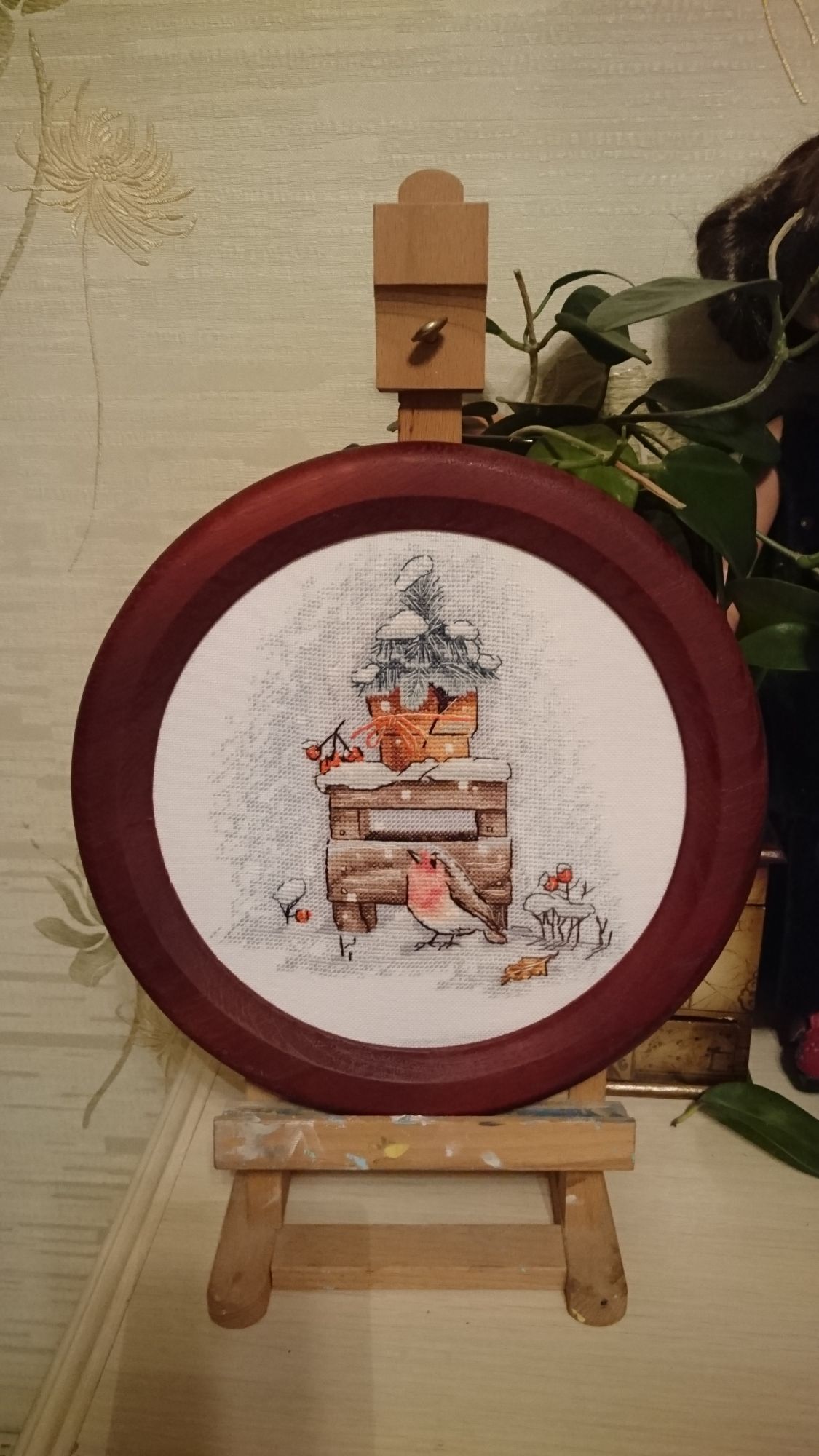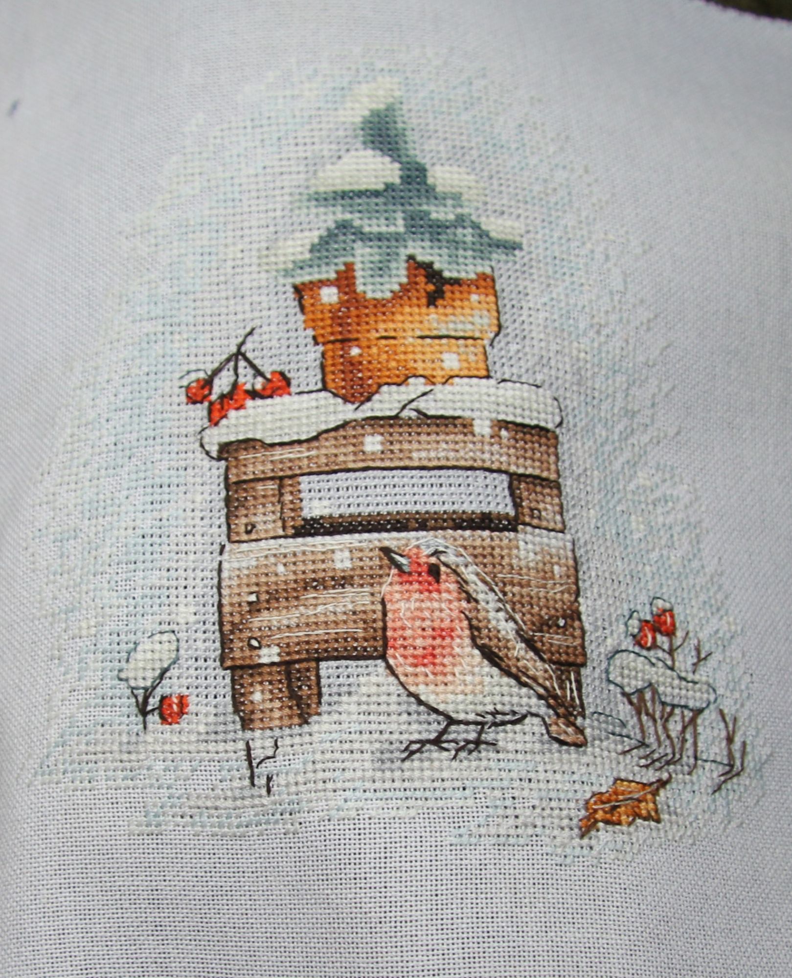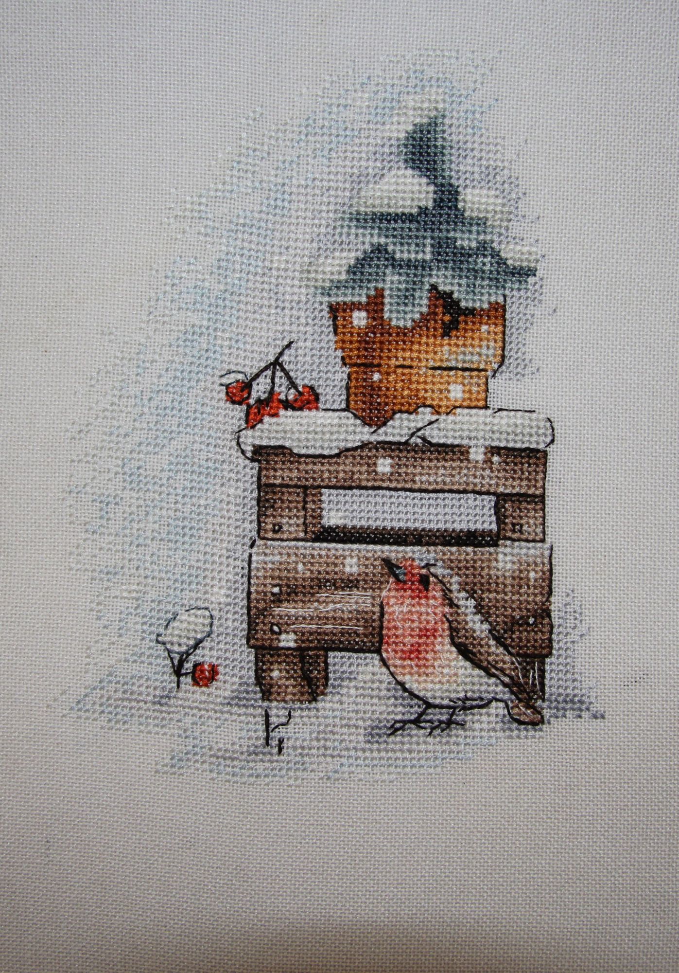 27 марта 2021 04.02.2021 в 08:52, angelim сказал(а): У меня тоже была мысль все бросить и их начать - очень уж хороши! Я вижу , с февраля розу так и не начаты ? Всем привет ! Разгоню ка я пыль и скуку за почти двухмесячное отсутствие Начну с законченных процессов : "Мамина радость " . Было . Стало- С прошлого года оставался бэк стич в нижней части работы и на лицах . Откладывала , т.к. не получалось вышить озорную улыбку ребенка , глаза получались какие то косые и не прищуренные от удовольствия. "Летнее цветение " или просто Розы от Летистич Было . Стало - Отшив получился темнее чем обложка набора , нет эффекта отрисовки кистью. В целом - все красиво , но розы получились как блюдца , постоянная смена ниток , не всегда оправданная. Ниток в наборе осталось достаточно, но светло серые и голубые оттенки прямо положены впритык. Стирала снова в машине . на размер это никак не повлияло. Над оформлением еще не думала , может быть во что то прикладное . "Зимняя птичка " от Полины Тарусовой тоже закончена . Фотографий не очень много , но как есть Оформила сразу в имеющуюся круглую раму . Мне очень нравится ! Как потом написала дизайнер - мой отшив был самым первым Теперь о продолжениях : Безумное застолье Дименшинс - появились новы обитатели кормушки . Григорию есть за кем приглядывать . Очень красочный и интересный сюжет . Икона от Теи - на одном дыхании вышился лик , качество проработки просто поражает , настоль точно подобраны оттенки , что и не скажешь что вышито нитками Было =. н аданный момент . К сожалению , пока процесс отложила , хотя и собиралась закончить к Пасхе 3 мая. " У реки " Ланарт . Набор начала почти 2 года назад и сразу отложила . Дело в том , что на принтованной основе я не могла найти точку отсчета . Начала тогда примерно , совместив указатели . НО , посмотрев внимательно на обложку набора , решила все распороть и начать с того места , где концы цветущего куста заходят на пару крестиков на стену. Теперь иду вниз и в стороны .. Метки на основе мне показались какими то кривыми - вертикаль еще более=менее , а по горизонтали вообще одна ниже другой. первое впечатление - как будто набросали бисер = много похожих оттенков , разбросанных вертикально. Закончив 4 работы ( еще одна новогодняя игрушка от Волшебной страны) , начала я таки новый процесс= старенький Дим с нежнейшим сюжетом . Заменила белую Аиду 14 каунта на равномерку бежево=серого оттенка . Смотрится замечательно . Даже полукресты в 5 нитей лежат очень ровно. Ниточки американские тоньше современных , мягче что ли. Вышиваешь и наслаждаешься Немного продвинула еще и зимних уток , но покажу в следующий раз , если будет еще прибавка в крестиках. Спасибо тем. кто дочитал и досмотрел до конца ! TheSunniestDay, оленек, Графиня и 31 других сказали спасибо Поделиться сообщением Ссылка на сообщение