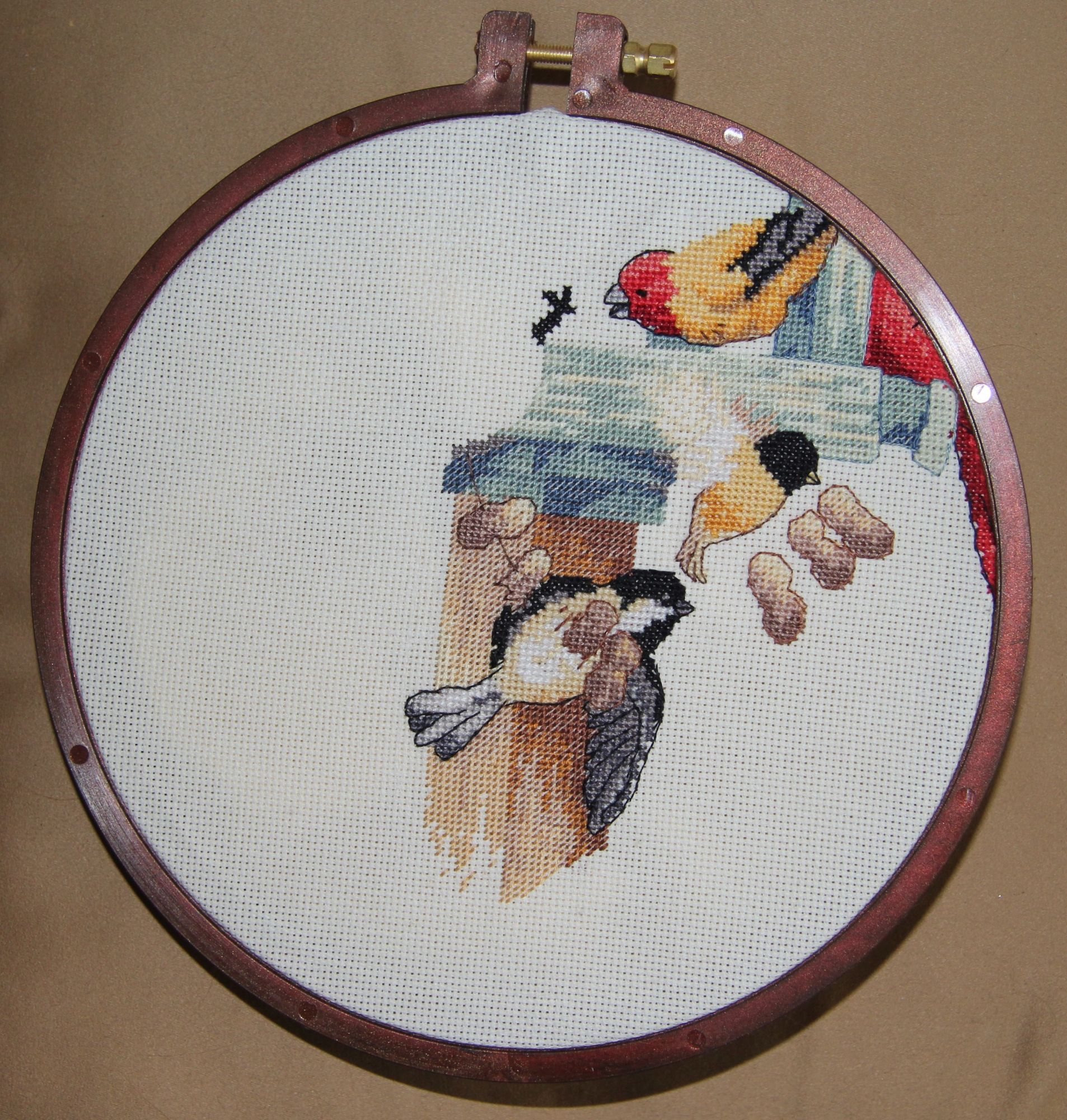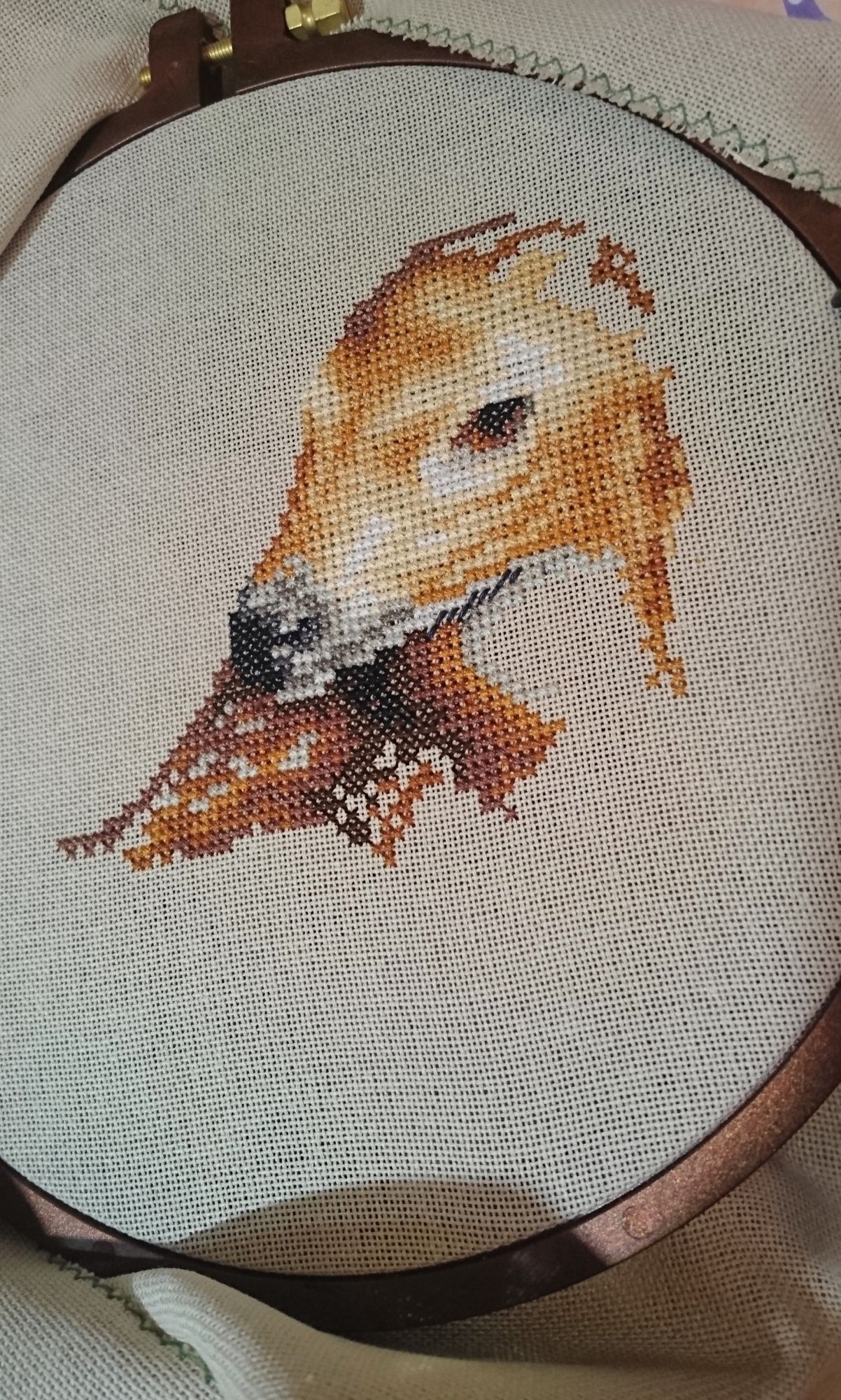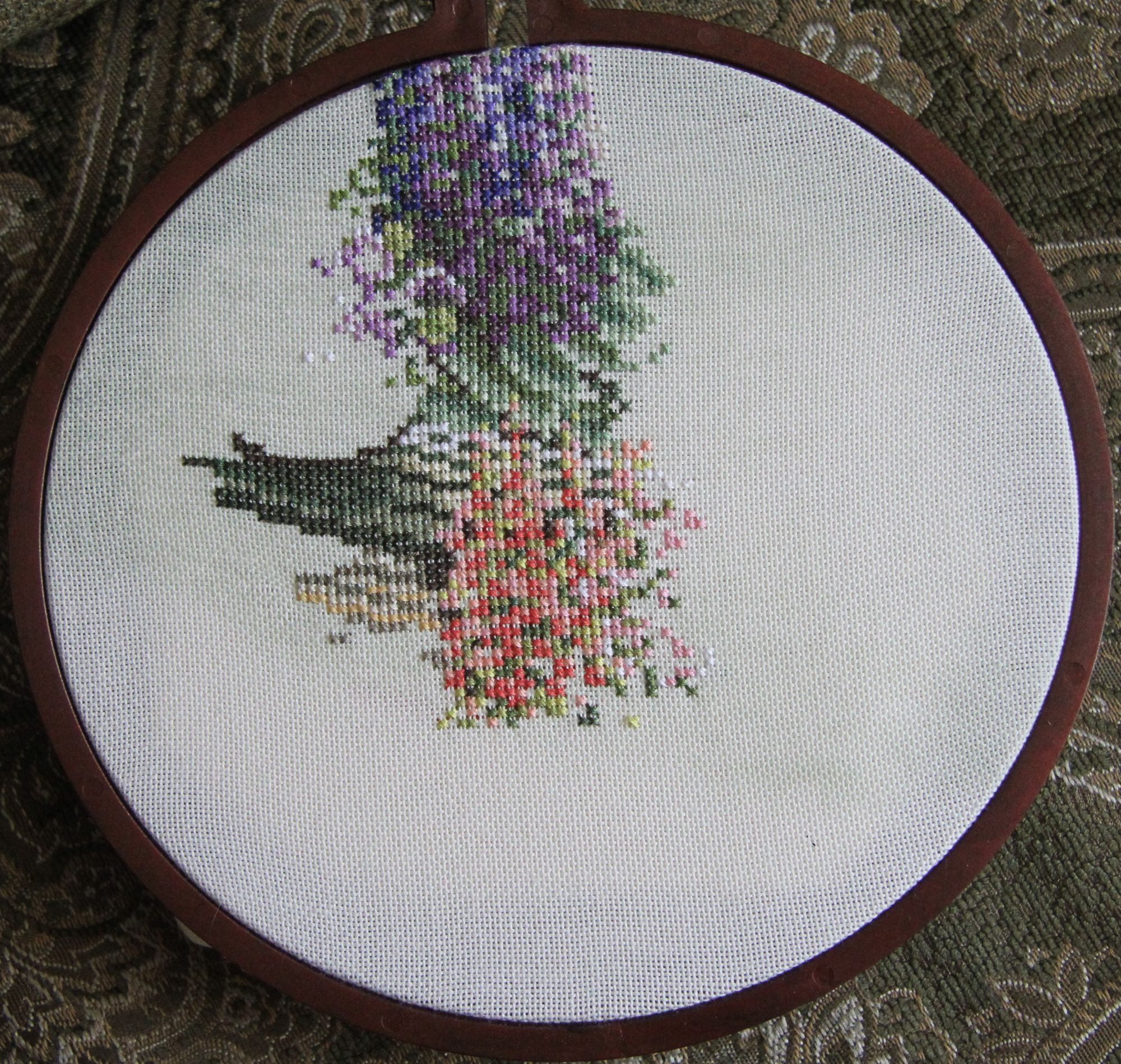 27 марта 2021 04.02.2021 в 08:52, angelim сказал(а): У меня тоже была мысль все бросить и их начать - очень уж хороши! Я вижу , с февраля розу так и не начаты ? Всем привет ! Разгоню ка я пыль и скуку за почти двухмесячное отсутствие Начну с законченных процессов : "Мамина радость " . Было . Стало- С прошлого года оставался бэк стич в нижней части работы и на лицах . Откладывала , т.к. не получалось вышить озорную улыбку ребенка , глаза получались какие то косые и не прищуренные от удовольствия. "Летнее цветение " или просто Розы от Летистич Было . Стало - Отшив получился темнее чем обложка набора , нет эффекта отрисовки кистью. В целом - все красиво , но розы получились как блюдца , постоянная смена ниток , не всегда оправданная. Ниток в наборе осталось достаточно, но светло серые и голубые оттенки прямо положены впритык. Стирала снова в машине . на размер это никак не повлияло. Над оформлением еще не думала , может быть во что то прикладное . "Зимняя птичка " от Полины Тарусовой тоже закончена . Фотографий не очень много , но как есть Оформила сразу в имеющуюся круглую раму . Мне очень нравится ! Как потом написала дизайнер - мой отшив был самым первым Теперь о продолжениях : Безумное застолье Дименшинс - появились новы обитатели кормушки . Григорию есть за кем приглядывать . Очень красочный и интересный сюжет . Икона от Теи - на одном дыхании вышился лик , качество проработки просто поражает , настоль точно подобраны оттенки , что и не скажешь что вышито нитками Было =. н аданный момент . К сожалению , пока процесс отложила , хотя и собиралась закончить к Пасхе 3 мая. " У реки " Ланарт . Набор начала почти 2 года назад и сразу отложила . Дело в том , что на принтованной основе я не могла найти точку отсчета . Начала тогда примерно , совместив указатели . НО , посмотрев внимательно на обложку набора , решила все распороть и начать с того места , где концы цветущего куста заходят на пару крестиков на стену. Теперь иду вниз и в стороны .. Метки на основе мне показались какими то кривыми - вертикаль еще более=менее , а по горизонтали вообще одна ниже другой. первое впечатление - как будто набросали бисер = много похожих оттенков , разбросанных вертикально. Закончив 4 работы ( еще одна новогодняя игрушка от Волшебной страны) , начала я таки новый процесс= старенький Дим с нежнейшим сюжетом . Заменила белую Аиду 14 каунта на равномерку бежево=серого оттенка . Смотрится замечательно . Даже полукресты в 5 нитей лежат очень ровно. Ниточки американские тоньше современных , мягче что ли. Вышиваешь и наслаждаешься Немного продвинула еще и зимних уток , но покажу в следующий раз , если будет еще прибавка в крестиках. Спасибо тем. кто дочитал и досмотрел до конца ! TheSunniestDay, оленек, Графиня и 31 других сказали спасибо Поделиться сообщением Ссылка на сообщение