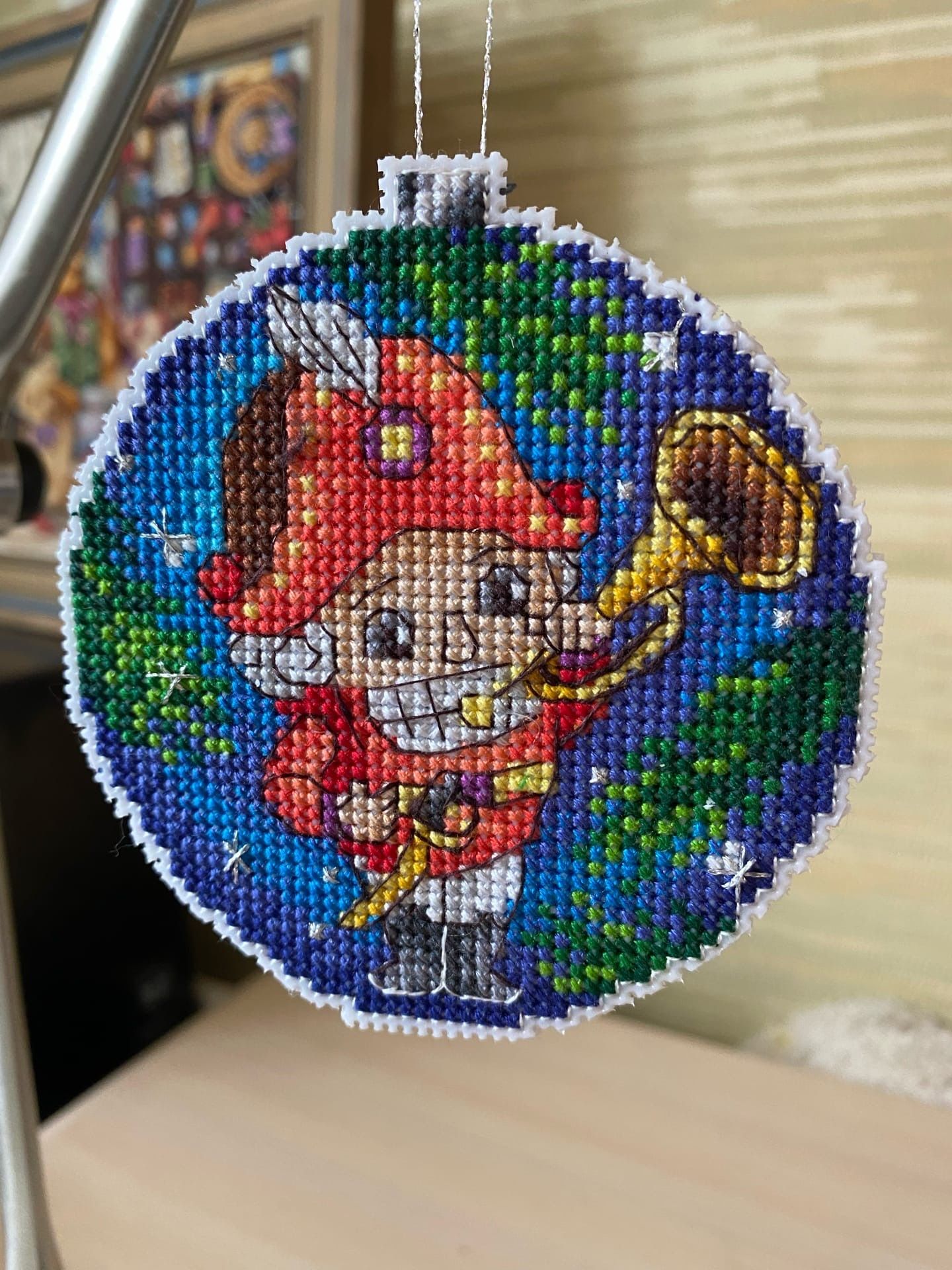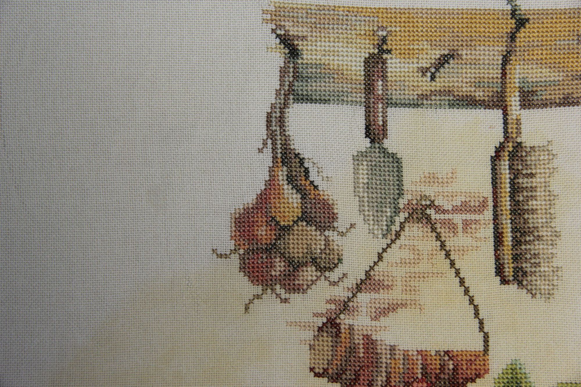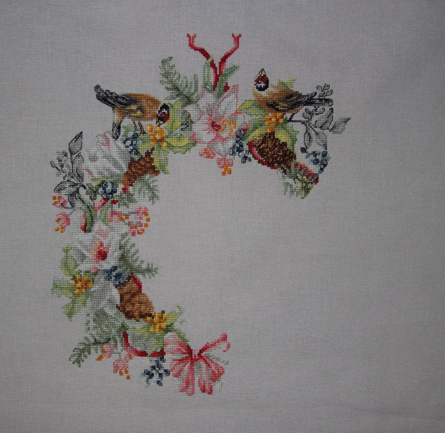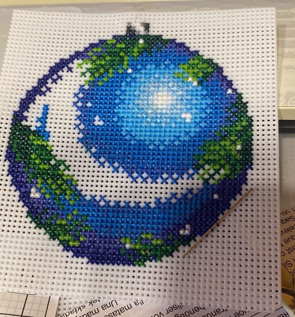 14 июля 2022 Добрый день всем заглянувшим ! Небольшой отчетик , или как я провела месяц с вышивкой . Начнем пожалуй с законченного процесса - "Куклы " от Димешинс . Было -. стало - Изменила рисунок покрывала на заднем плане - на равномерке как то не очень у меня получаются французские узелки и при их большом количестве будут видны протяжки с изнанки . Купила сразу под эту вышивку белую раму , никак не оформлю . К этому набору есть компаньон , надо осенью и его вышить . Был у меня "дорожный процесс" на пластике - вышивала на работе , на даче , заканчивала уже дома . Сразу будет начало и конец . Набор от Жар-Птицы "Новогодний шар с Щелкунчиком" Про процесс особенно и рассказать нечего , все легко и без сюрпризов . На оборотной стороне надпись делать не стала . Ниток осталось очень много , но по качеству они не очень . На маленькую игрушку еще можно , а полноценный процесс будет шить некомфортно . Ничего больше не было закончено , только продолжения и начинания Зимнее Утро Димешинс . Было . появился домик, несколько мрачноватый Декабрь от Лука-С Было так . потом появилась вторая птица , а так же шишки и ягоды Кухня от Ланарте Было . Далее появились новые детали -. а так же осталась фотография для определения реального размера вышивки Здесь вышит только один лист схемы и немного второго листа ( где левая часть деревянной полки ) . Вышивать непросто , постоянная смена оттенков , а так же сам размер . Хоть сюжет очень нравится , но на моей кухне места для него мало . Дизайнерам Ланарте надо было сделать этот сюжет меньше и взять основу с меньшим каунтом . На этом первая часть закончена Аринесса , nata2017, Графиня и 24 других сказали спасибо Поделиться сообщением Ссылка на сообщение