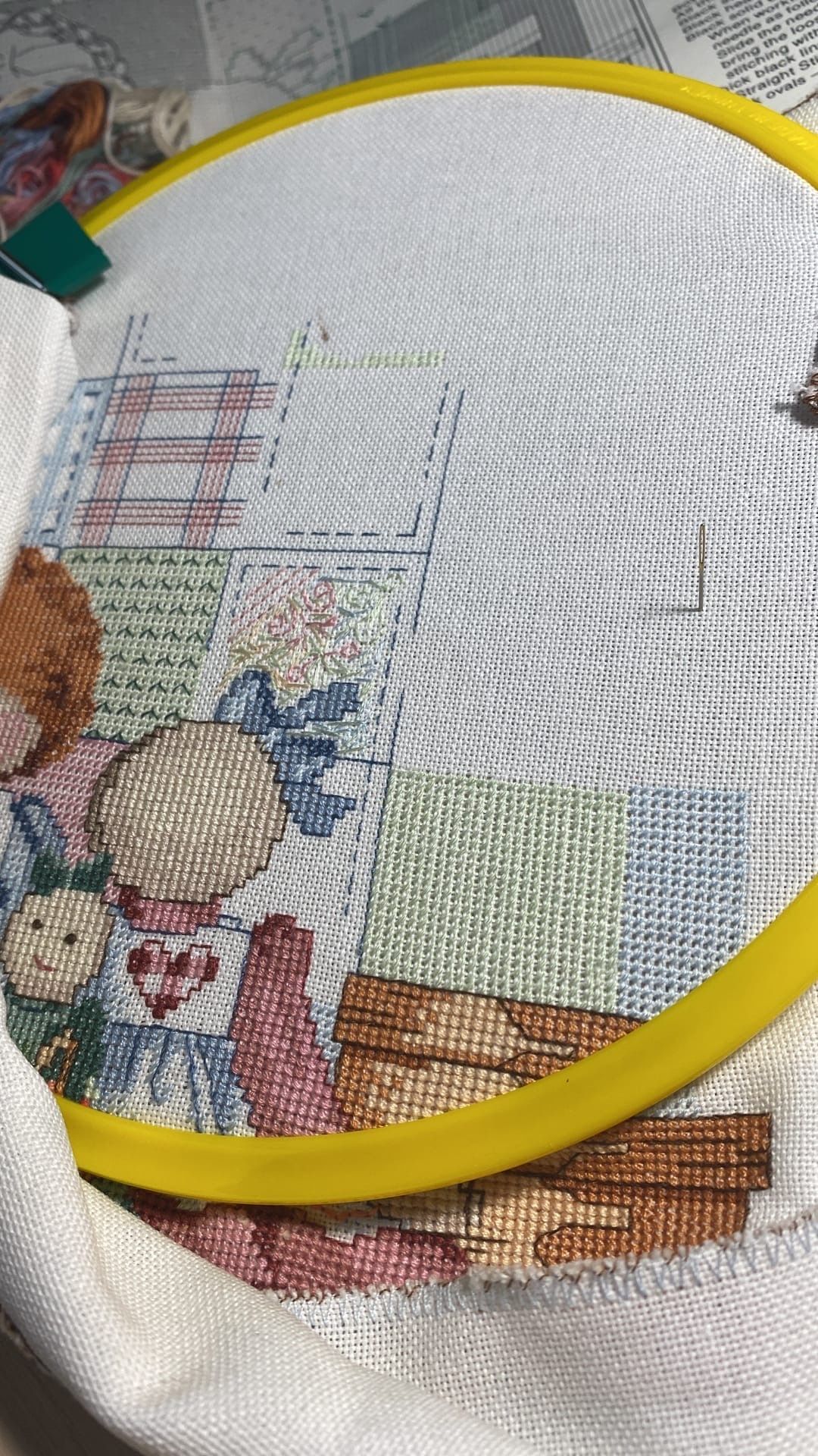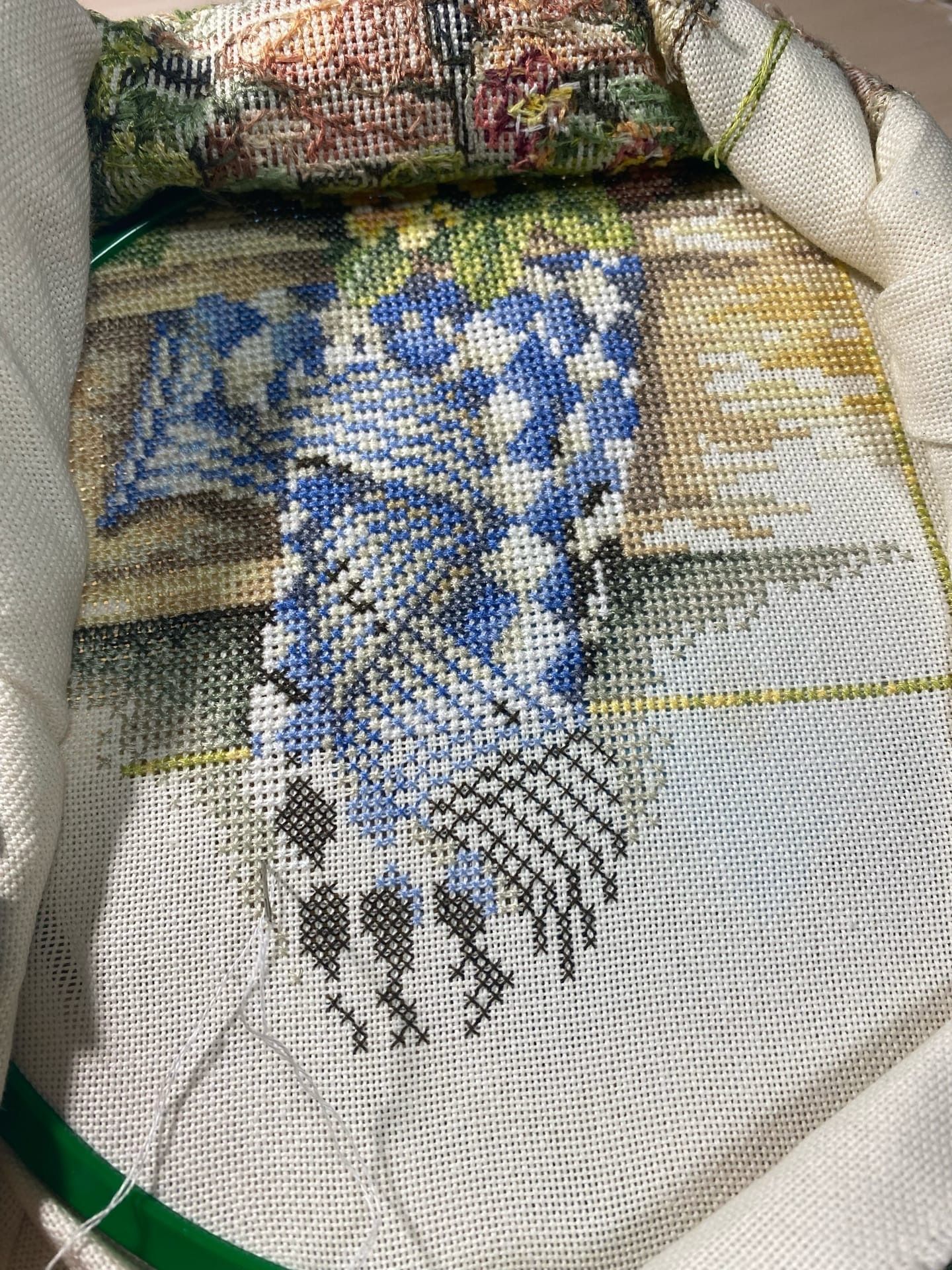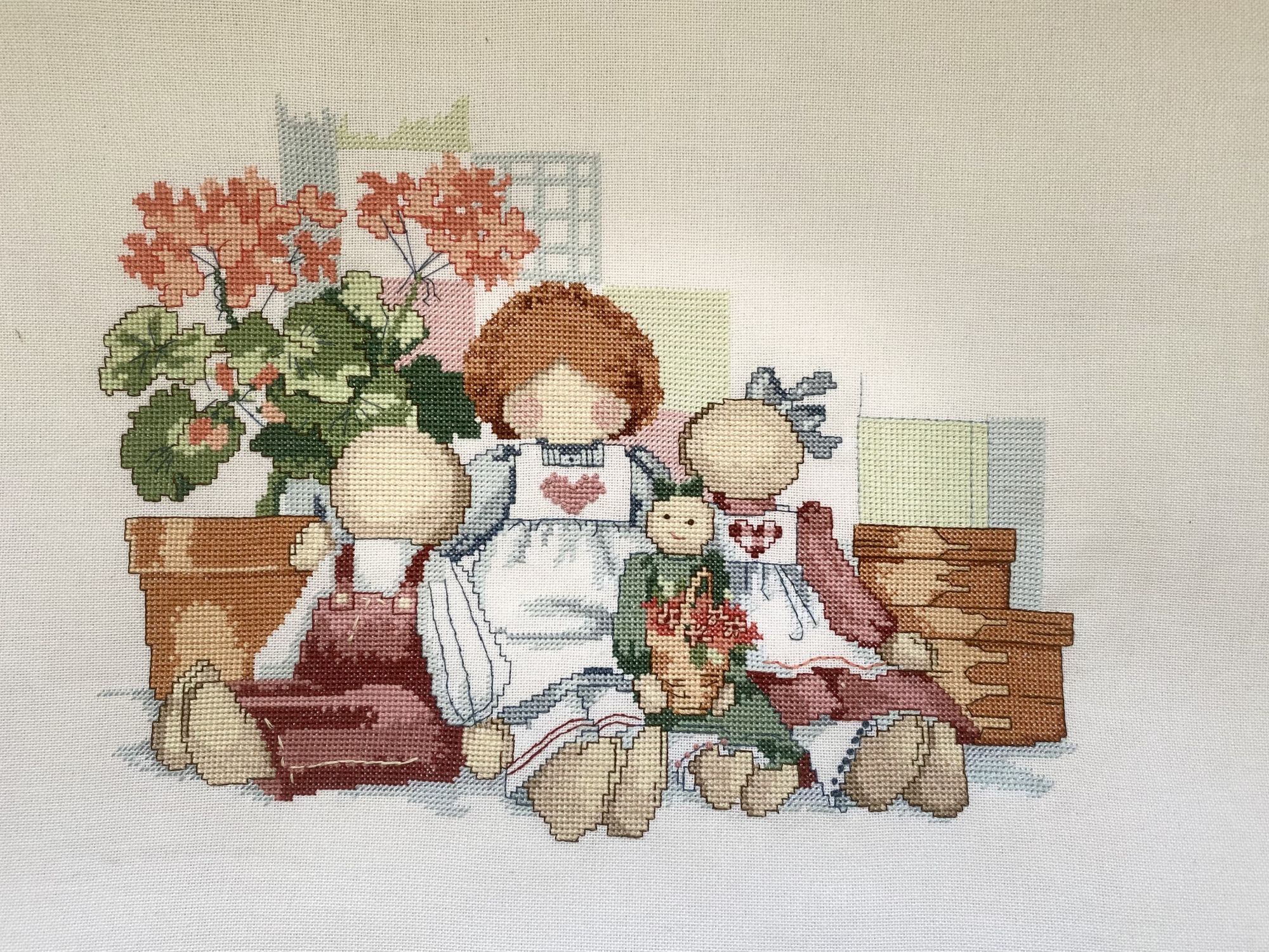 14 июля 2022 Добрый день всем заглянувшим ! Небольшой отчетик , или как я провела месяц с вышивкой . Начнем пожалуй с законченного процесса - "Куклы " от Димешинс . Было -. стало - Изменила рисунок покрывала на заднем плане - на равномерке как то не очень у меня получаются французские узелки и при их большом количестве будут видны протяжки с изнанки . Купила сразу под эту вышивку белую раму , никак не оформлю . К этому набору есть компаньон , надо осенью и его вышить . Был у меня "дорожный процесс" на пластике - вышивала на работе , на даче , заканчивала уже дома . Сразу будет начало и конец . Набор от Жар-Птицы "Новогодний шар с Щелкунчиком" Про процесс особенно и рассказать нечего , все легко и без сюрпризов . На оборотной стороне надпись делать не стала . Ниток осталось очень много , но по качеству они не очень . На маленькую игрушку еще можно , а полноценный процесс будет шить некомфортно . Ничего больше не было закончено , только продолжения и начинания Зимнее Утро Димешинс . Было . появился домик, несколько мрачноватый Декабрь от Лука-С Было так . потом появилась вторая птица , а так же шишки и ягоды Кухня от Ланарте Было . Далее появились новые детали -. а так же осталась фотография для определения реального размера вышивки Здесь вышит только один лист схемы и немного второго листа ( где левая часть деревянной полки ) . Вышивать непросто , постоянная смена оттенков , а так же сам размер . Хоть сюжет очень нравится , но на моей кухне места для него мало . Дизайнерам Ланарте надо было сделать этот сюжет меньше и взять основу с меньшим каунтом . На этом первая часть закончена Аринесса , nata2017, Графиня и 24 других сказали спасибо Поделиться сообщением Ссылка на сообщение