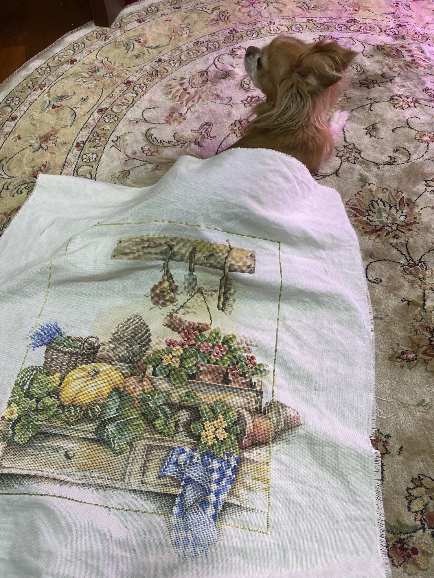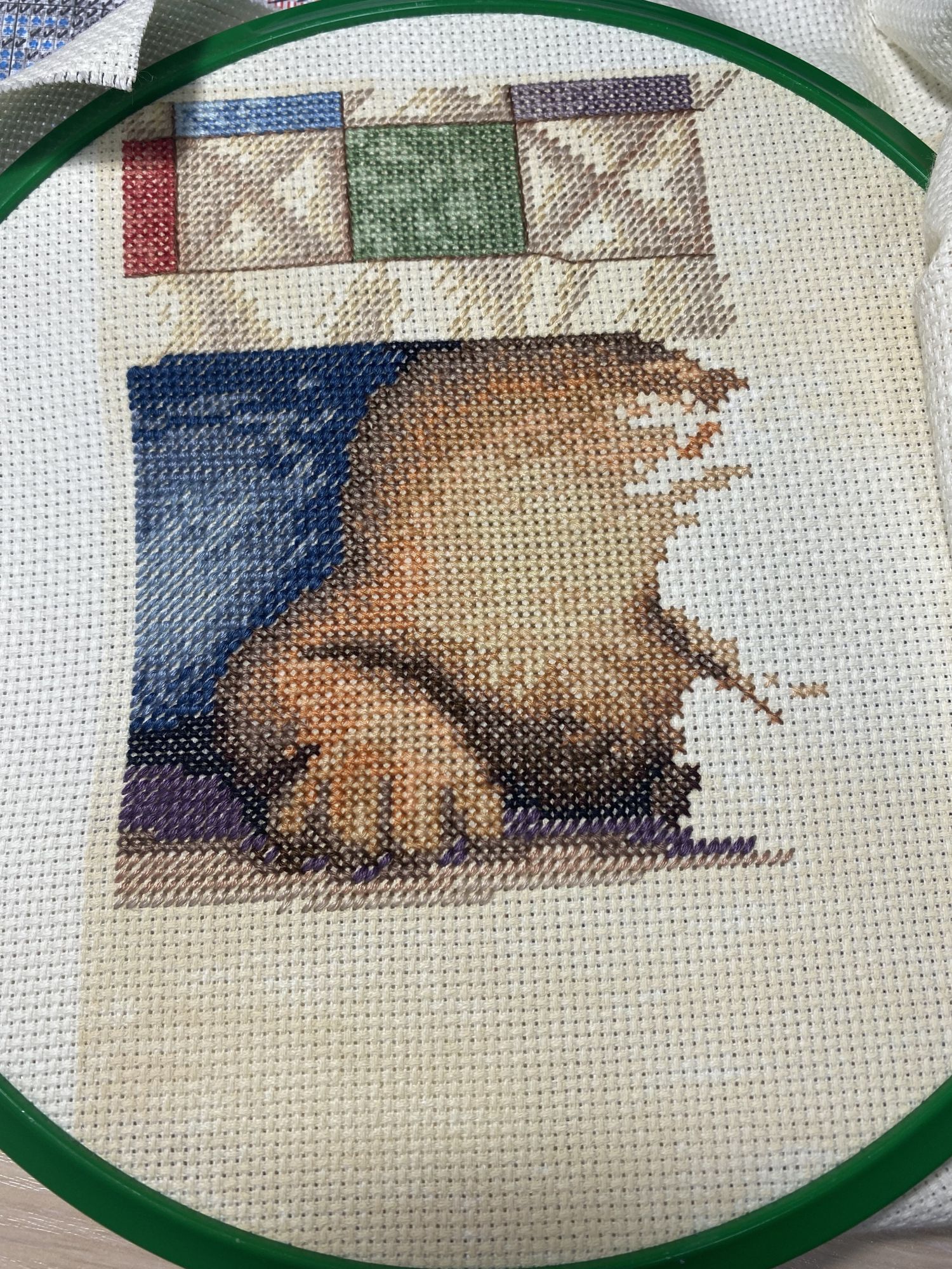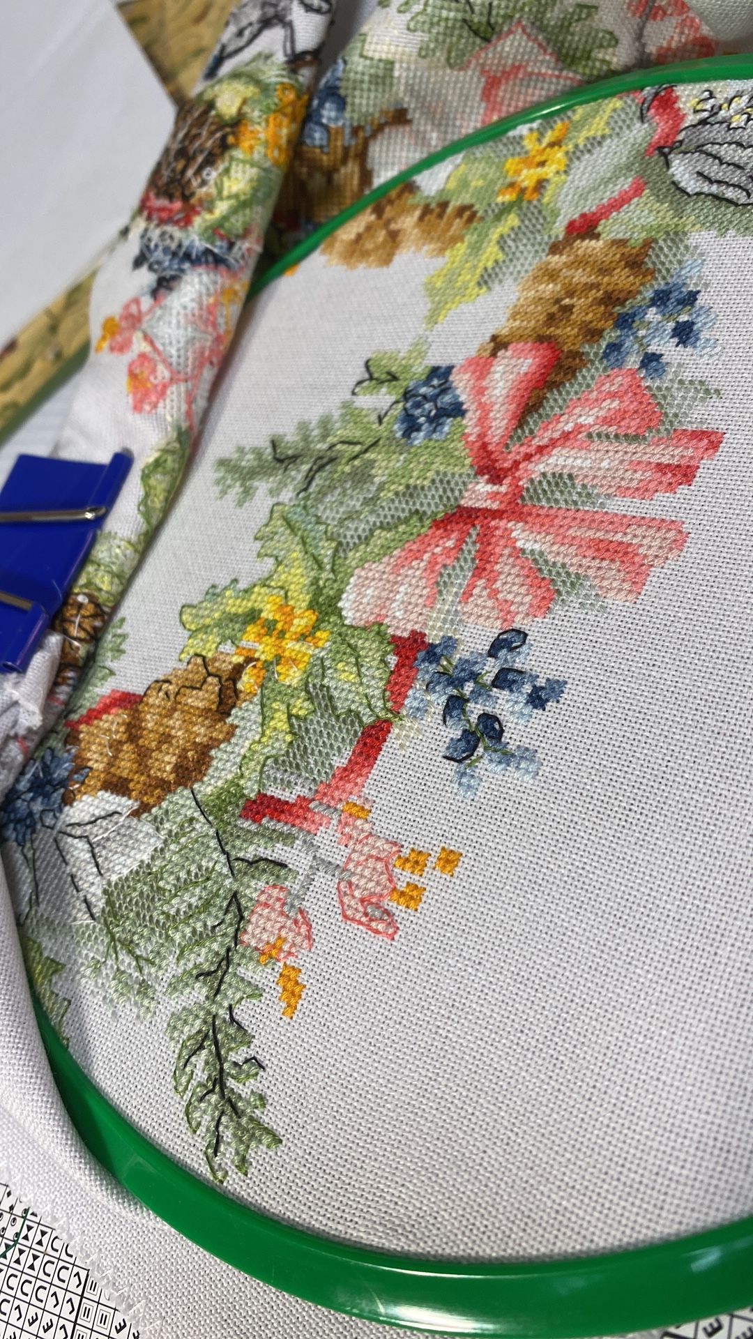 5 ноября 2022 Всем заглянувшим добрый вечер ! Покажу-ка я свои законченные процессы и немного продвижений по другим 1. Законченные процессы : - Марья искусница " Жаркий полдень " или "велосипед" в обиходе Было -. стало - - Лука-С " Декабрь ". или же зимний венок Было -. стало - - Ланарте "Кухня " Было отшито больше половины , потом постепенно прибавилось деталей ( последняя фотография для определения размера визуально) Хотелось бы рассказать о каждом процессе отдельно , но в более ранних отчетах вроде бы все сказано , и не хочется повторяться . Самое главное - надо вышивать , хоть по чуть-чуть , а если надоело - возьми другое Помимо законченных работ . есть те , которые только на пути к финишу Тея Гувернер " Икона" ( Результат трех вечеров ) Было . и стало Здесь уже появились более-менее логические участки вышивки мулине , и участки не из одиночных крестиков . Дименшинс " Щенки под одеялом" Идут неспешно , но все же появилось одеяло полностью А так же в этот раз категория " Начала и закончила " - Дименшинс " Новогодние истории (Christmas Stories) Вышито по набору примерно за 15 вечеров . Мне показалось что процесс очень легкий , конечно, были участки с заморочками . но в основном все легко и просто . В Галерее видела , что многие убирают серые пятнышки с Санты и девочки , но я оставила как есть . Думаю , что это блики огня из камина , просто нам его не видно . Надпись на книге сделала золотым креником , в результате получилось что то смазанное , но блестит хорошо . Набор от нашего дизайнера Оксаны Ершовой "пасхальный кролик " Тут вышло что готовая работа появилась намного раньше чем процесс Набор был куплен на Формуле рукоделия в этом году и сразу же начат . В составе - схема , пластиковая и фетровая основы , нитки. бисер . шармик . иголка . Очень милый сюжет ! Заменила шармик в виде морковки на часики Ангел рукоделия от Евгении Колесниковой и Ангел Весны от того же автора , были вышиты к уже имеющимся двум . На этом все закончилось , если будут продаваться такие наборы в России еще , но может быть продолжу эту серию На этом пока все , скоро покажу вам новые процессы и некоторые покупки natali42, marvlase, оленек и 27 других сказали спасибо Поделиться сообщением Ссылка на сообщение