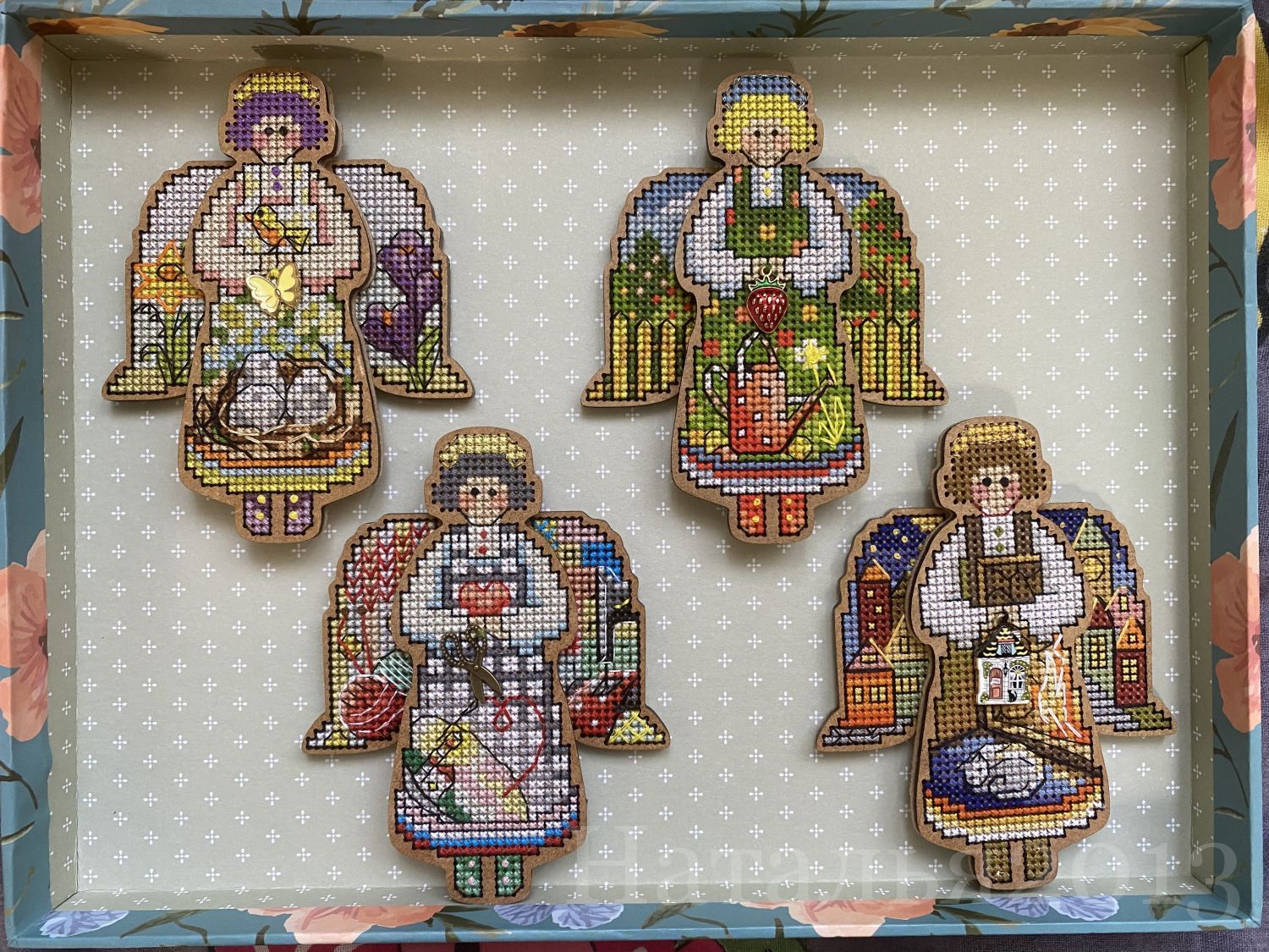 19 августа 2022 Добрый день всем заглянувшим ! Небольшой отчет о крестиках на канве и не только . Спонтанно взяла несколько процессов ; 1. Щенки - Было . стало Достала свой Дубко , натянула на раму , пытаюсь привыкнуть вышивать за станком . Вроде бы хорошо , но пяльцы привычнее 2. Декабрь Было -. приросло за пару дней Делаю бэк по ходу вышивки , с ним и как то нагляднее и потом меньше работы Начала и закончила двух ангелов от дизайнера Евгении Колесниковой Наборы покупала на осенней Формуле , один для пробы брала еще раньше в группе в Контакте . Руки дошли только сейчас . Вышила и собрала двух , еще два пока лежат до особого настроения . Ангел Домашнего очага - Ангел сада - В каждом наборе схема , деревянные ( фанерные ) заготовки для вышивания , фетровые вырубки из фетра как задник , шармик . Нитки ДМС по ключу собирать самостоятельно . В каждом процессе используются около 30 оттенков , собственных запасов как всегда не хватило , пришлось докупать для каждого по 3-4 мотка . Кажется что процесс на вечер , но у меня выходило на каждого по 2-3 захода , плюс сборка . Вышить сразу 4 - все таки для меня сложновато , а с перерывами - самое то ! Планирую осенью и остальных вам показать . Жалко что их сейчас в продаже нет , но надеюсь , ситуация изменится , ва если не измениться , то и того что есть вполне достаточно На этом пока все , всем хороших выходных оленек, ЛАДОМИРА, Nat717 и 23 других сказали спасибо Поделиться сообщением Ссылка на сообщение