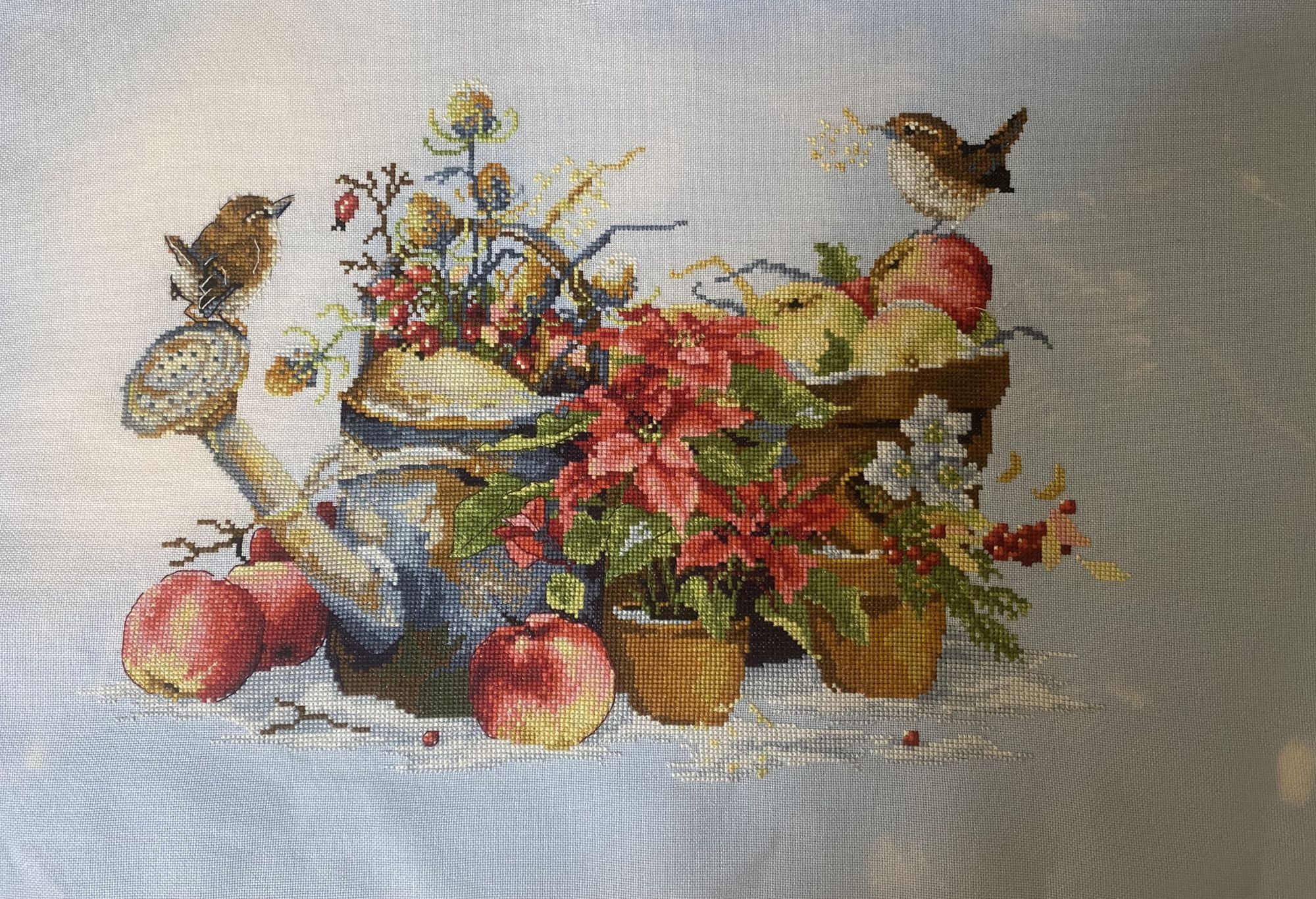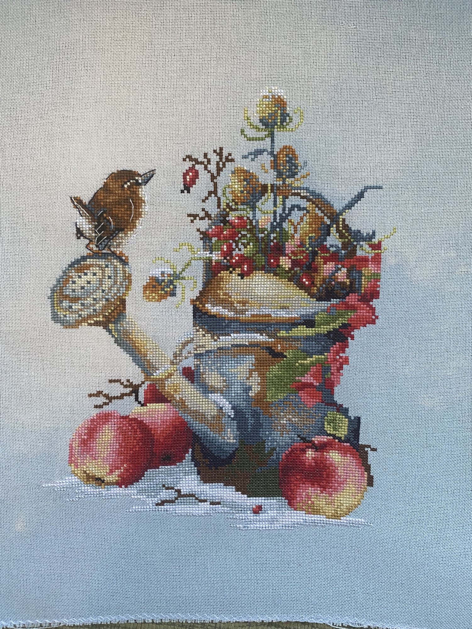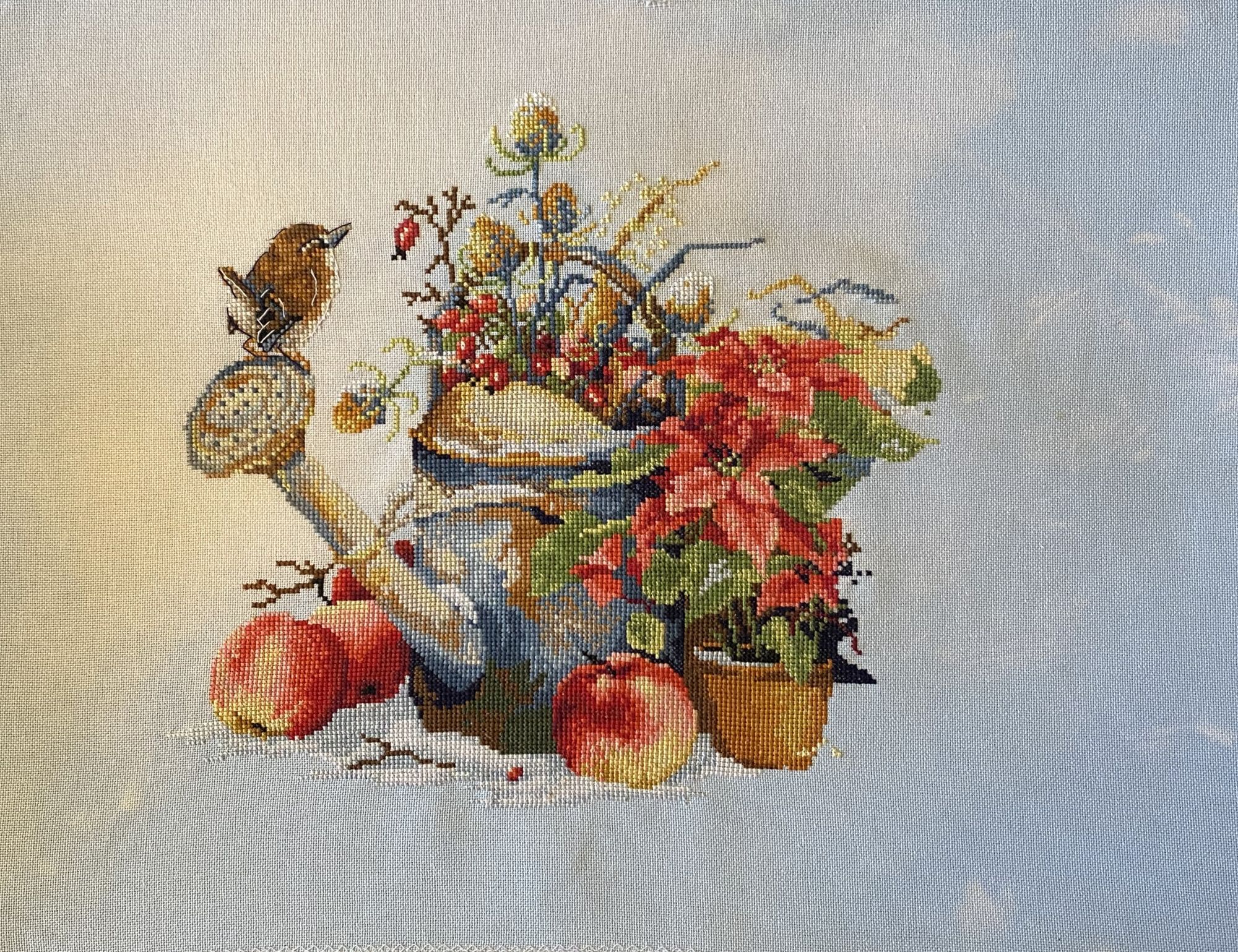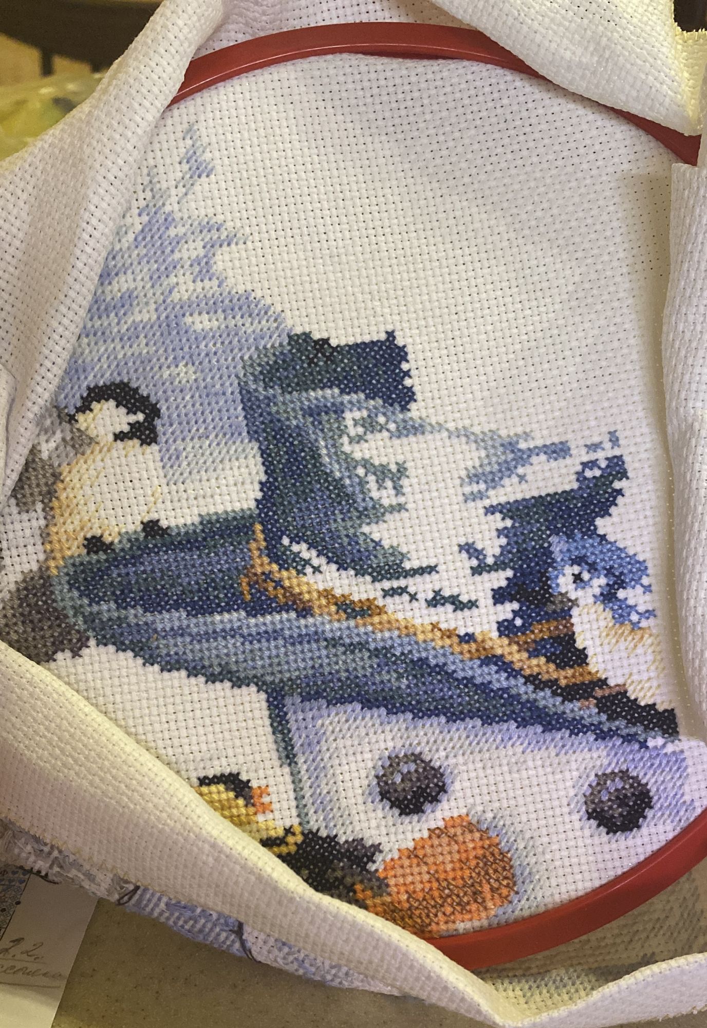 5 апреля 2024 Финиш 2023 года , маленький наборчик Буцилы , в комплекте была пластиковая рамочка для оформления , но отсутствовал шармик в виде садовой лопатки . Этого добра много , добавила от себя пару штук . Аида была заменена на равномерку , добавила бисер вместо узелков , в остальном все по схеме родными нитками . Финишем этого года стала красная машинка от Дименшинс Канва заменена на Мурано голубого цвета с белыми брызгами , идеально похожими на падающие хлопья снега . Очень быстро вышился маленький набор Ланарте с садовой скамейкой Замена равномерки на похожий лен оформлять не планирую , хочу вышить еще несколько похожих сюжетов , а потом и оформить всех вместе . Есть несколько новеньких процессов : Зимний - Снеговик от Дименшинс В этом процессе ничего не меняла , вышиваю на канве 14 каунта из набора и Весенний - Птица в весенних цветах от Ланарте Не помню какая основа была в наборе , но кажется была мною произведена замена на белую Монику . Не совсем легко , но оторваться сложно . Планирую дошить левую сторону в апреле и взять еще какой-нибудь весенний сюжет Всем пока , хорошего настроения и с началом весенних-полевых работ ( у кого есть дома и дачи ) TheSunniestDay, OlkaY, Ксен40 и 25 других сказали спасибо Поделиться сообщением Ссылка на сообщение