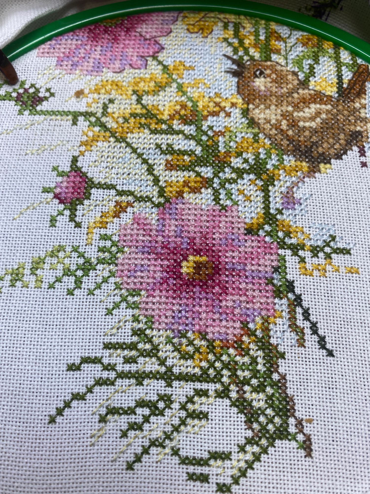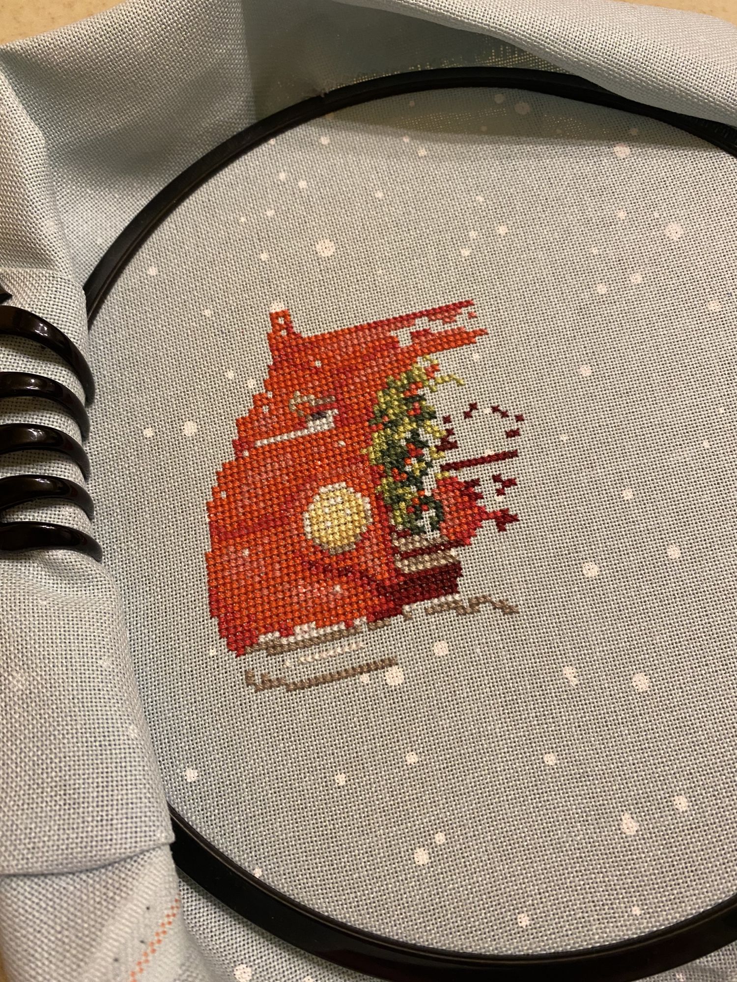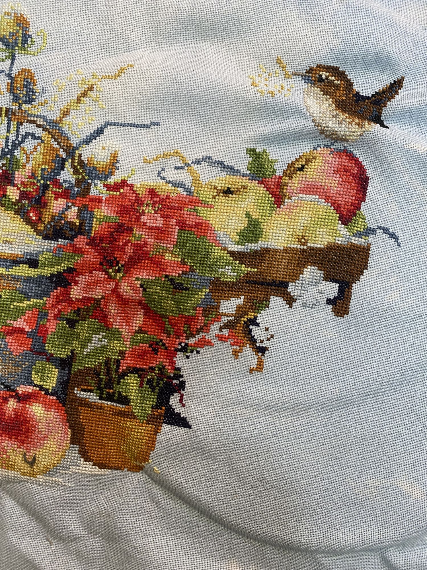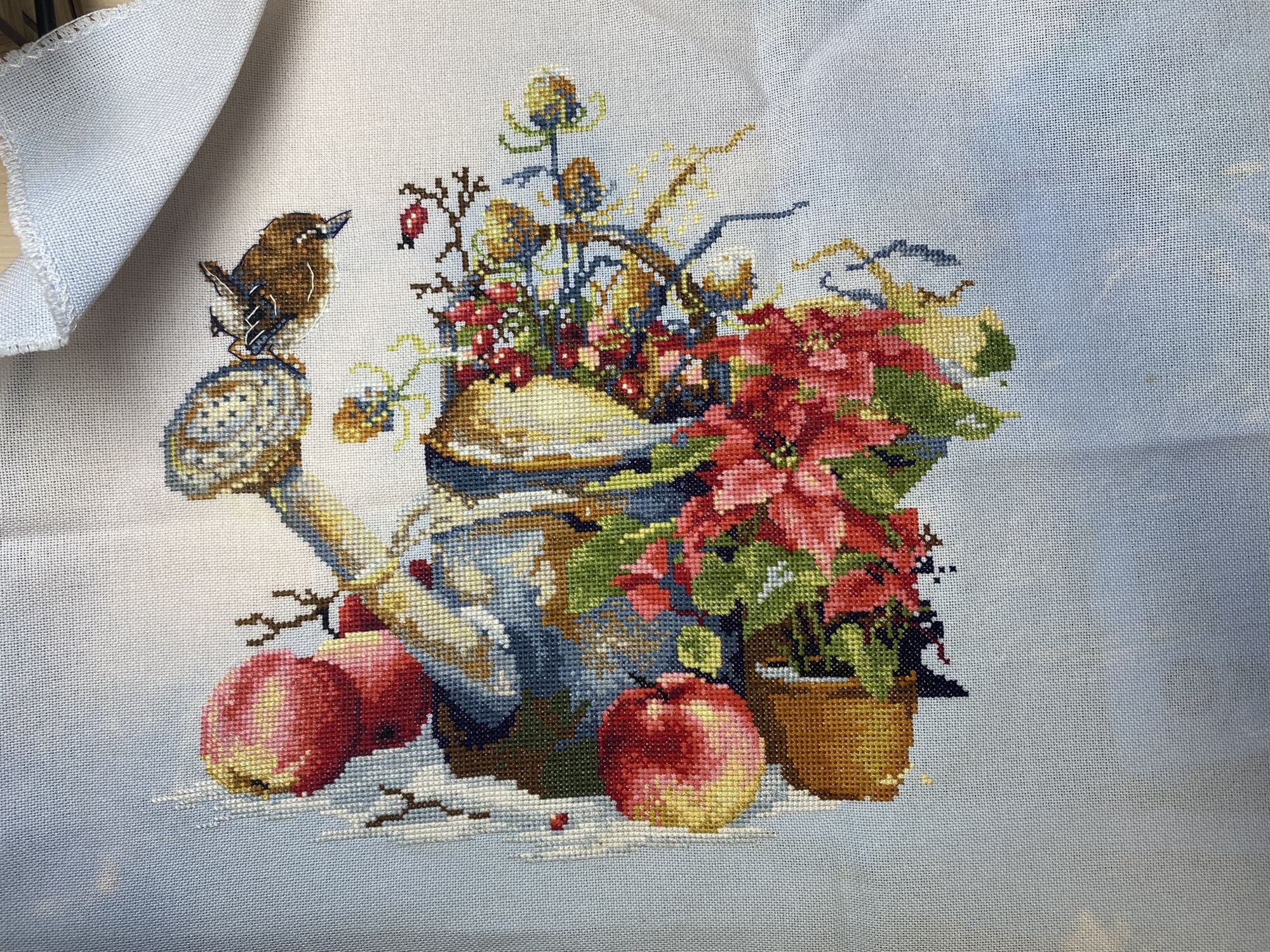 5 апреля 2024 Финиш 2023 года , маленький наборчик Буцилы , в комплекте была пластиковая рамочка для оформления , но отсутствовал шармик в виде садовой лопатки . Этого добра много , добавила от себя пару штук . Аида была заменена на равномерку , добавила бисер вместо узелков , в остальном все по схеме родными нитками . Финишем этого года стала красная машинка от Дименшинс Канва заменена на Мурано голубого цвета с белыми брызгами , идеально похожими на падающие хлопья снега . Очень быстро вышился маленький набор Ланарте с садовой скамейкой Замена равномерки на похожий лен оформлять не планирую , хочу вышить еще несколько похожих сюжетов , а потом и оформить всех вместе . Есть несколько новеньких процессов : Зимний - Снеговик от Дименшинс В этом процессе ничего не меняла , вышиваю на канве 14 каунта из набора и Весенний - Птица в весенних цветах от Ланарте Не помню какая основа была в наборе , но кажется была мною произведена замена на белую Монику . Не совсем легко , но оторваться сложно . Планирую дошить левую сторону в апреле и взять еще какой-нибудь весенний сюжет Всем пока , хорошего настроения и с началом весенних-полевых работ ( у кого есть дома и дачи ) TheSunniestDay, OlkaY, Ксен40 и 25 других сказали спасибо Поделиться сообщением Ссылка на сообщение