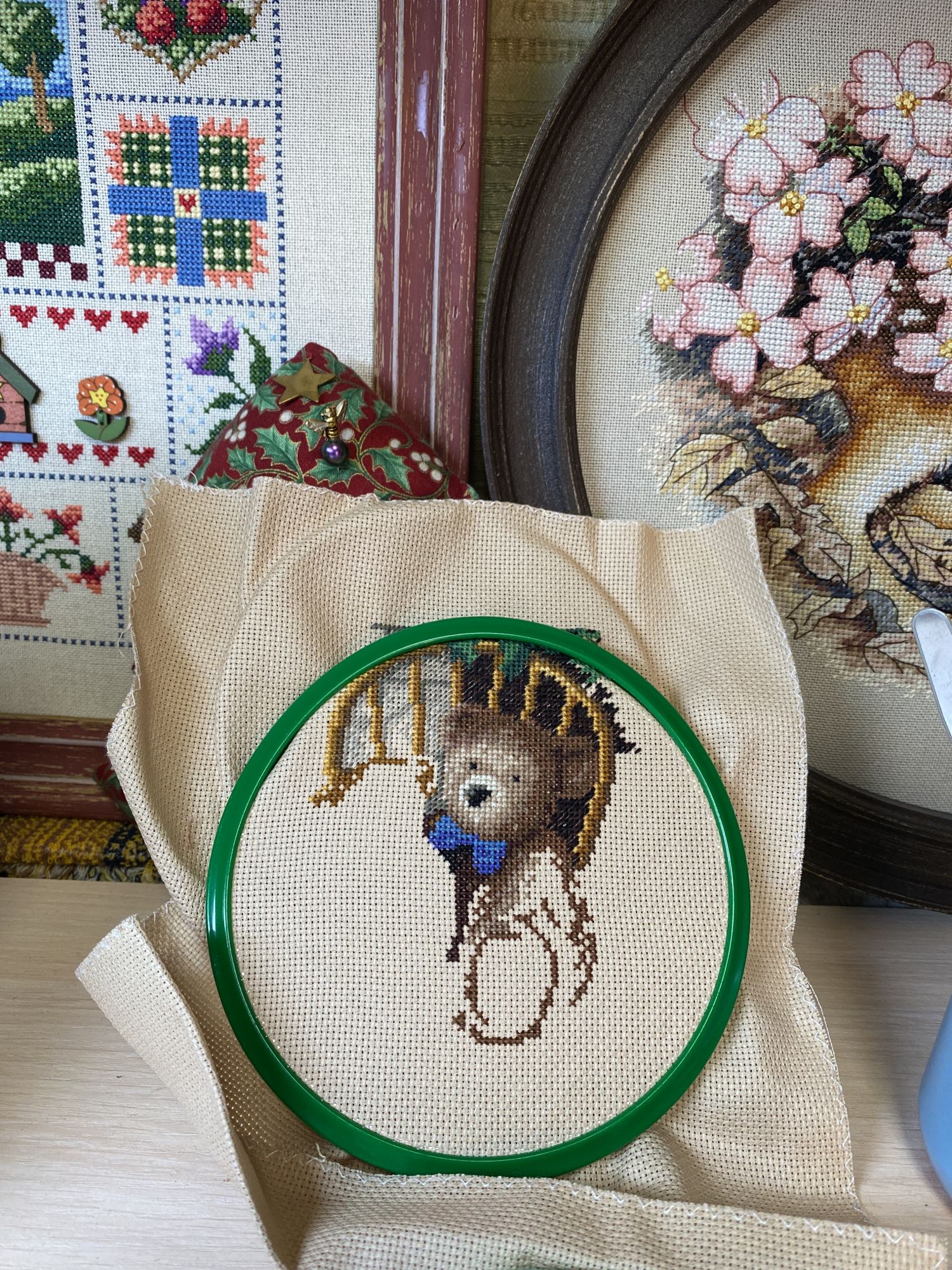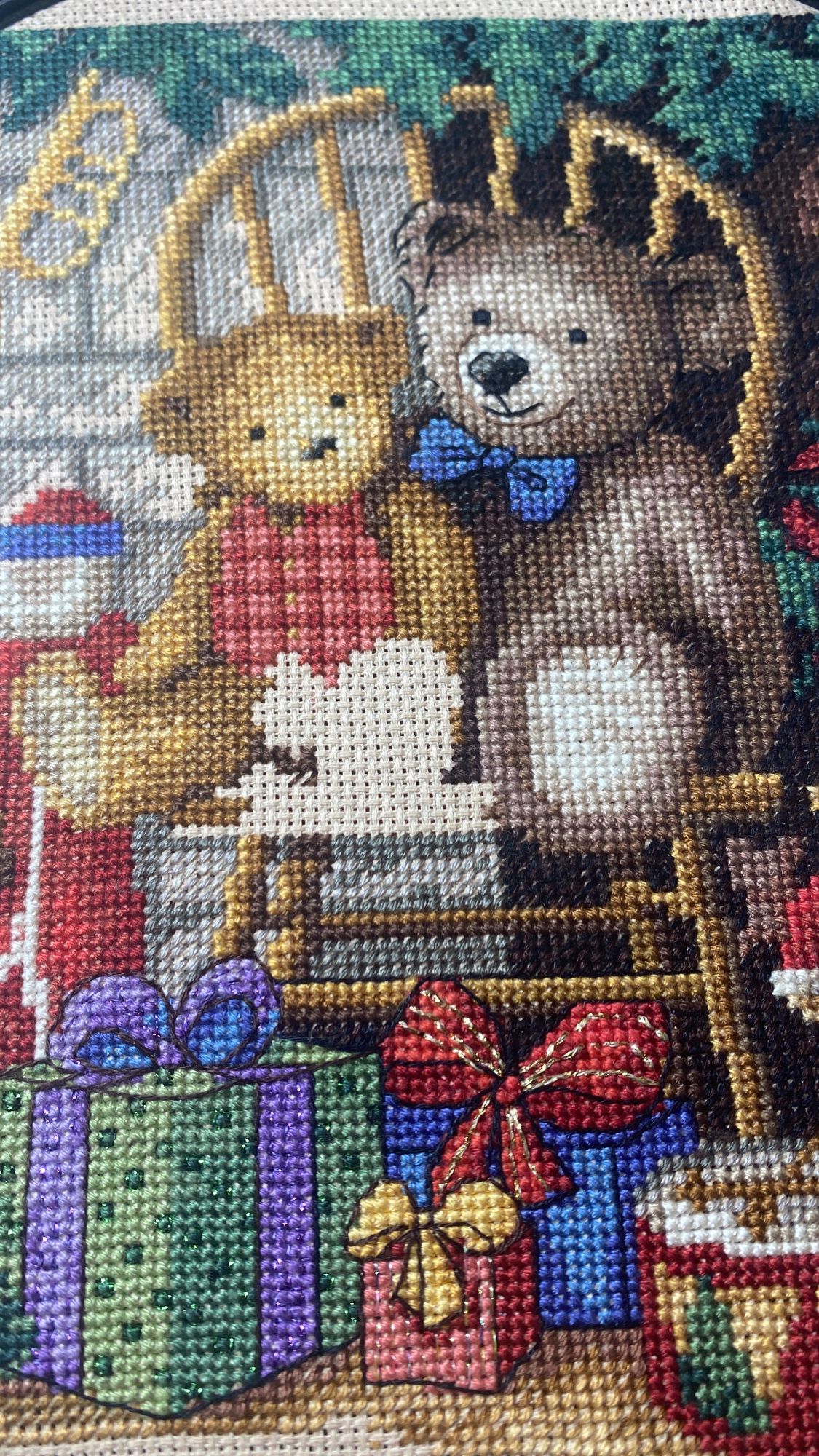 11 ноября 2023 (изменено) Раздел " Почти закончено , не хватает бэка " 1. Дименшинс Зимнее утро Было . стало - Почти закончено кроме бэка 2. Дименшинс "Новогодние мишки " Вышито подбором с использованием остатков набора , ниток Дименшинс , канвы Дименшинс . Как любой миниГолд и простой и сложный одновременно. От себя добавила разноцветный Крейник , бисер , одним словом придала еще больше яркости и нарядности . Вообще то процесс закончен и даже оформляется , но не могу найти финальное фото . Финалом будет уже в раме . 3. Мережка "Декабрь " Было -. стало - Остался бэк в половине работы Из нового раздела " Начало есть - конца не видно " РТО " Васильки " Анкор Пейзаж - замена канвы на равномерку . Вышивается сложно , даже не ожидала , плюс четверти . Поэтому очень медленно и по большому желанию И не будем же мы вышивать по одному наботу , взяла второй : Анкор Семплер с лесными растениями А к этому семплеру возьмем еще один семплер Вышивается по набору , с заменой основы на лен . Очень легко , приятно , быстро. И в самом конце 2 Дименшинса Дименшинс "Птенцы голубой сойки " - оригинальный набор , но заменила основу на равномерку , кажется Пикчерс . Дименшинс Зайцы Подбор на основе остатков набора материалами Дименшинс Остальное покажу потом , итак слишком много фотографий , даже жалко наших администраторов Изменено 12 ноября 2023 пользователем Татуся kolpluna, TheSunniestDay, nata2017 и 29 других сказали спасибо Поделиться сообщением Ссылка на сообщение
