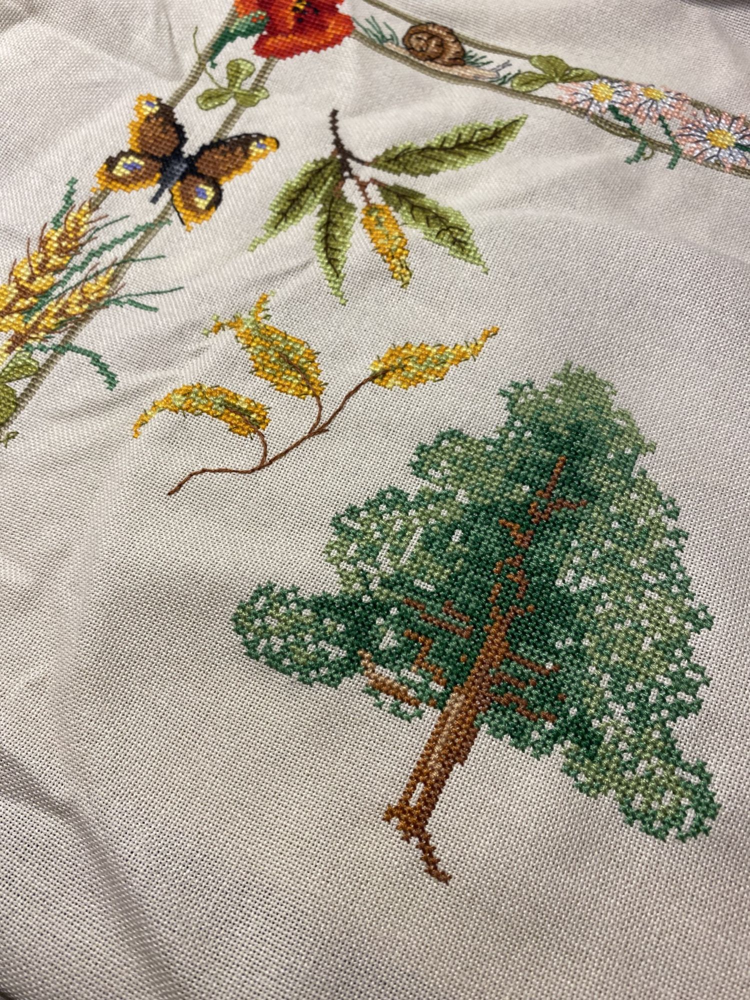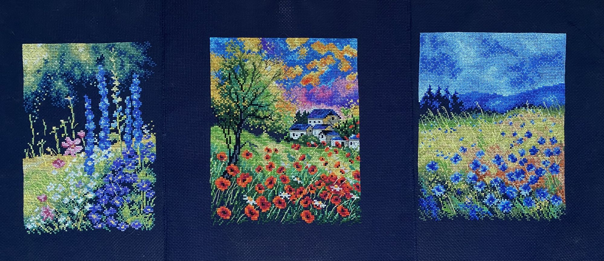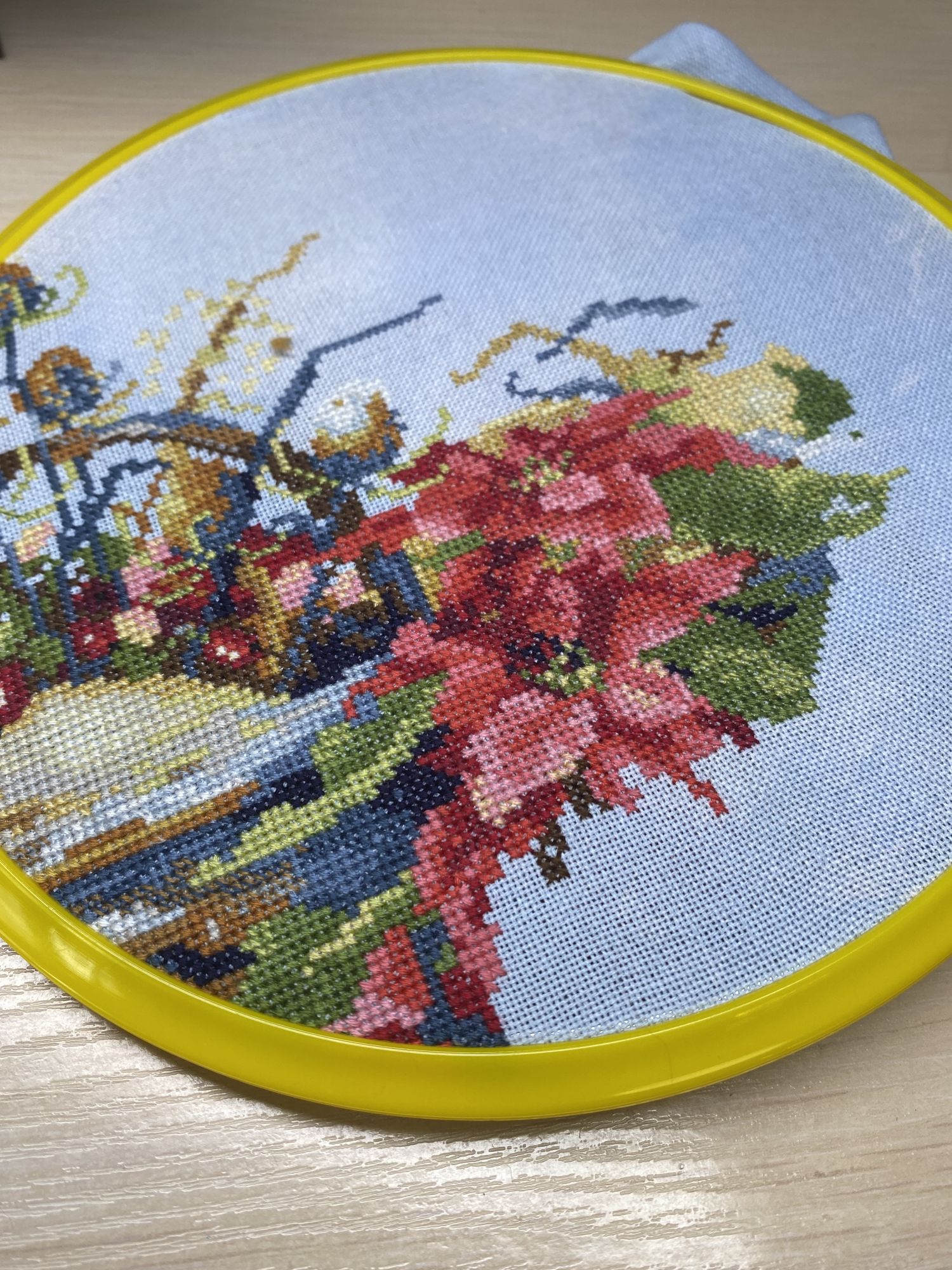 11 ноября 2023 Теперь перейдем хотя бы к законченным процессам С начала года вышиваю серию РТО , хочется в ноябре -декабре ее закончить 1. РТО " Алые маки " 2. РТО "Дельфиниумы " Третий сюжет пока в процессе . Не могу сказать что легкие процессы , очень яркие , с большим количеством вырвиглазных оттенков , плюс вышивка на темно-синей канве . Сложно- но интересно , быстро привыкаешь к темной основе и схеме 3.РТО "Вечерняя прохлада " Замена белой канвы на сливочную равномерку . Вышивался процесс легко , без трудностей , немного есть различия по оттенкам с превьюшкой Теперь кто ждет Lanarte 4. Ланарте "Анемоны" Здесь уже не могу сказать по поводу основы , скорее всего лен я брала свой . Тоже все шло приятно и легко , получилась в итоге акварелька 5. Ланарте "Весенний садовый семплер " В наборе была принтованная основа , но мне показалось что размер ее должен был быть чуть больше . Уже ближе к концу работы пришлось сдвинуть несколько рядов чтобы попасть в размер . Путешественница, Ксен40, Sky026 и 31 других сказали спасибо Поделиться сообщением Ссылка на сообщение