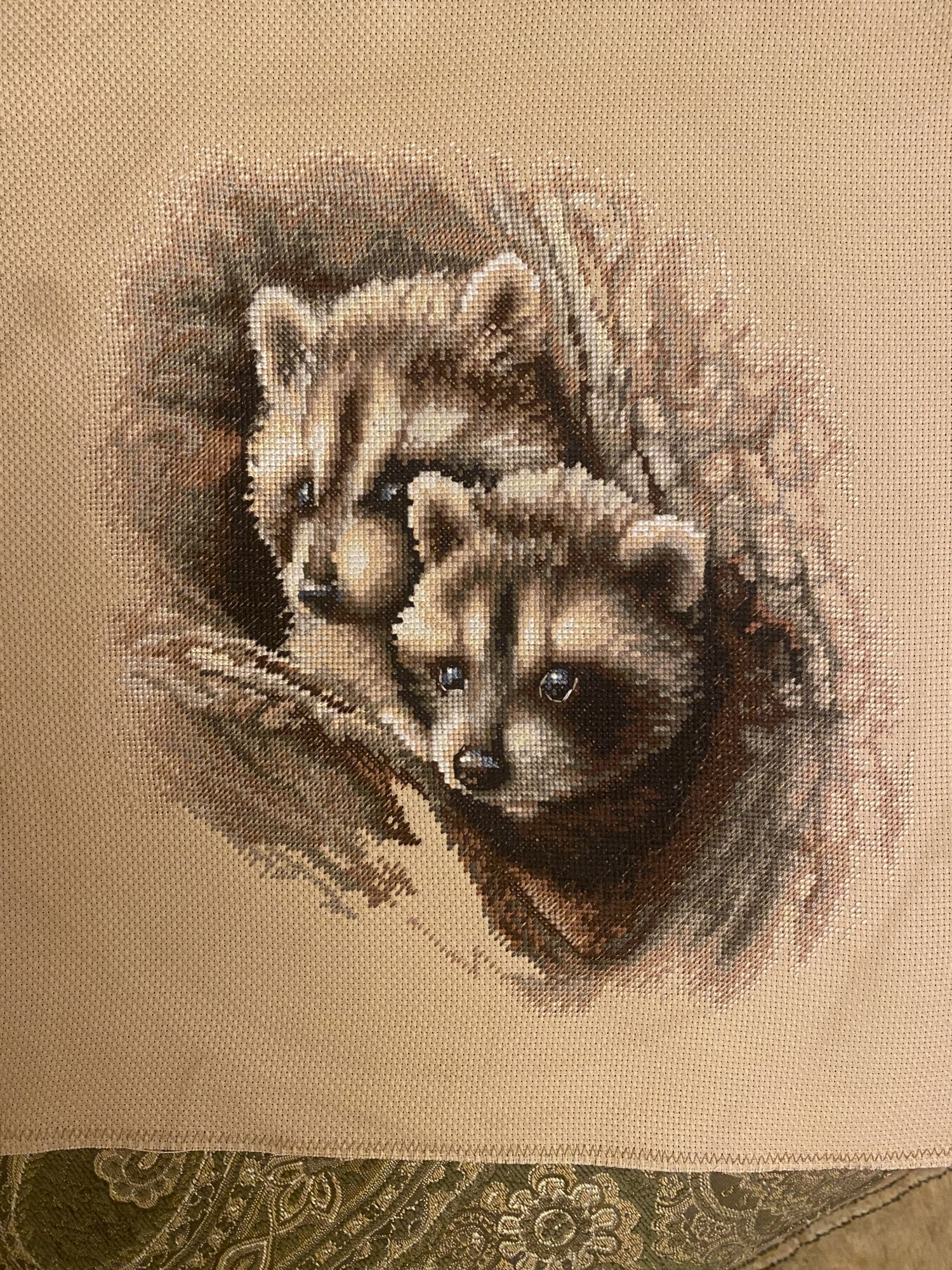 11 ноября 2023 (изменено) Продолжение ....... 6. Мережка "Осенний букет с крапивником " Основу заменила на равномерку , похоже на 28 белого цвета . Процесс довольно таки замороченный из-за часстой смены ниток , но ничего невозможного не существует . 7. Дименшинс "Еноты" С этим процессом вышла отдельная история . Увидела на Авито объявление за 1 рубль , думала что обычно так указывают когда ищут конкретный набор . Но оказалось , это была продажа начатого. За 1 рубль не получилось забронировать , оформили с продавцом за 10 как пилки для ногтей . До непосредственной выдачи думала что пришлют не этих зверей , а именно то , что указано в объявлении. В личной переписке попросили все таки дошить начатое , обещание сдержала ! Единственное , сделала себя вывод , что "чужую руку" всегда надо распускать - как бы хорошо все не выглядело вначале , но в процессе все недостатки видны. Где было возможно , пришлось выпарывать небольшие участки . Но в дальнейшем в процесс втянулась и без труда закончила . 8. Набор "Теплая печка " , приобретенный у Л. Воденниковой на Формуле Рукоделия в 2022 г. Здесь ничего не менялось , все вышивалось строго по набору , который самолично собрал дизайнер . В составе равномерка молочного оттенка ( предположительно Линда 27 каунта) , мулине ДМС на органайзере , схема и т.д. Не хватило нескольких оттенков , пока ждала ответа дизайнера , вышила похожими . Невероятно милый сюжет 9. Овен , новогодняя игрушка "Кот" . Вышита к медведю в пару , но Овен чего-то не доработал или упустил , т.к. медведь и кот получились на разном фоне . Меня это не особо смущает , но если это серия , то надо было бы сделать одинаково. Между делом вышивала новогодние игрушки от Щепки и Сами с усами . За декабрь планирую вышить еще несколько . Есть еще одна полностью законченная работа , и даже находящаяся на оформлении , но финальное фото не могу найти , покажу в следущих отчетах Кому до сих пор интересно , дальше будут процессы в разной степени готовности Изменено 12 ноября 2023 пользователем Татуся Sky026, Людмила Мизина, оленек и 28 других сказали спасибо Поделиться сообщением Ссылка на сообщение