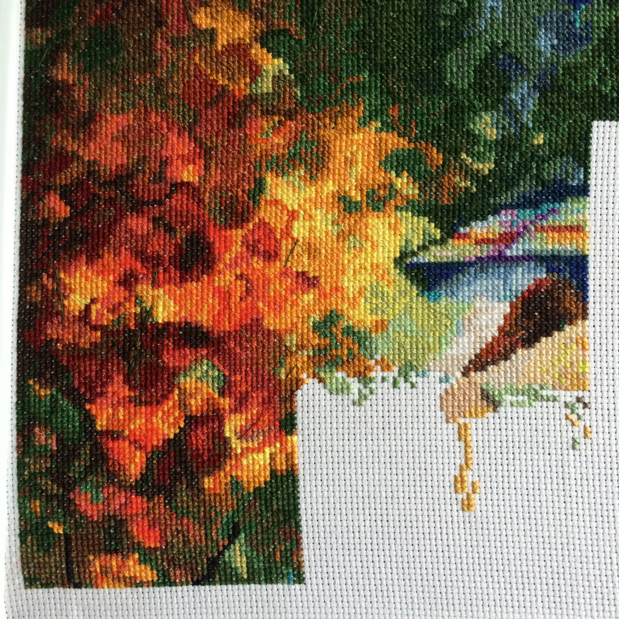 2 мая 2016 Вот мой кусочек где-то 50*50 крестиков. Вышивала около недели. Процесс ооочень нравится. Была пара одиночек, но они совсем не напрягали. Все-таки перепутала похожие символы на схеме, и обнаружила это только после просмотра видеообзора готовой работы на ютубе, где Наталия Рузина рассказывает о мелких несоответствиях схемы и фото набора. Хотя на общее впечатление это никак не влияет. Импрессионизм, все ж таки))))) Selinta, Egelia, ЛюдмилаЕр и 7 других сказали спасибо Поделиться сообщением Ссылка на сообщение