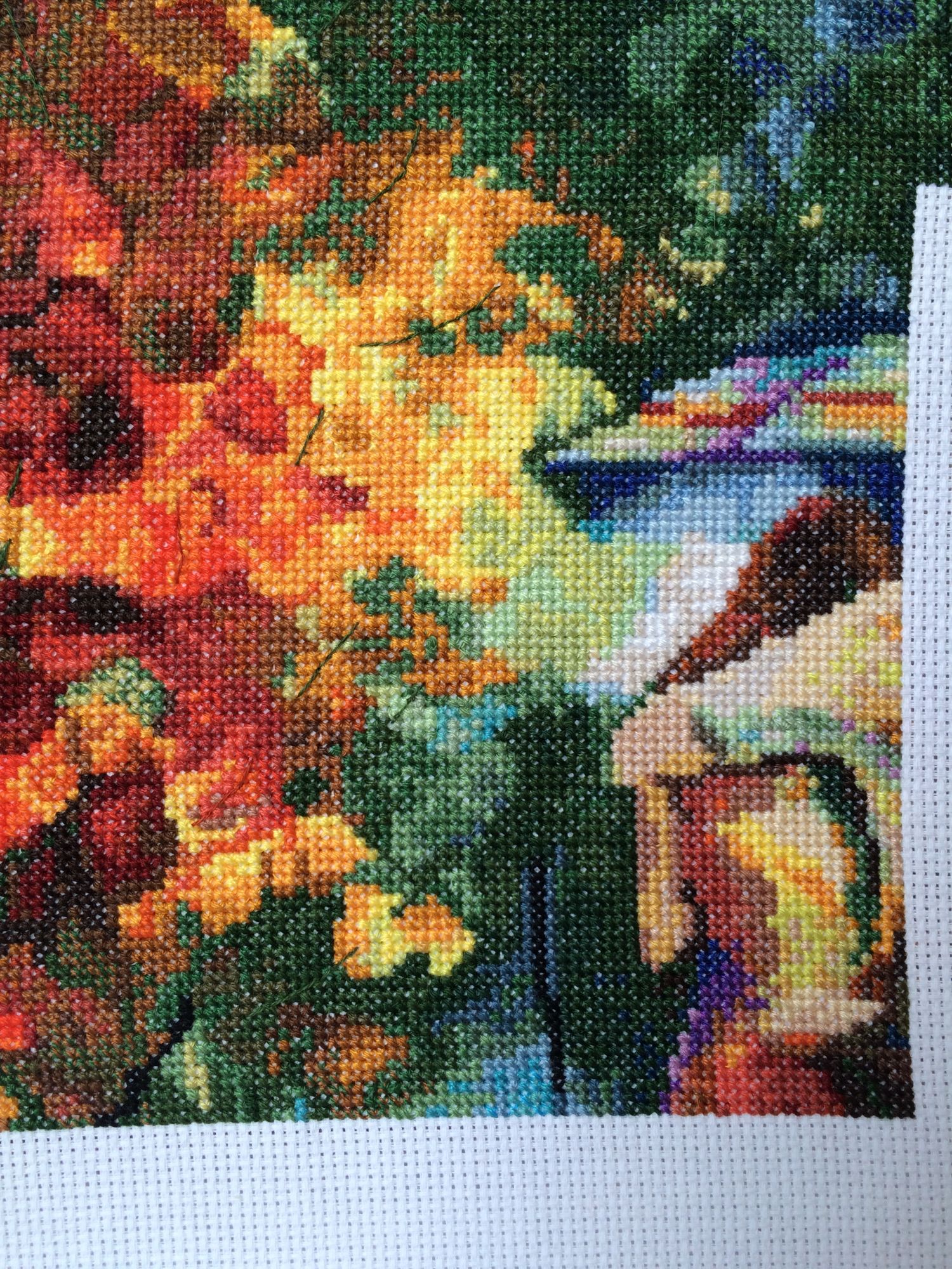 4 мая 2016 18 часов назад, M@kosha сказал: Да, это одна протяжка. Обычно делаю бэк после стирки, но сейчас не удержалась. На схеме он идет по центру клеточек, я решила не заморачиваться, и шить по дырочкам. А как как вы делаете бэкстич? 17 часов назад, espina сказал: У меня без хитростей - стараюсь следовать схеме, но когда уж совсем не удается воткнуть иголку в середину крестика, то пропускаю и делаю "через две". Получается кривовато, но никаких ноу хау в загашнике нет. А так хочется красиво его делать. Из-за десятикилометрового бэка уже несколько лет лежат в закромах несколько наборов. А я наоборот, стараюсь середины крестиков избегать и ориентируюсь больше на дырочки канвы. Когда совсем не получается построить путь по дырочкам, могу и в середину конечно. Длиной шага не заморачиваюсь- чаще всего 1-2, но на 18 могу и на 3 клеточки, больше уже не делаю. После ВТО становится ровной линией. Но все равно не такая ровная как протяжка конечно :)) M@kosha и espina сказали спасибо Поделиться сообщением Ссылка на сообщение