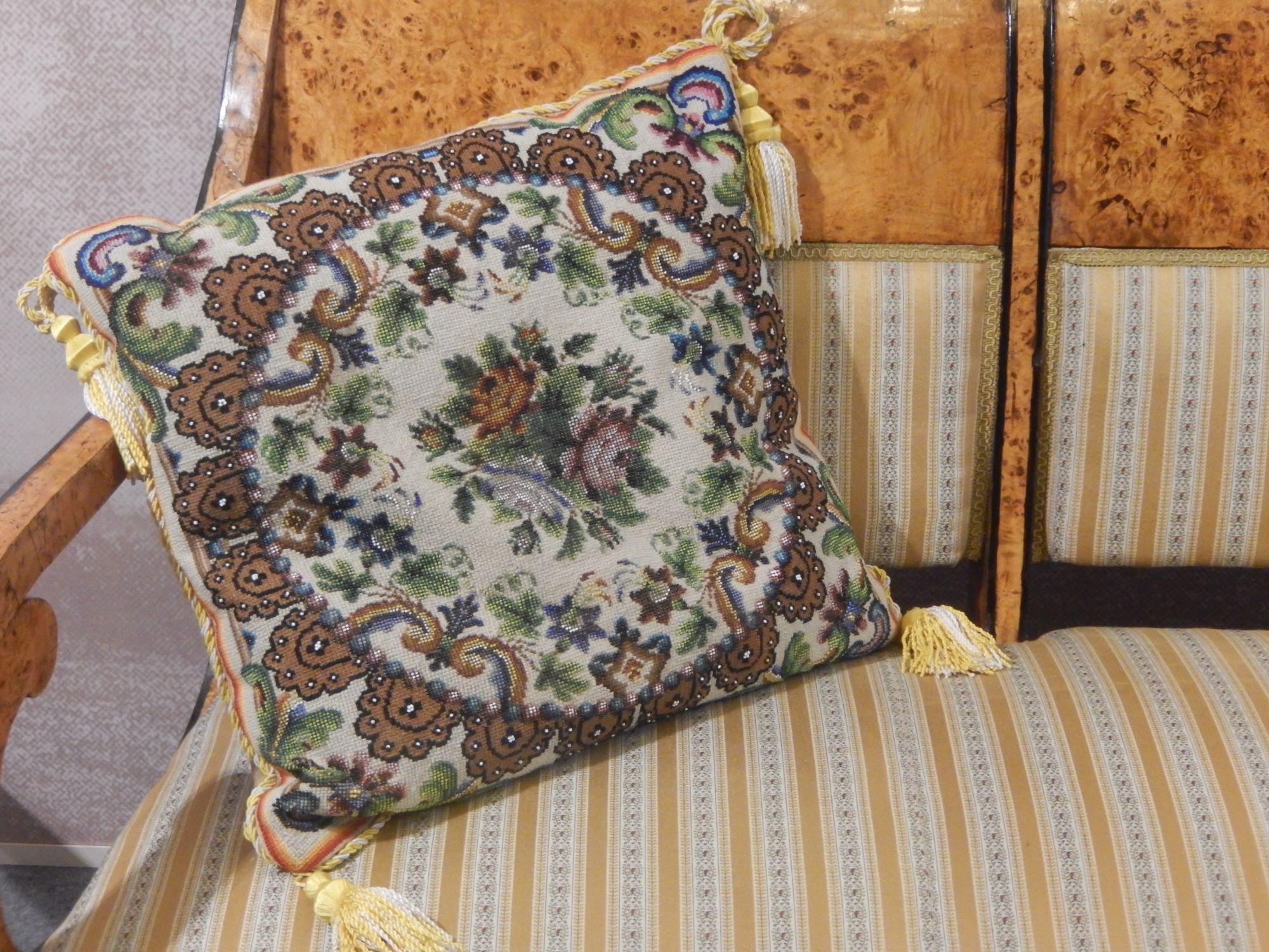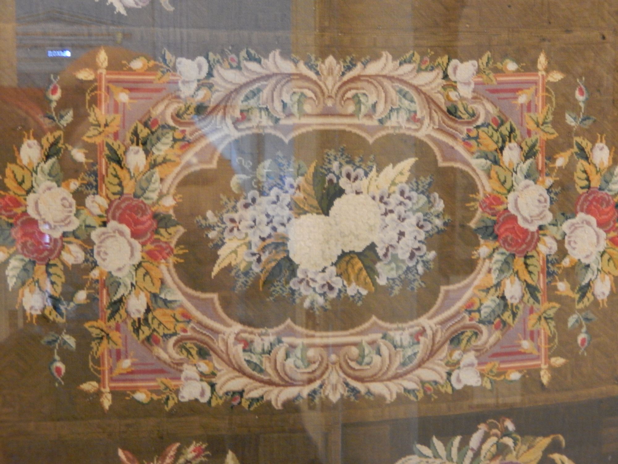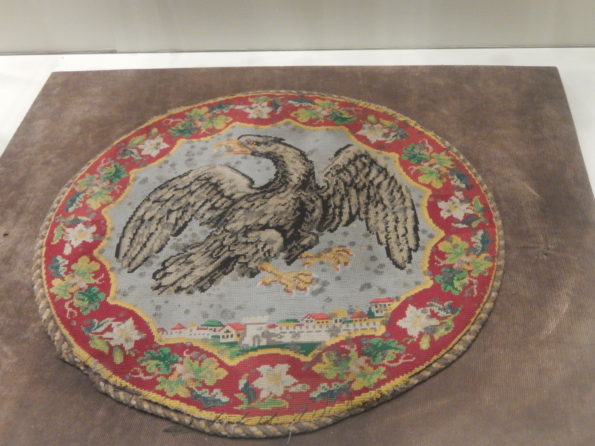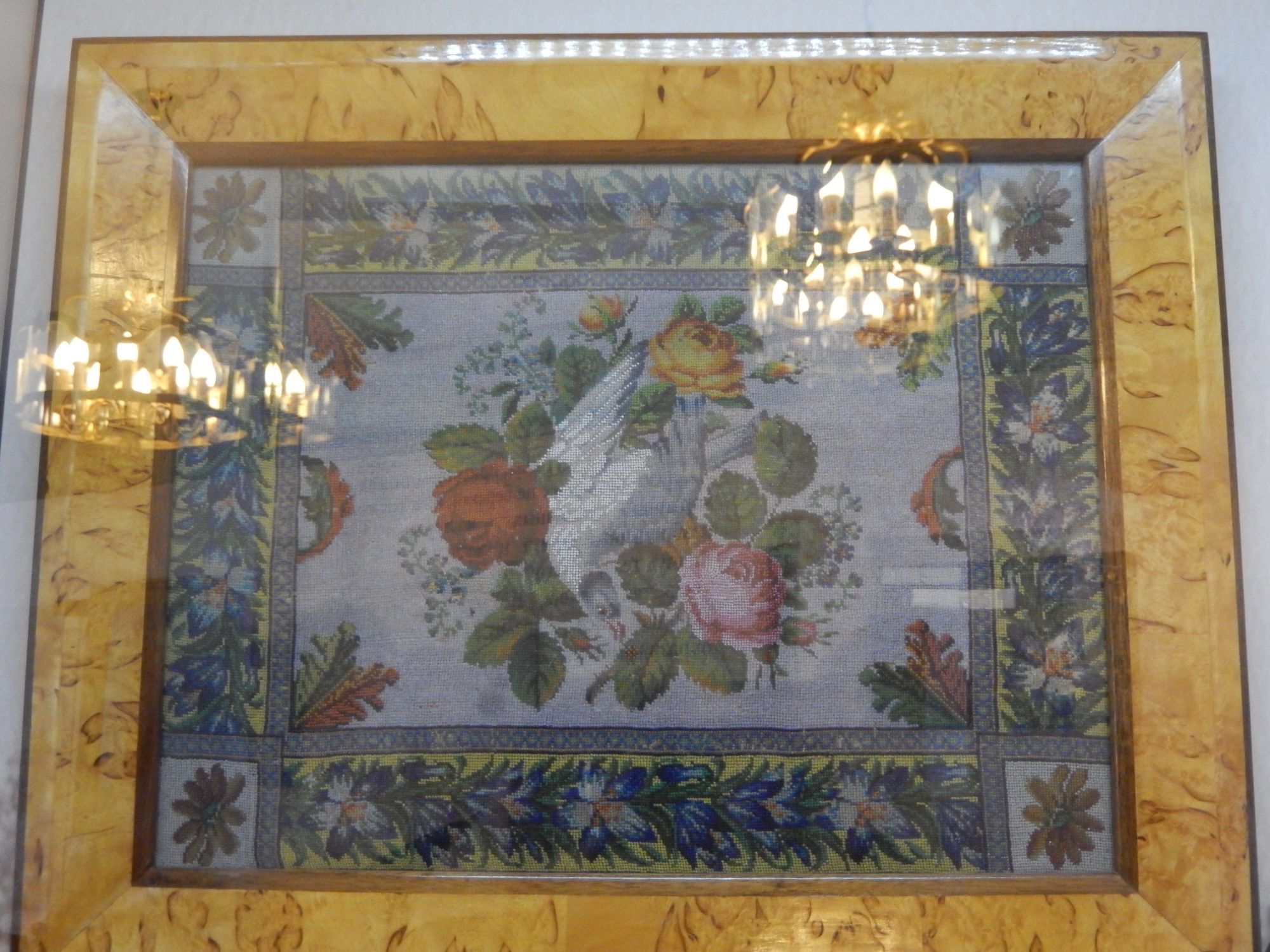 10 августа 2016 А я снова дополню коллегу. Во-первых, я смогла сфотографировать второе кресло, парное к креслу с вышивкой турком))) ну и сам турок поближе Во-вторых, поделюсь фотографиями вышивок покрупнее - на них хорошо видно, как со временем они стерлись: это одна из неоконченных вышивок: каминный экран с цветами: каминный экран с попугаем (нам очень понравился): красивый букет с цветами: Если говорить о труде крепостных мастериц, то помимо ковра в витринах было представлено много численное кружево (салфетки, платки, скатерти): даже сегодня этот двуглавый орел был бы актуален) Еще из вышитого крестиком были несколько кошельков и закладок для книг, полагаю, что из-за частого использования так мало сохранилось до наших дней: А еще там попалось несколько работ, на которых вышивальщицы того времени учились. вот такой образчик с узорами был замечен ан одном из столов для рукоделия; пяльцы с полоской, вышитой шерстью; И самое впечатляющее - Руководство по рукоделию с изображением мотивов и образцами вышивки гладью - нет слов, одни восторги))) Спасибо за внимание))) Наталья_Цветочек, Vit@, ivk_ и 31 других сказали спасибо Поделиться сообщением Ссылка на сообщение