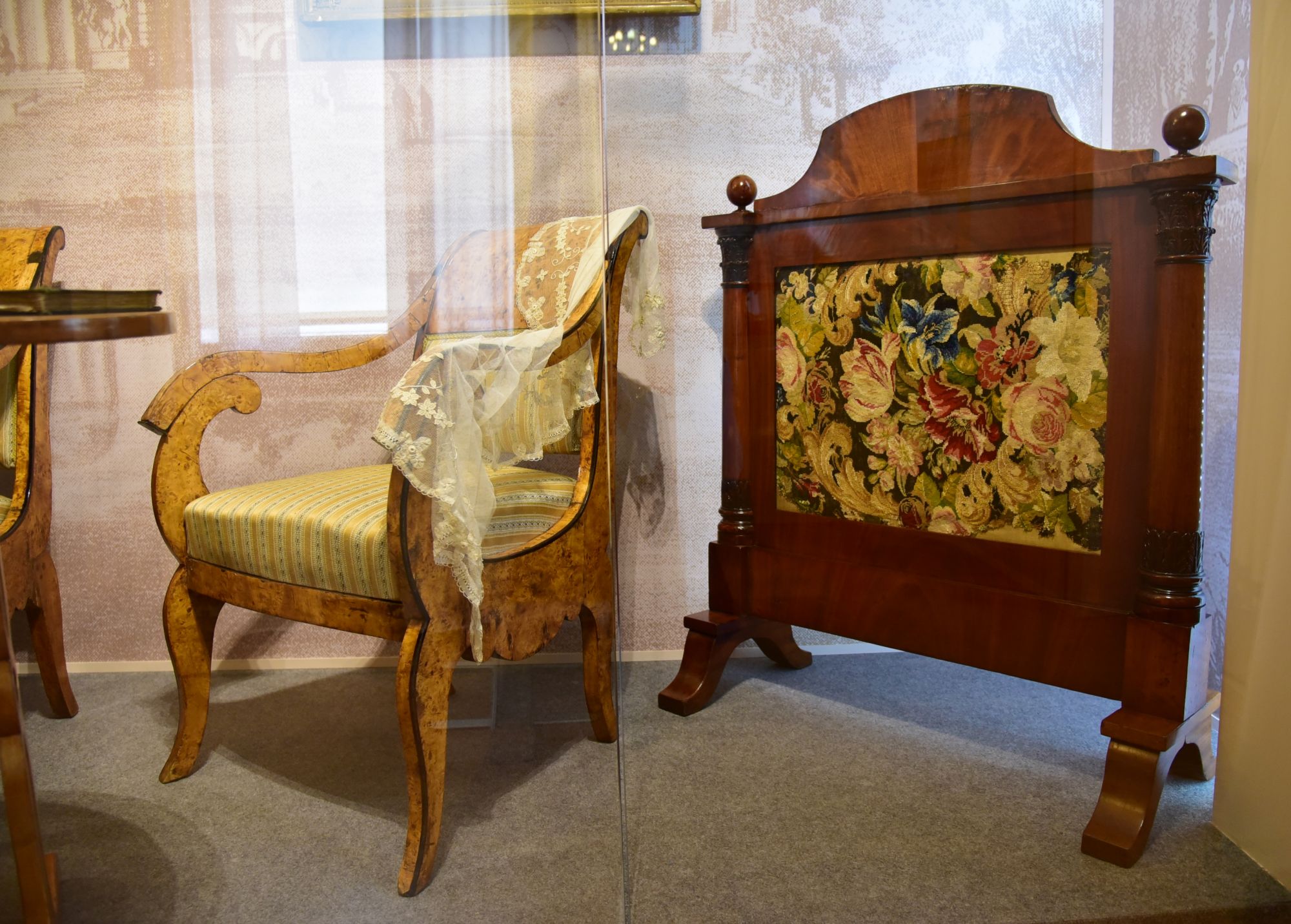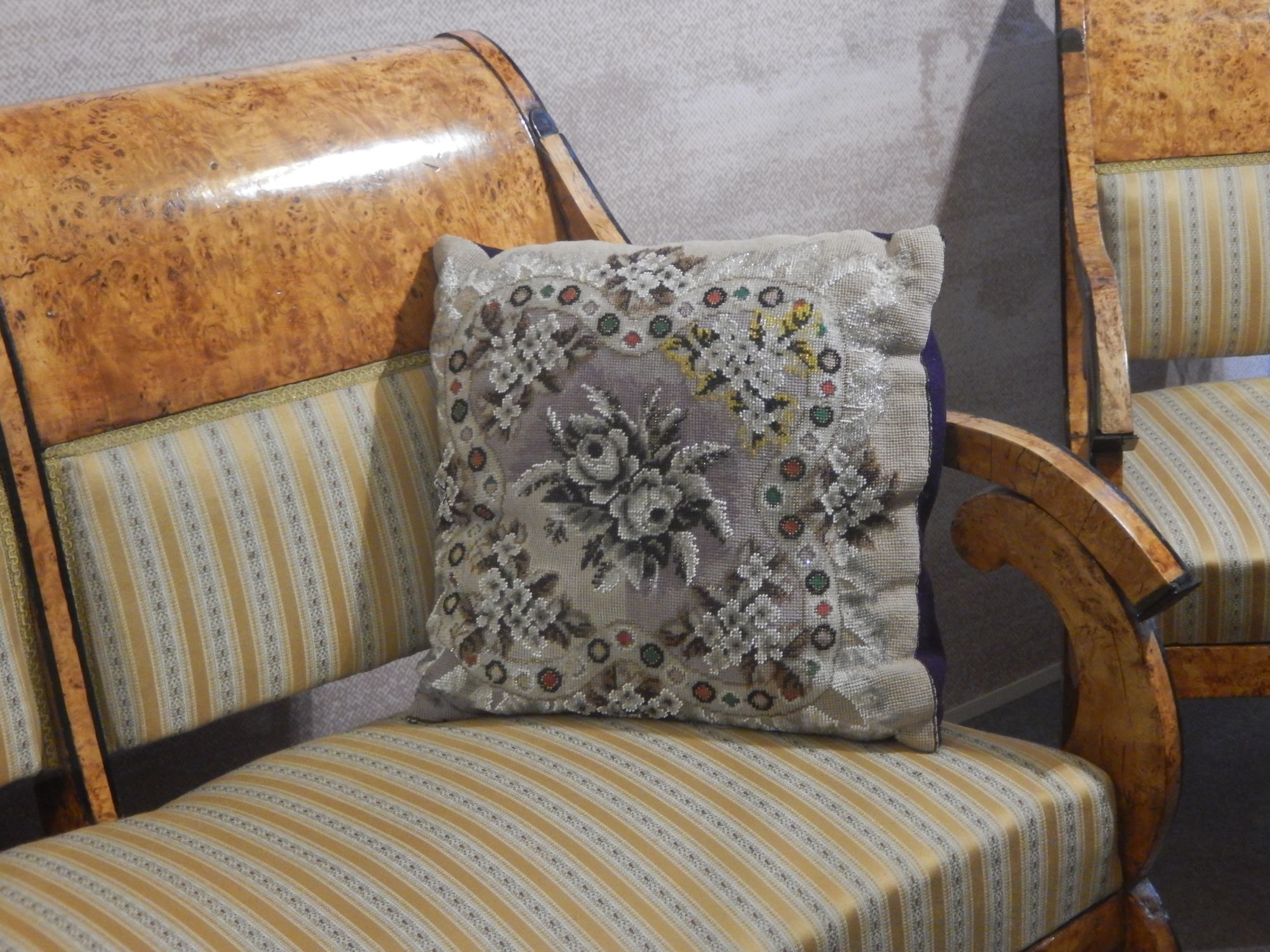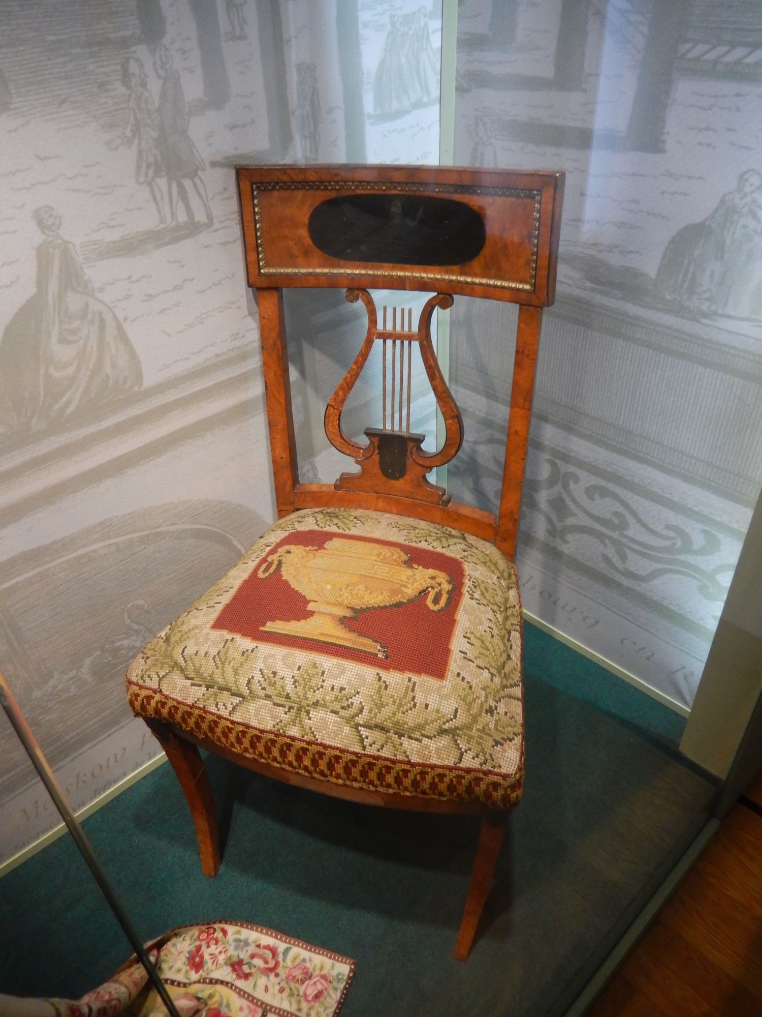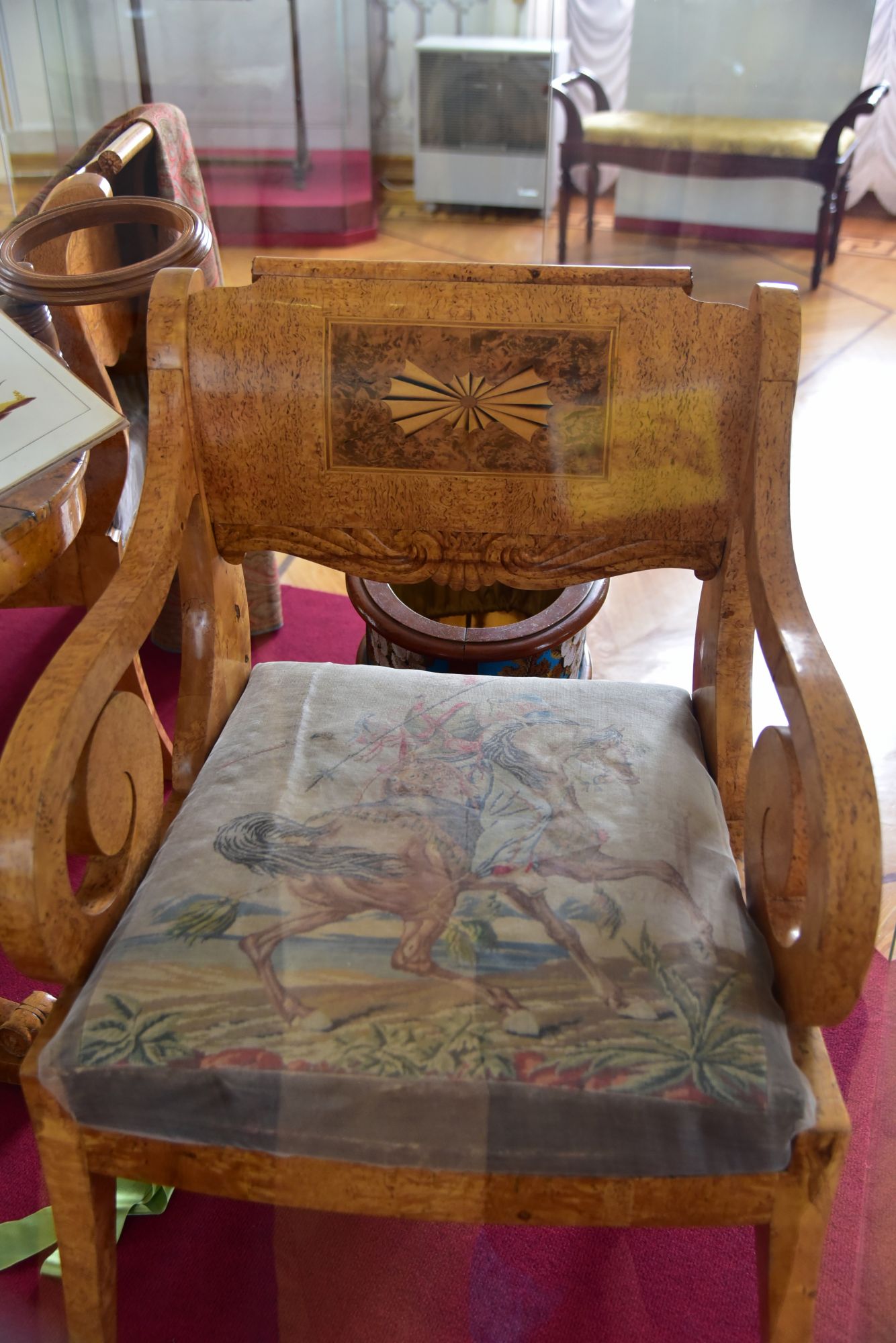 10 августа 2016 А я снова дополню коллегу. Во-первых, я смогла сфотографировать второе кресло, парное к креслу с вышивкой турком))) ну и сам турок поближе Во-вторых, поделюсь фотографиями вышивок покрупнее - на них хорошо видно, как со временем они стерлись: это одна из неоконченных вышивок: каминный экран с цветами: каминный экран с попугаем (нам очень понравился): красивый букет с цветами: Если говорить о труде крепостных мастериц, то помимо ковра в витринах было представлено много численное кружево (салфетки, платки, скатерти): даже сегодня этот двуглавый орел был бы актуален) Еще из вышитого крестиком были несколько кошельков и закладок для книг, полагаю, что из-за частого использования так мало сохранилось до наших дней: А еще там попалось несколько работ, на которых вышивальщицы того времени учились. вот такой образчик с узорами был замечен ан одном из столов для рукоделия; пяльцы с полоской, вышитой шерстью; И самое впечатляющее - Руководство по рукоделию с изображением мотивов и образцами вышивки гладью - нет слов, одни восторги))) Спасибо за внимание))) Наталья_Цветочек, Vit@, ivk_ и 31 других сказали спасибо Поделиться сообщением Ссылка на сообщение