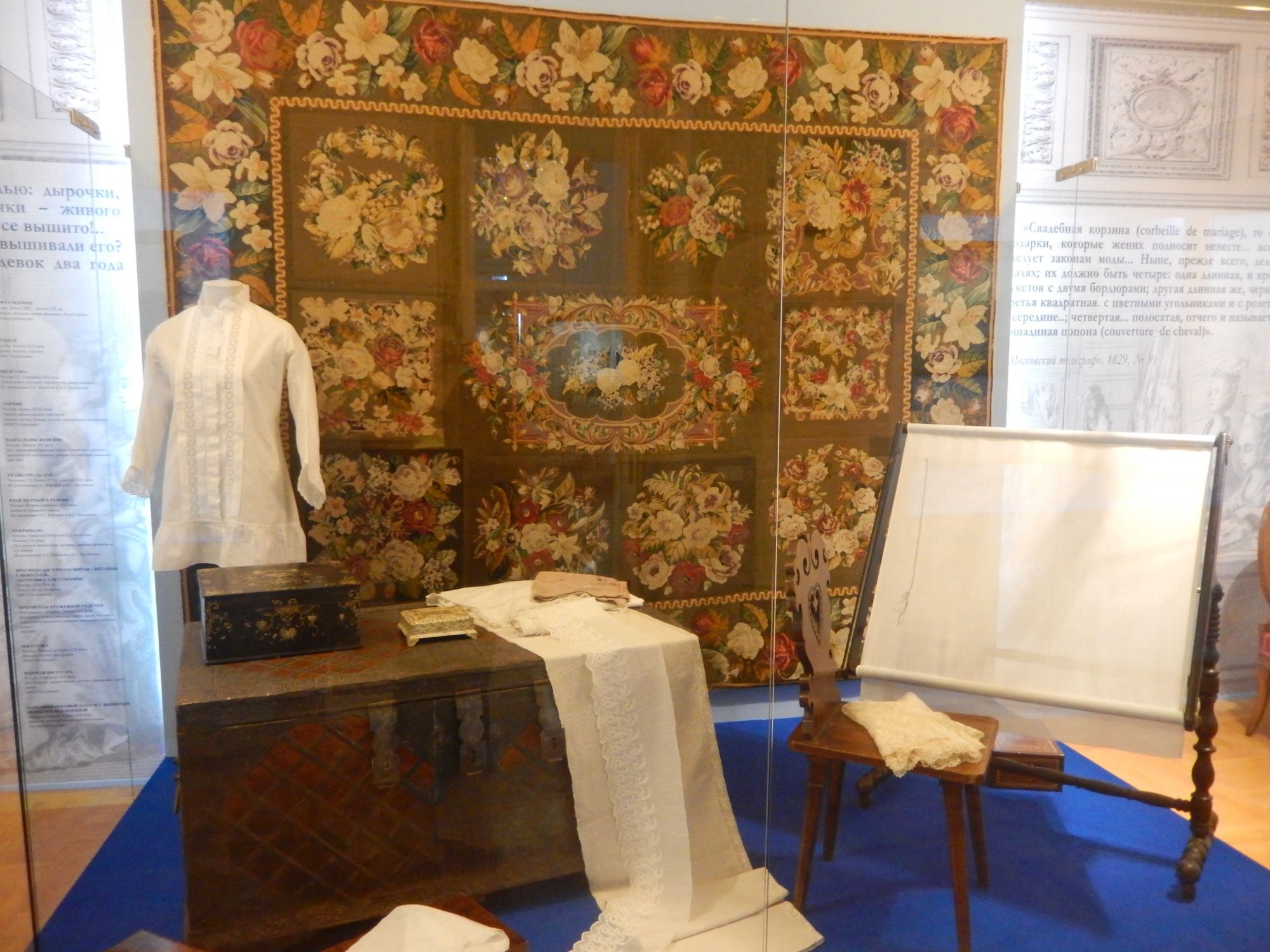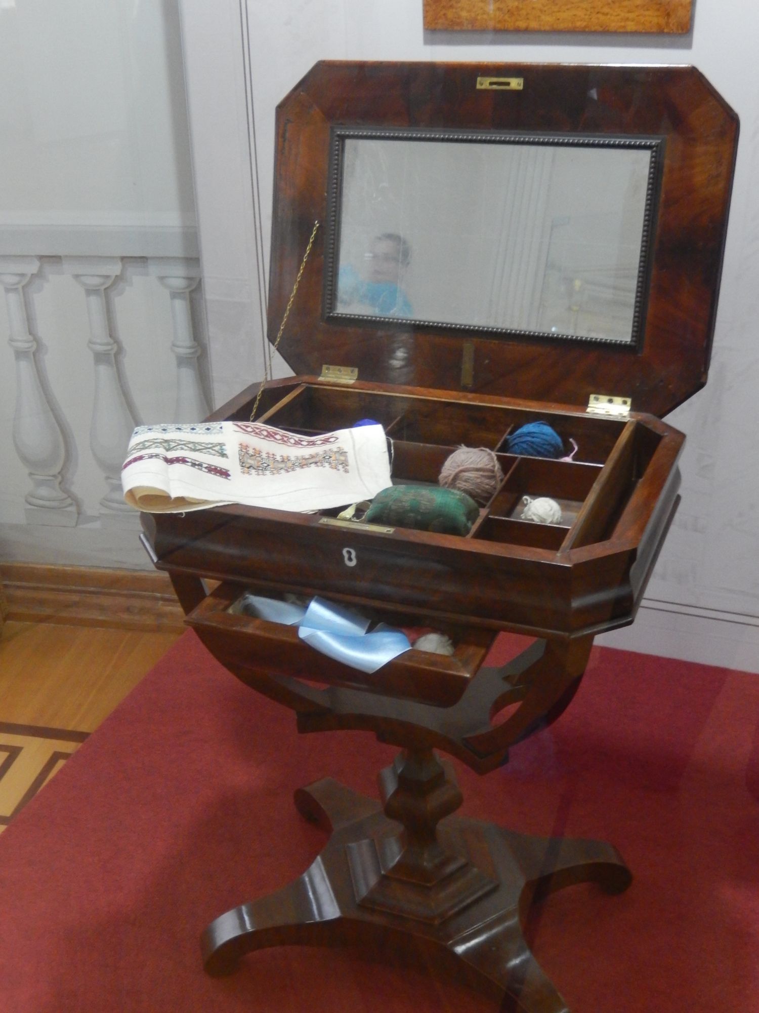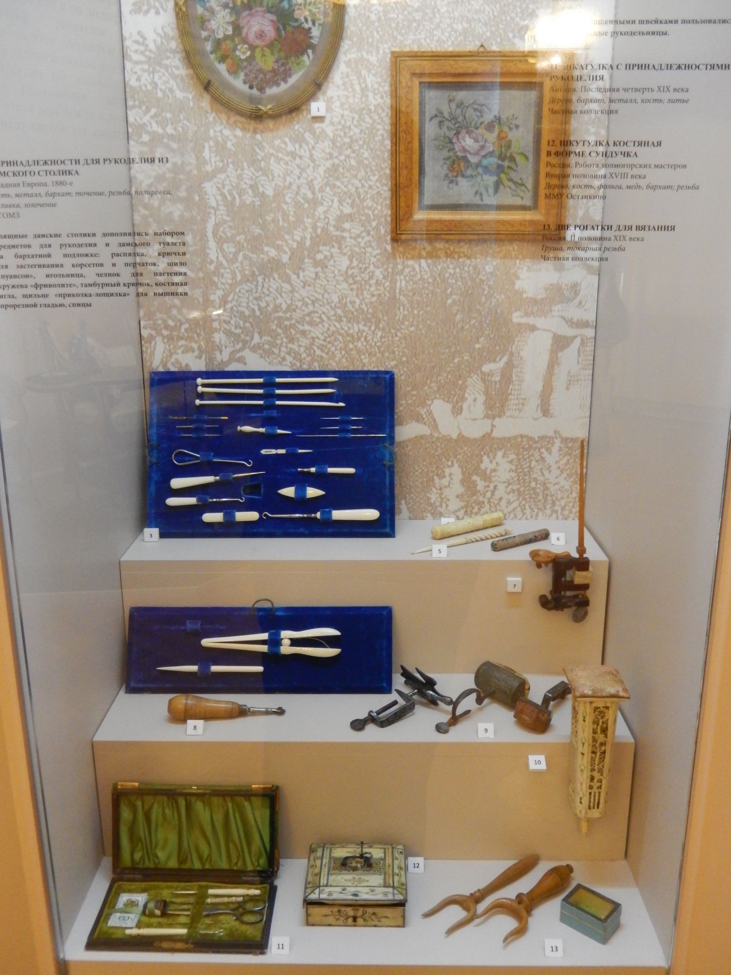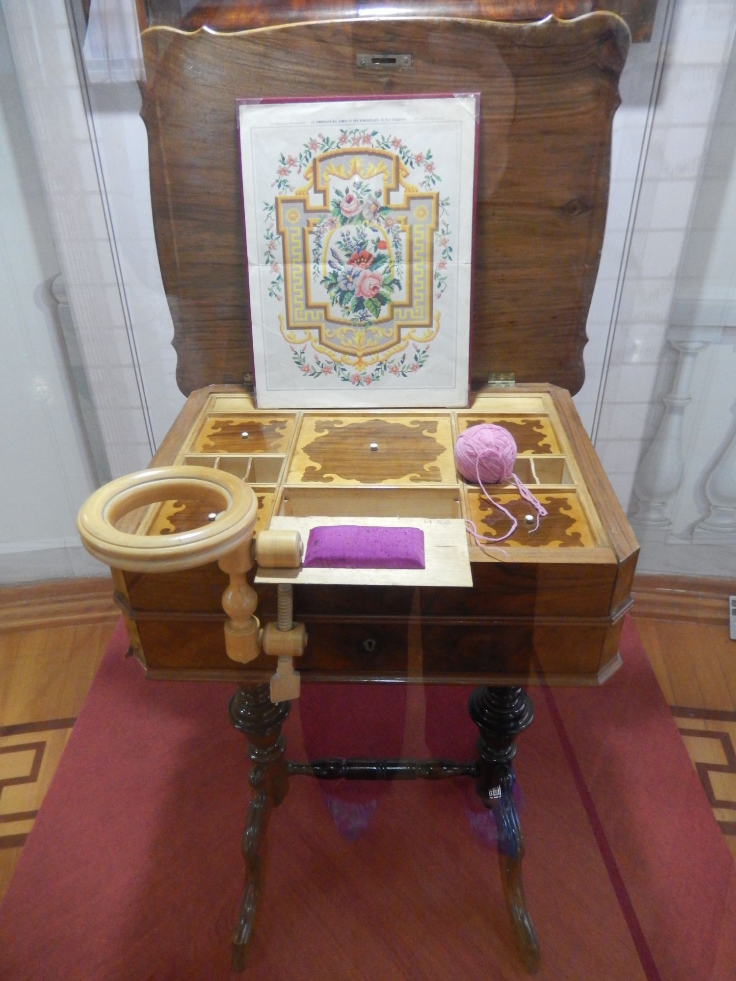 28 июля 2016 Доброго вечера, дорогие мои сообщницы!!! Завтра пятница, почти уже выходной. Почему бы не отправиться на увлекательную экскурсию в позапрошлый век? Я приглашаю вас на выставку "Усадебное рукоделие", проходившую в Люблино, в усадьбе Дурасовых. Выставка была шикарная, но попала я на нее случайно и практически в один из последних дней ее работы. Фоток сделала множество ( заранее прошу прощения за не всегда хорошее их качество - снимать без вспышки и через стекло - то еще удовольствие!!!). Сразу вываливать на вас все фотки будет просто негуманно, поэтому я разбила их на темы. Поговорим сегодня про всякие приспособления для рукоделия. Рассматривать картинки без некоторого чувства зависти не получится, настолько все изящно, разумно и красиво сделано. Итак, начнем. В 19 веке вышивка разных сортов и прочие рукоделия были обычным делом. (Да-да, никто не косился и не крутил пальцем у виска). Редко какая женщина не умела вышивать или шить. Иногда рукоделие могло быть и основным занятием дамы. Приглашаю вас в уютную гостиную. Здесь все устроено согласно вкусу хозяйки (весьма небедной женщины, дворянки), есть место для приема гостей, отдыха и, конечно, для рукоделия. Обратите внимание на замечательный столик затейливо-овальной формы. Такие столики из-за внешнего вида назывались "бобиками". Часто их делали на заказ, и часто такие столики скрывали в себе множество возможностей и потайных ящичков. За ним дама могла читать, отвечать на письма, заниматься рукоделием. Эти столики были мобильны и путешествовали за своей хозяйкой по всему дому. - Этот стол единственный в своем роде. Он украшен деревянной мозаикой в стиле маркетри на рукодельные темы. Впрочем, каждая хозяйка могла украсить столь нужный в хозяйстве предмет по своему вкусу : росписью как здесь - или своей же вышитой картиной как здесь ( это бисер!!! очень мелкий!!!!! ) или здесь , ,или оставить все как есть - тоже по-моему, неплохо. Ну а теперь заглянем внутрь. Вот и вот Как все разумно устроено, все сразу под рукой. Правда, 1001-ый наборчик положить некуда...., но у каждого свои недостатки. Крышка могла подниматься, могла состоять из нескольких частей и сдвигаться в разные стороны как в этом варианте . В эти ящички можно было быстро и без потерь убрать незаконченное рукоделие в случае прихода гостей, а , может, и любовную записку спрятать - найди ее потом.... А еще к таким столикам можно было приобрести всяческие аксессуары: инструменты - вот они, на синих бархатных подушечках выложены, игольницы (пока название на витрине не прочитала, не поняла что это за штуковины лежат) - и это всего лишь игольница!!!! Ну а этот столик - мой однозначный фаворит! Мало того, что сделан из ценного дерева, красивый, так еще и ящичков сколько!!!! Дайте два!!!!! А вот моя прелес-с-стьь поближе: и еще ближе : . - одно сплошное АХ! Конечно, позволить себе такое могли люди совсем небедные. В основном, на выставке были предметы, связанные с дворянским бытом. В арсенале крестьянских девушек были в основном, ткацкие станки, природные материалы, сундуки и пяльцы. Да и создавали они вещи утилитарные - одежду, белье... Но об этом речь пойдет в другой раз, если захотите. Засим разрешите раскланяться, время позднее. Доброй всем ночи! titania, mrn1970, белая-мягкая-пушистая и 34 других сказали спасибо Поделиться сообщением Ссылка на сообщение