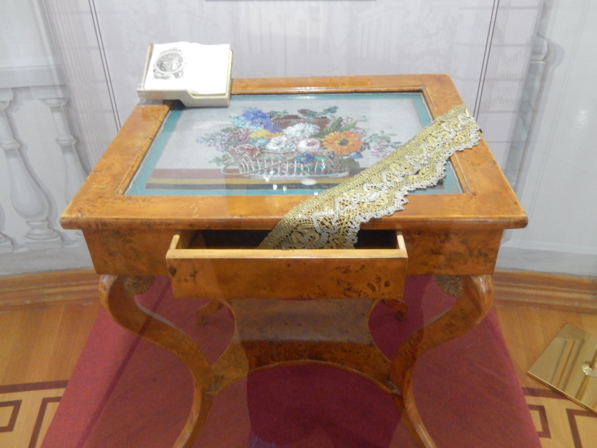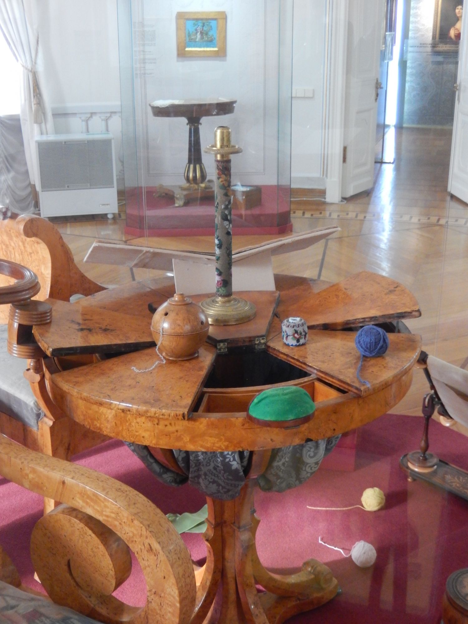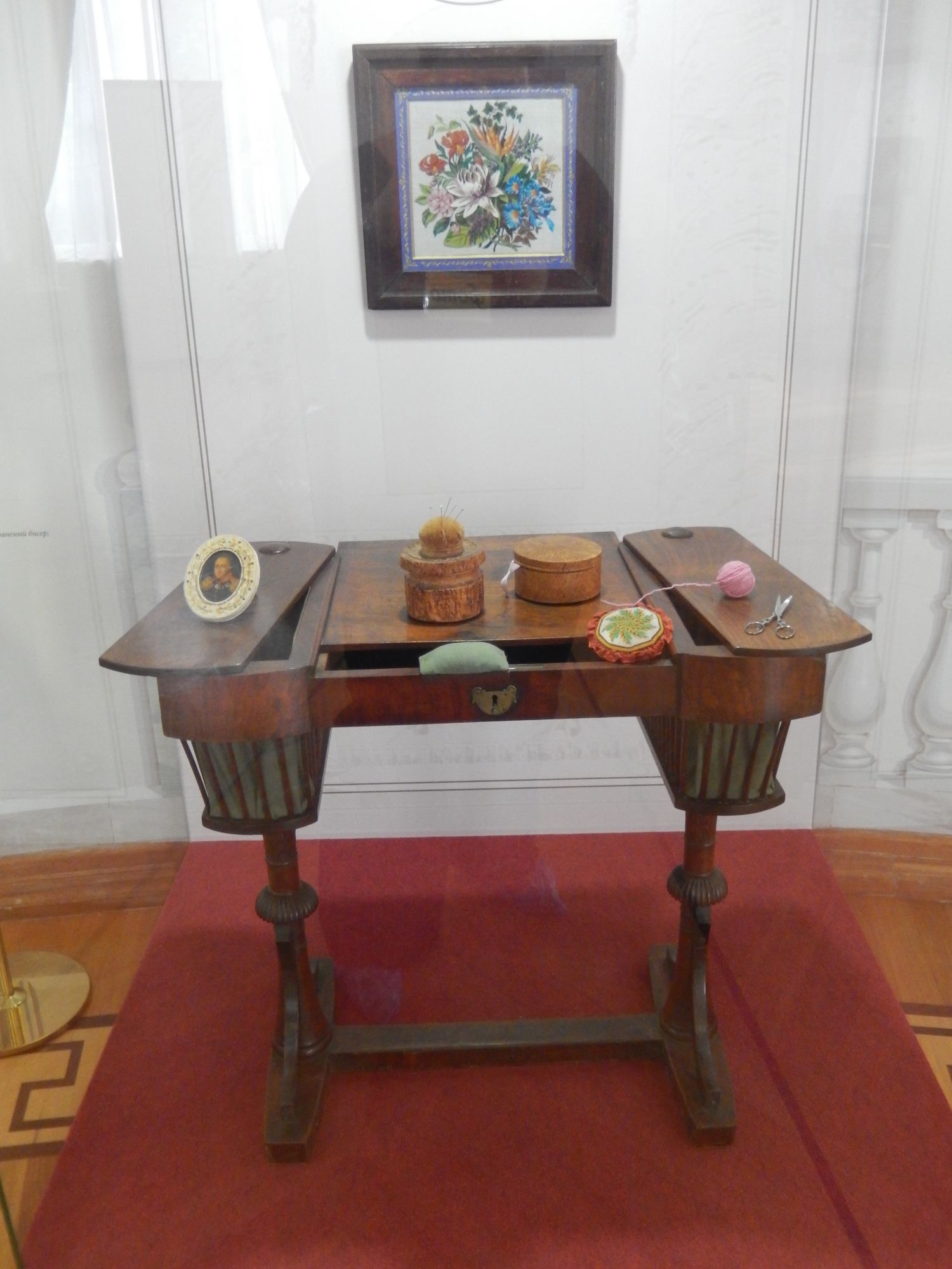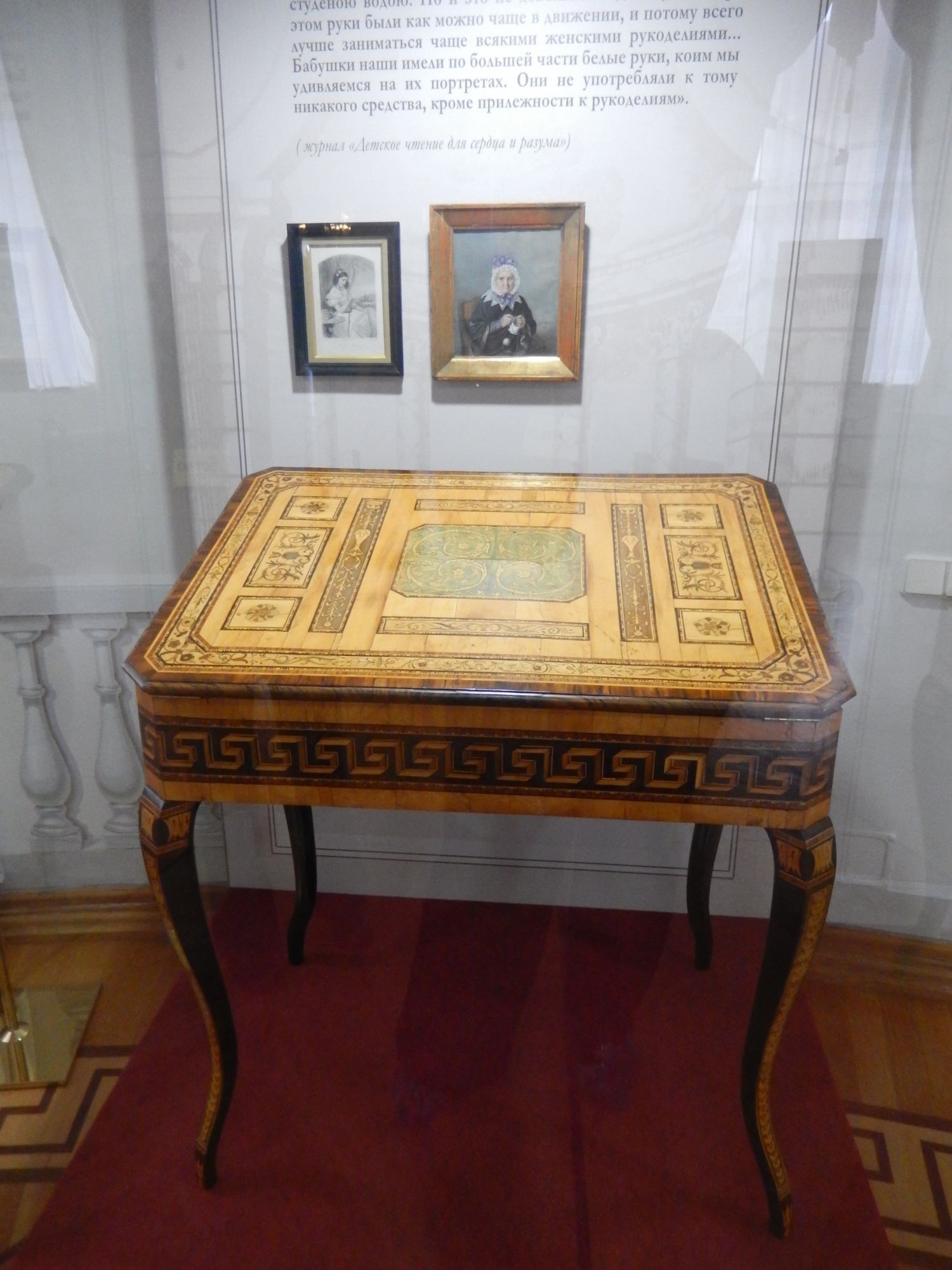 28 июля 2016 Доброго вечера, дорогие мои сообщницы!!! Завтра пятница, почти уже выходной. Почему бы не отправиться на увлекательную экскурсию в позапрошлый век? Я приглашаю вас на выставку "Усадебное рукоделие", проходившую в Люблино, в усадьбе Дурасовых. Выставка была шикарная, но попала я на нее случайно и практически в один из последних дней ее работы. Фоток сделала множество ( заранее прошу прощения за не всегда хорошее их качество - снимать без вспышки и через стекло - то еще удовольствие!!!). Сразу вываливать на вас все фотки будет просто негуманно, поэтому я разбила их на темы. Поговорим сегодня про всякие приспособления для рукоделия. Рассматривать картинки без некоторого чувства зависти не получится, настолько все изящно, разумно и красиво сделано. Итак, начнем. В 19 веке вышивка разных сортов и прочие рукоделия были обычным делом. (Да-да, никто не косился и не крутил пальцем у виска). Редко какая женщина не умела вышивать или шить. Иногда рукоделие могло быть и основным занятием дамы. Приглашаю вас в уютную гостиную. Здесь все устроено согласно вкусу хозяйки (весьма небедной женщины, дворянки), есть место для приема гостей, отдыха и, конечно, для рукоделия. Обратите внимание на замечательный столик затейливо-овальной формы. Такие столики из-за внешнего вида назывались "бобиками". Часто их делали на заказ, и часто такие столики скрывали в себе множество возможностей и потайных ящичков. За ним дама могла читать, отвечать на письма, заниматься рукоделием. Эти столики были мобильны и путешествовали за своей хозяйкой по всему дому. - Этот стол единственный в своем роде. Он украшен деревянной мозаикой в стиле маркетри на рукодельные темы. Впрочем, каждая хозяйка могла украсить столь нужный в хозяйстве предмет по своему вкусу : росписью как здесь - или своей же вышитой картиной как здесь ( это бисер!!! очень мелкий!!!!! ) или здесь , ,или оставить все как есть - тоже по-моему, неплохо. Ну а теперь заглянем внутрь. Вот и вот Как все разумно устроено, все сразу под рукой. Правда, 1001-ый наборчик положить некуда...., но у каждого свои недостатки. Крышка могла подниматься, могла состоять из нескольких частей и сдвигаться в разные стороны как в этом варианте . В эти ящички можно было быстро и без потерь убрать незаконченное рукоделие в случае прихода гостей, а , может, и любовную записку спрятать - найди ее потом.... А еще к таким столикам можно было приобрести всяческие аксессуары: инструменты - вот они, на синих бархатных подушечках выложены, игольницы (пока название на витрине не прочитала, не поняла что это за штуковины лежат) - и это всего лишь игольница!!!! Ну а этот столик - мой однозначный фаворит! Мало того, что сделан из ценного дерева, красивый, так еще и ящичков сколько!!!! Дайте два!!!!! А вот моя прелес-с-стьь поближе: и еще ближе : . - одно сплошное АХ! Конечно, позволить себе такое могли люди совсем небедные. В основном, на выставке были предметы, связанные с дворянским бытом. В арсенале крестьянских девушек были в основном, ткацкие станки, природные материалы, сундуки и пяльцы. Да и создавали они вещи утилитарные - одежду, белье... Но об этом речь пойдет в другой раз, если захотите. Засим разрешите раскланяться, время позднее. Доброй всем ночи! titania, mrn1970, белая-мягкая-пушистая и 34 других сказали спасибо Поделиться сообщением Ссылка на сообщение