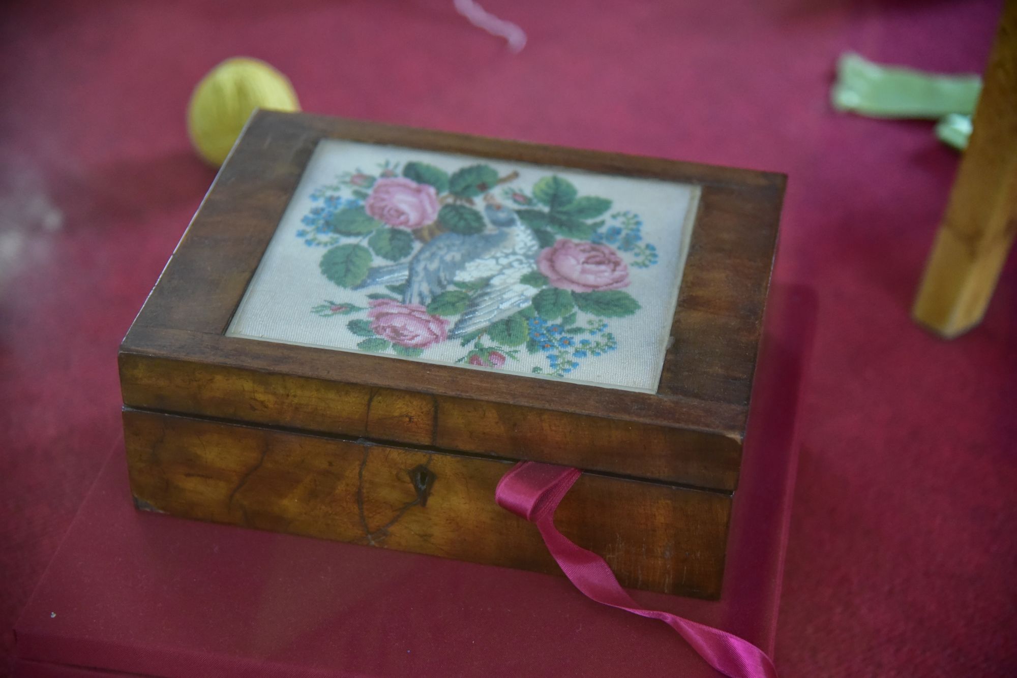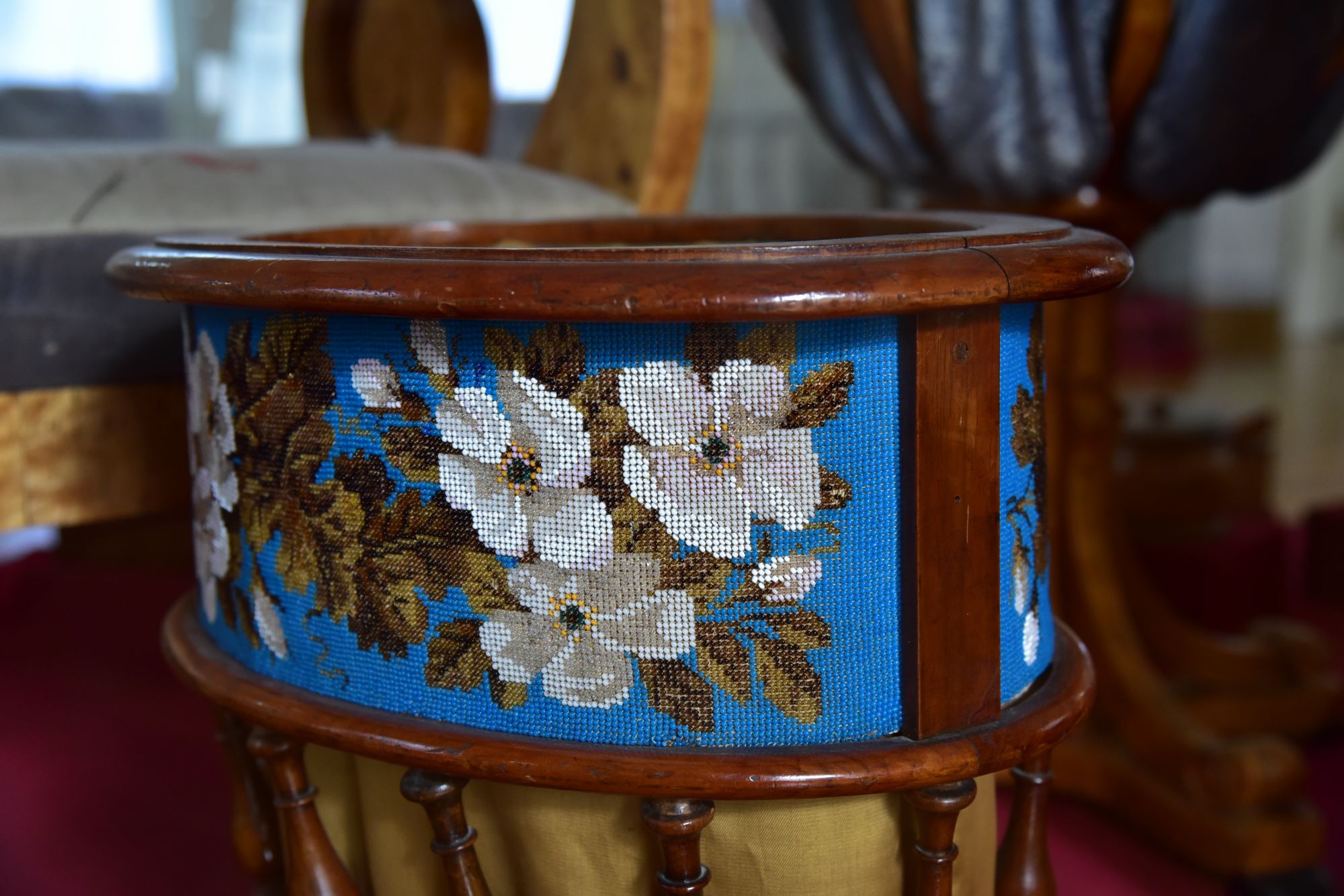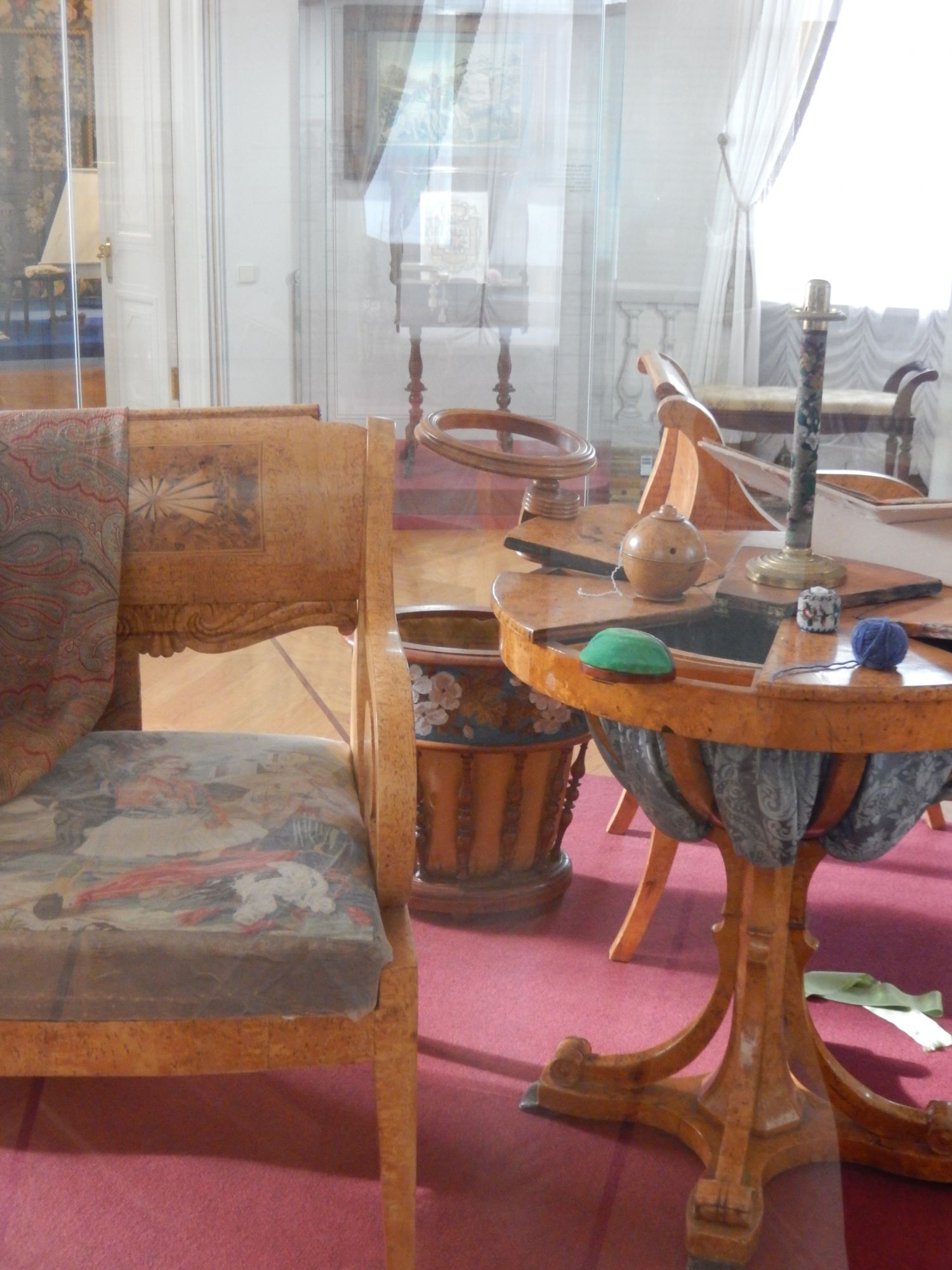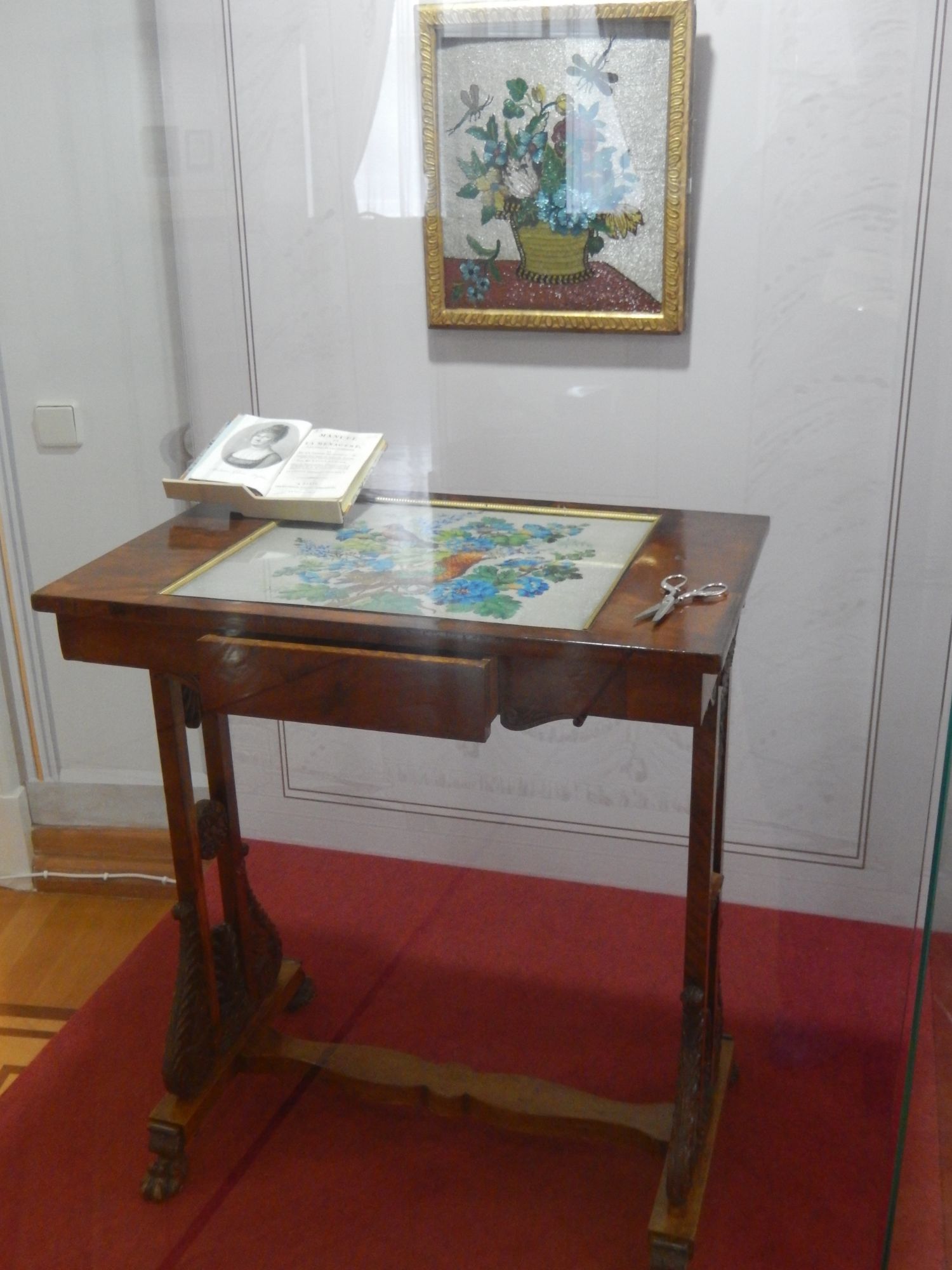 28 июля 2016 Доброго вечера, дорогие мои сообщницы!!! Завтра пятница, почти уже выходной. Почему бы не отправиться на увлекательную экскурсию в позапрошлый век? Я приглашаю вас на выставку "Усадебное рукоделие", проходившую в Люблино, в усадьбе Дурасовых. Выставка была шикарная, но попала я на нее случайно и практически в один из последних дней ее работы. Фоток сделала множество ( заранее прошу прощения за не всегда хорошее их качество - снимать без вспышки и через стекло - то еще удовольствие!!!). Сразу вываливать на вас все фотки будет просто негуманно, поэтому я разбила их на темы. Поговорим сегодня про всякие приспособления для рукоделия. Рассматривать картинки без некоторого чувства зависти не получится, настолько все изящно, разумно и красиво сделано. Итак, начнем. В 19 веке вышивка разных сортов и прочие рукоделия были обычным делом. (Да-да, никто не косился и не крутил пальцем у виска). Редко какая женщина не умела вышивать или шить. Иногда рукоделие могло быть и основным занятием дамы. Приглашаю вас в уютную гостиную. Здесь все устроено согласно вкусу хозяйки (весьма небедной женщины, дворянки), есть место для приема гостей, отдыха и, конечно, для рукоделия. Обратите внимание на замечательный столик затейливо-овальной формы. Такие столики из-за внешнего вида назывались "бобиками". Часто их делали на заказ, и часто такие столики скрывали в себе множество возможностей и потайных ящичков. За ним дама могла читать, отвечать на письма, заниматься рукоделием. Эти столики были мобильны и путешествовали за своей хозяйкой по всему дому. - Этот стол единственный в своем роде. Он украшен деревянной мозаикой в стиле маркетри на рукодельные темы. Впрочем, каждая хозяйка могла украсить столь нужный в хозяйстве предмет по своему вкусу : росписью как здесь - или своей же вышитой картиной как здесь ( это бисер!!! очень мелкий!!!!! ) или здесь , ,или оставить все как есть - тоже по-моему, неплохо. Ну а теперь заглянем внутрь. Вот и вот Как все разумно устроено, все сразу под рукой. Правда, 1001-ый наборчик положить некуда...., но у каждого свои недостатки. Крышка могла подниматься, могла состоять из нескольких частей и сдвигаться в разные стороны как в этом варианте . В эти ящички можно было быстро и без потерь убрать незаконченное рукоделие в случае прихода гостей, а , может, и любовную записку спрятать - найди ее потом.... А еще к таким столикам можно было приобрести всяческие аксессуары: инструменты - вот они, на синих бархатных подушечках выложены, игольницы (пока название на витрине не прочитала, не поняла что это за штуковины лежат) - и это всего лишь игольница!!!! Ну а этот столик - мой однозначный фаворит! Мало того, что сделан из ценного дерева, красивый, так еще и ящичков сколько!!!! Дайте два!!!!! А вот моя прелес-с-стьь поближе: и еще ближе : . - одно сплошное АХ! Конечно, позволить себе такое могли люди совсем небедные. В основном, на выставке были предметы, связанные с дворянским бытом. В арсенале крестьянских девушек были в основном, ткацкие станки, природные материалы, сундуки и пяльцы. Да и создавали они вещи утилитарные - одежду, белье... Но об этом речь пойдет в другой раз, если захотите. Засим разрешите раскланяться, время позднее. Доброй всем ночи! titania, mrn1970, белая-мягкая-пушистая и 34 других сказали спасибо Поделиться сообщением Ссылка на сообщение