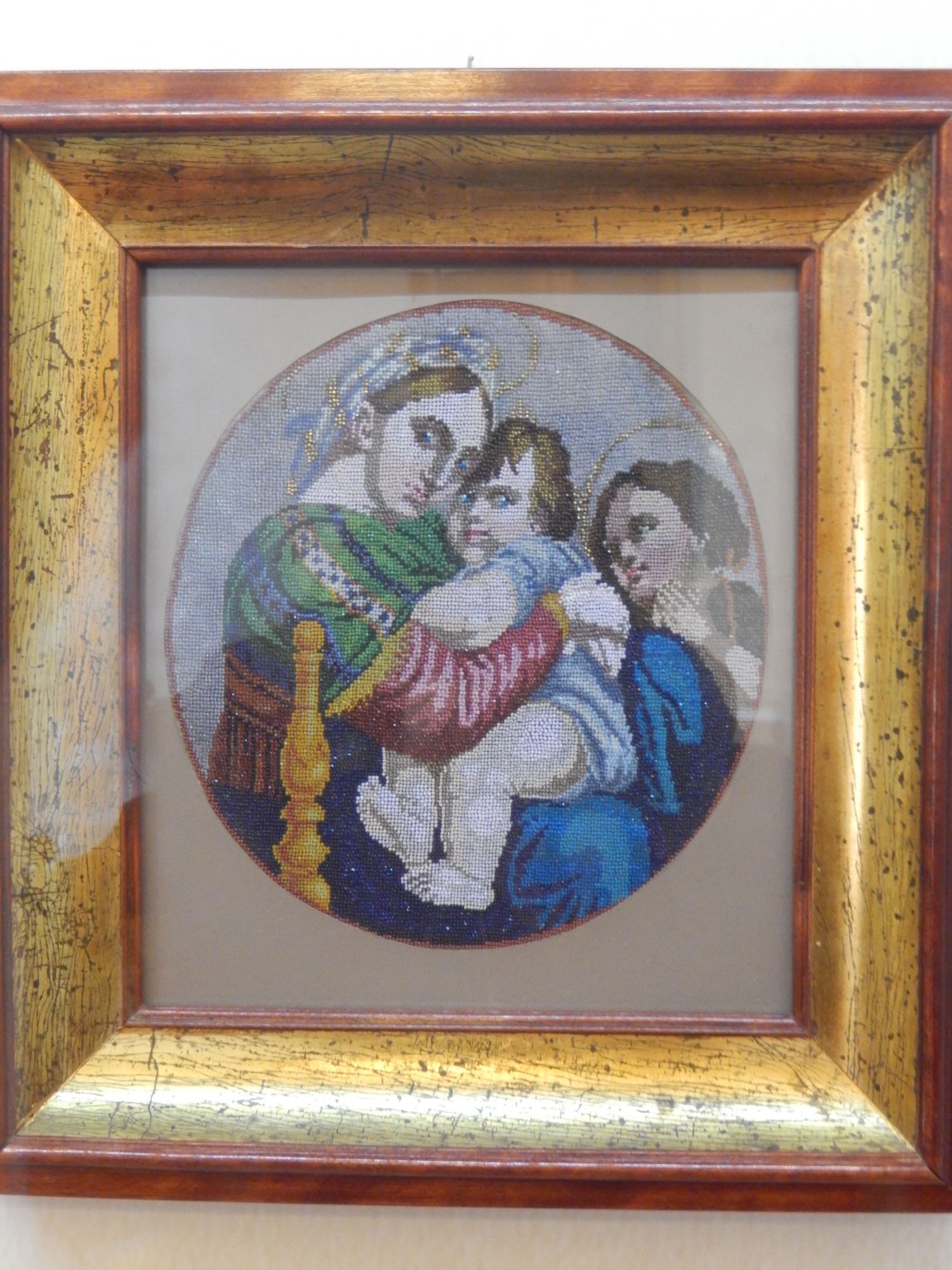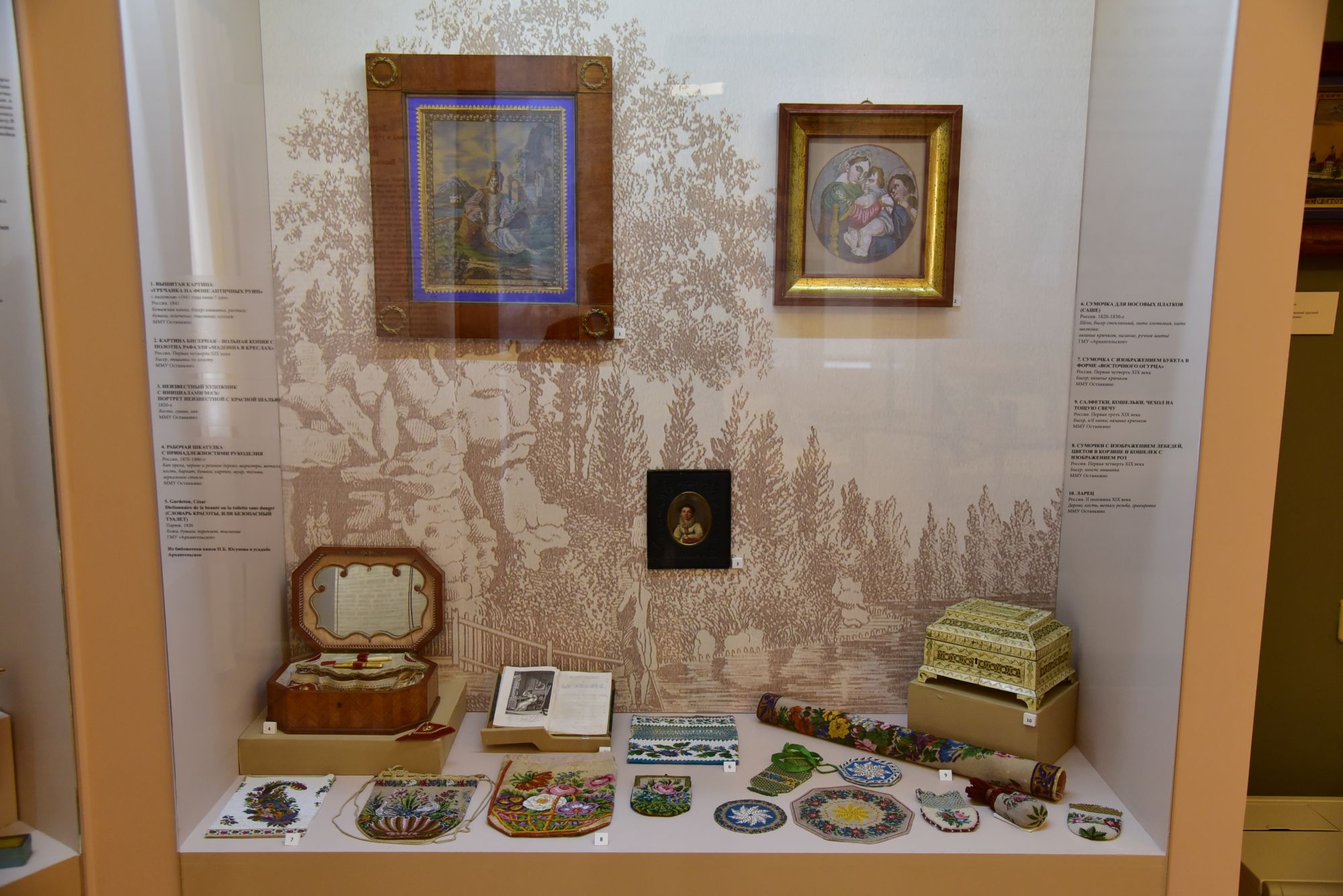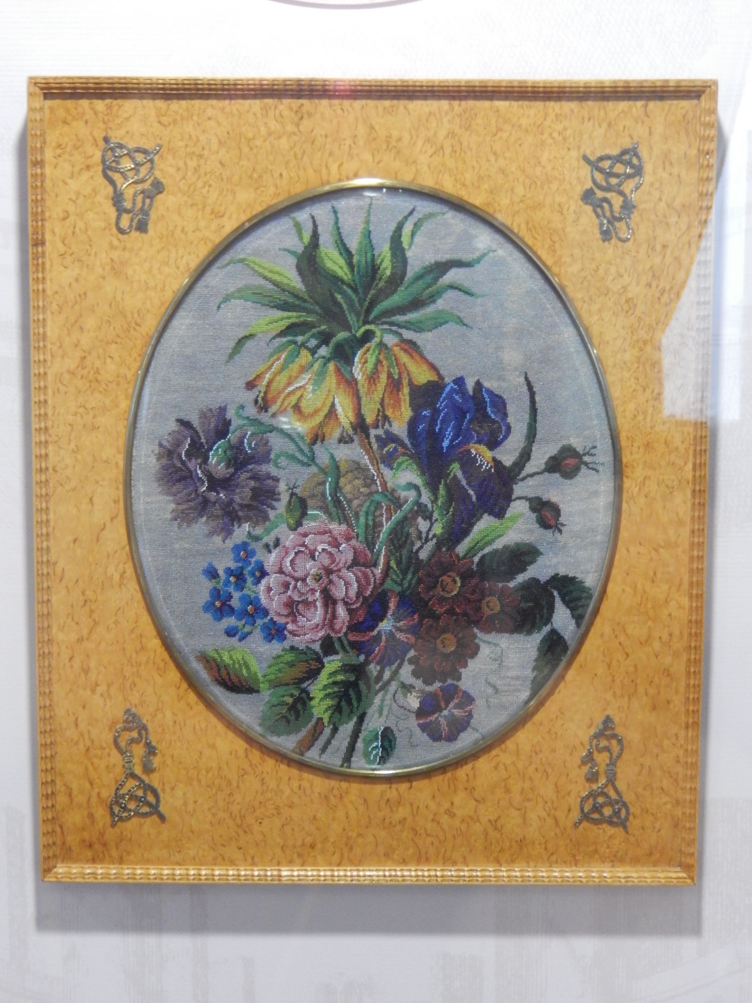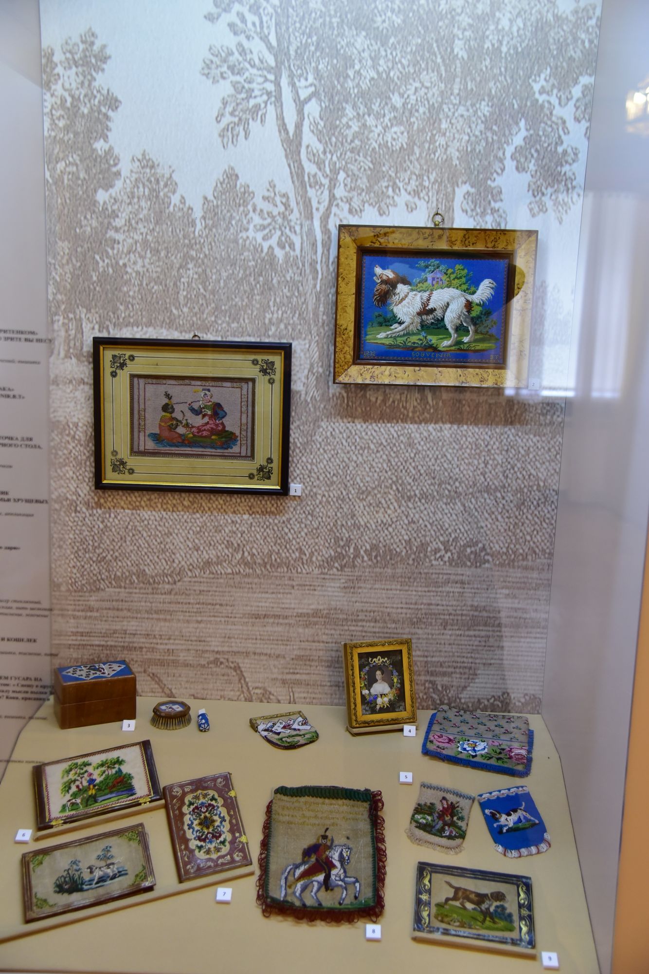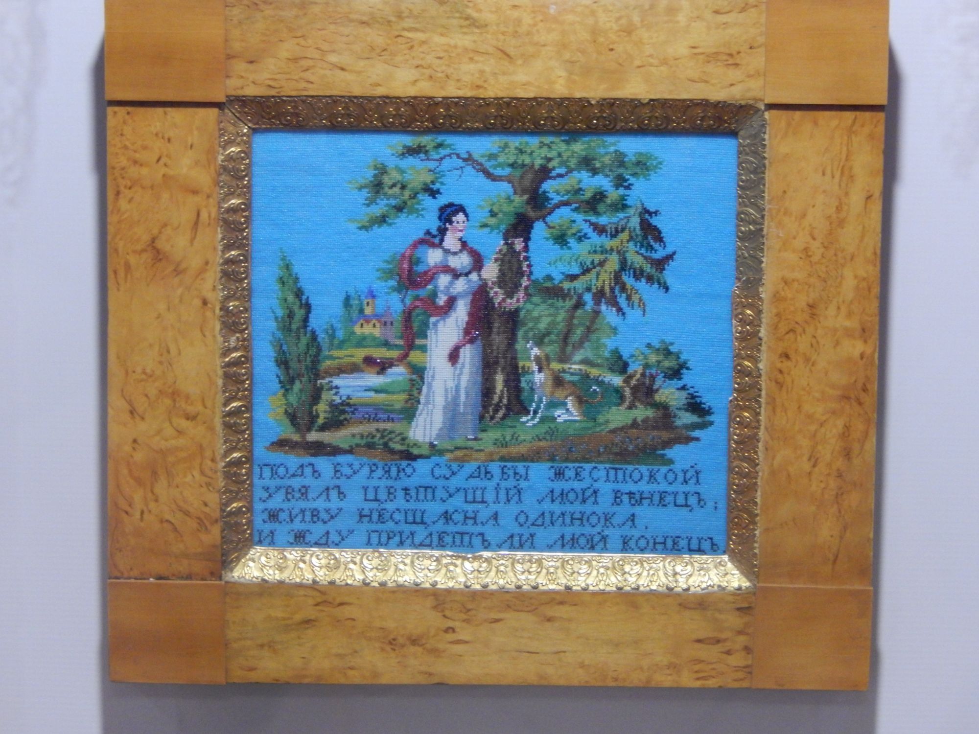 23 августа 2016 Доброго всем вечера. Предлагаю вашему вниманию часть № 3 отчета о посещении выставки "Усадебное рукоделие". Сегодня на очереди картины, вышитые бисером. Этот вид рукоделия - чисто дворянская забава, по крайней мере, в России. Вышивкой бисером увлекались не только дамы, но и мужчины. В повести Гоголя "Мертвые Души" Чичиков рассказывал Манилову о губернаторе :"И какой искусник! я даже никак не мог предполагать этого. Как хорошо вышивает разные домашние узоры! он мне показывал своей работы кошелек: редкая дама может так искусно вышить." Конечно, дамы часто пользовались готовыми схемами для своих работ, но это никак не отменяет их художественной ценности. Но не буду много разглагольствовать, а просто предлагаю вам полюбоваться многообразием сюжетов и красок, ведь бисерные картины, в отличие от выполненных шерстью, не выцветают... Классический сюжет и типичные стихи для альбома уездной барышни 1 половины 19 века (романьтизьм и все дела) . Девушка у берега пруда - отсылка к Карамзину и его "Бедной Лизе", а стихи - вольная интерпретация стихотворения Пушкина "Я пережил свои желанья..." Различные букеты . Скорее всего, они тоже несли определенную смысловую нагрузку, ведь в те времена весьма популярен был язык цветов и цветочный алфавит (это когда по первым буквам в названиях цветов составляли целые послания). Расшифровывать сии послания я не возьмусь, дело запутано, так что просто полюбуемся. Кстати, первый букет вышит стеклярусом. Пасторальные сюжеты тоже были очень популярны, а также сюжеты с птицами и животными: Очень красивая собачка!!! Совсем не верится. что ей уже почти 200 лет!!! немного экзотики.... и классики: А этот сюжет выбивается из общего ряда. Он выполнен на перфорированной бумаге, и есть основания предполагать, что мастерица составляла схему сама, т.к. вряд ли за границей знали о существовании Троице-Сергиевой Лавры... Ну и несколько заготовок для картин, не нашедших свое обрамление: И по поводу последней картины - если приглядеться, то можно рассмотреть среди цветов уробороса. И эта змеюка увита цветами, первые буквы названий которых составляют слово "дружба" (на немецком. Эта работа была выполнена по одной из немецких схем, из серии венков, где были зашифрованы разные слова и имена). Таким образом, на картине изображён знак вечной дружбы.... Ну и последний экспонат на сегодня: - Это мозаика из бисера, выполненная на воске ( Алмазная вышивка просто отдыхает!!!, особенно учитывая размеры бисеринок ). Спасибо за внимание!!! BlueeYeS, makalicha1970, TanitaK и 29 других сказали спасибо Поделиться сообщением Ссылка на сообщение