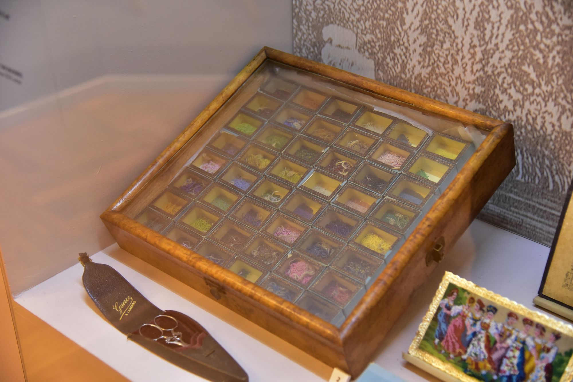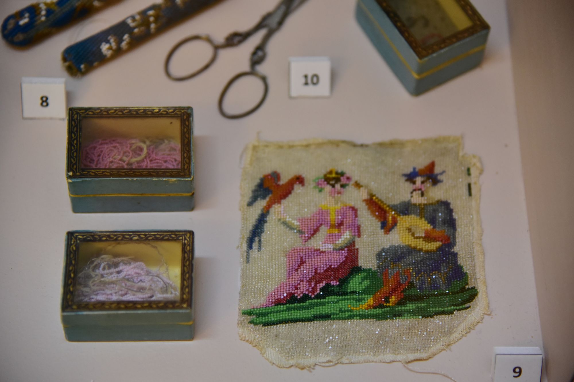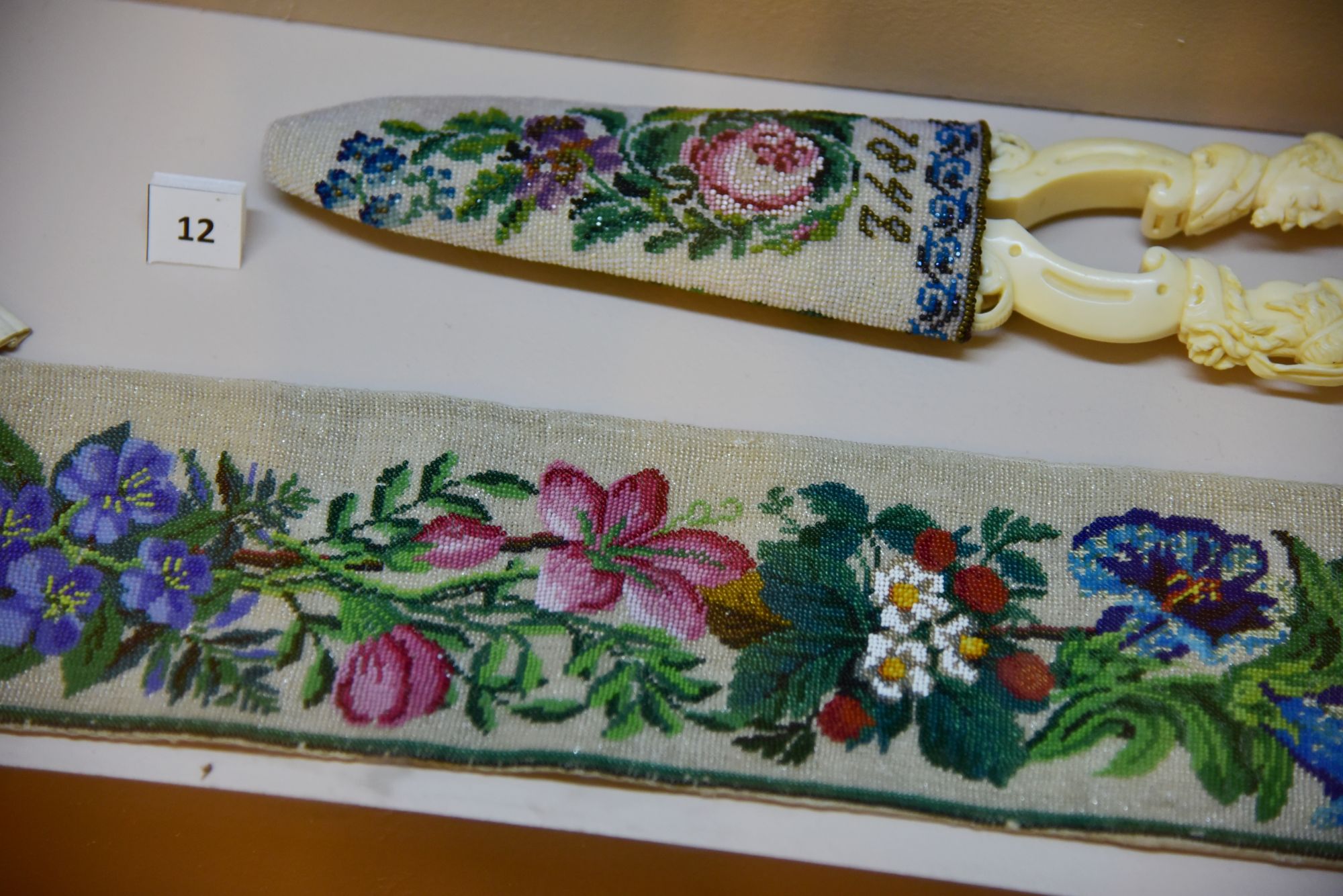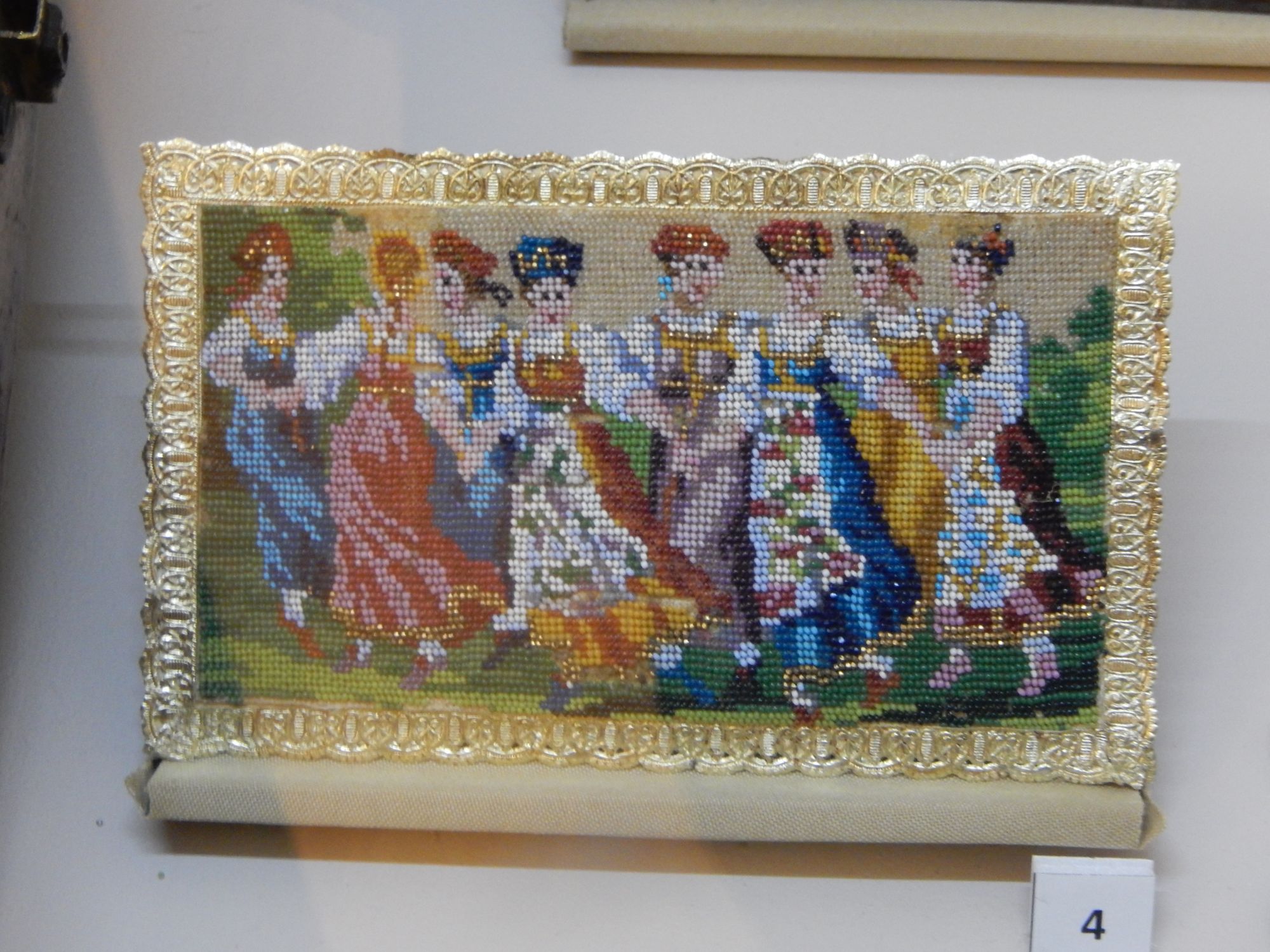30 августа 2016 Немного запоздало, но я все-таки дополню коллегу. Как уже сказала Ира, бисер в России был довольно популярен. В 19 веке его начали производить в Германии. Как и сейчас, тогда у производителей существовали карты цветов бисера с прейскурантом: Поскольку этот вид руокделия был доступен лишь состоятельным людям, то и храни его соответственно: каждый оттенок в своей отдельной маленькой коробочке : или ячейке: Смотрительница заверила, что весь бисер подлинный, конца 19 века, если я правильно понимаю. Работ из бисера на выставке было подавляющее количество, в основном много прикладных изделий: кошельки, чехлы, салфетки и т.п. К вышивке бисером подавляющая их часть не имеет никакого отношения - в основном мастерицы вязали такие вещи. Наверное, именно благодаря этому они так хорошо сохранились, поскольку будь то обычная вышивка от повседневного использования ткань рано или поздно просто расползлась, что можно увидеть на редких недошитых образцах вышивки: Даю подсказку: если вещь имеет хоть какой-то объем, (т.е. она не плоская), почти всегда это вязание. Так же в таких изделиях вы не увидите шва, как если бы её сшивали - его там просто нет, вязание идет по кругу. Так же при вышивке у бисеринок более пологий наклон, в отличие от вязаной вещи. Ну и пример, куда же без него: это фрагмент курительной трубки и чехол на барботер. Чехол - это вышивка бисером, там хорошо заметен шов, и бисеринки под 45 градусов, а вот у трубки они где-то под 60, и если её повертеть в руках рисунок прерываться не будет. Ну что ж, теперь Вы опытные, поэтому на общем виде витрин сможете легко отличить вязаное бисером от вышитого, поехали (девочки, многие экспонаты имеют фото поближе, если что-то понравилось - спрашивайте): Однако, на выставке встречались поистине шикарные образцы прикладного использования вышивки бисером. В основном, это плоские чехлы и шкатулки: кожаная табачница ; кошельки и записные книжки ; футляр для карт ; футляр для перчаток ; пояс к облачению священника - внизу длинный с цветами ; а чехол рядом вязанный; разнообразные шкатулки и даже панно на стену Но лично мне больше всего понравилась корзина для бумаг второй половины XIX века: На этом про бисерную вышивку у нас все, спасибо за внимание! Миссис Мыштон, chana75, Cvett и 25 других сказали спасибо Поделиться сообщением Ссылка на сообщение