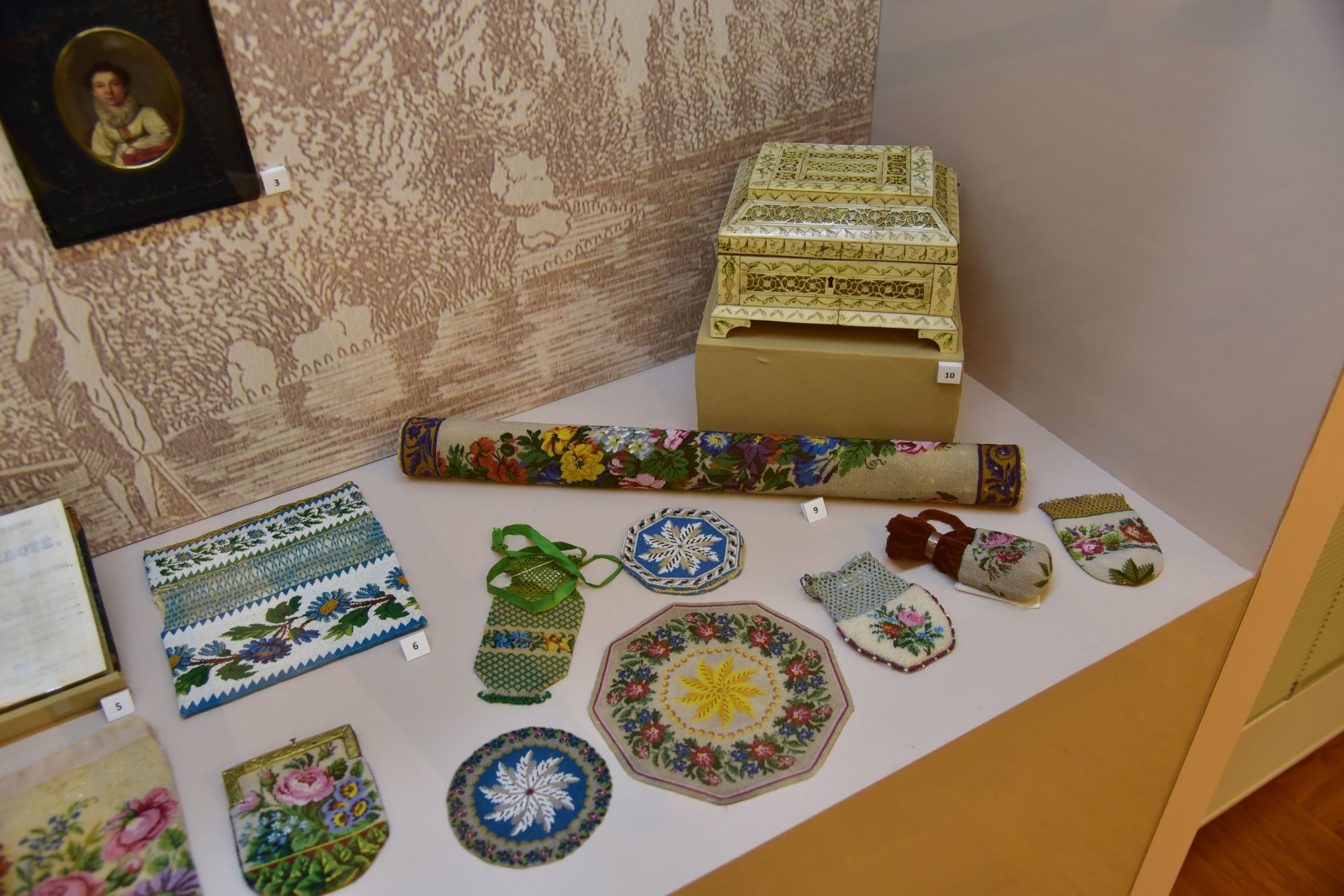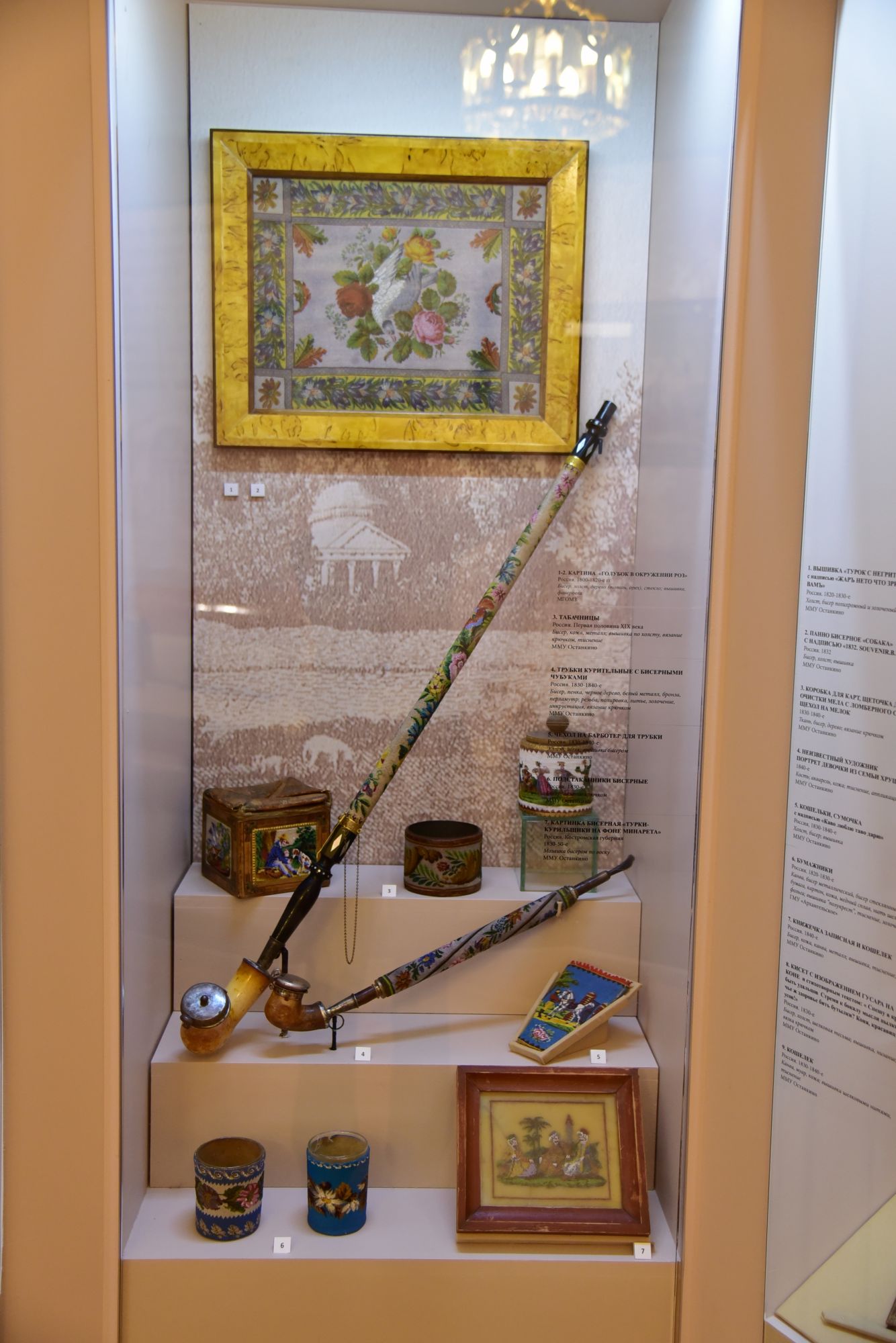 6 февраля 2016 Бисерная трубка в доме-музее В.В. Верещагина, г. Череповец. Дом, где родился художник, построен в 1830-х годах и принадлежал семье Верещагиных в течение 50 лет. Центральная часть трубки на первый взгляд, да и на второй тоже, кажется выполненной из гобелена. На самом деле это тончайшая ручная вышивка микроскопическим бисером. Нанизывали этот бисер либо на очень тонкие шелковые нити, либо на человеческий волос. Изготовлена трубка в первой половине XIX века и прекрасно сохранилась. Анна Николаевна, хозяйка дома, любила вышивать бисером. Рабочее место Мебель, сохранившаяся, и украшенная вышивкой хозяйки В России XVIII—XIX веков в отличие от многих европейских стран не существовало ни фабричного, ни кустарного производства изделий из бисера. Украшенные им вещицы изготавливались рукодельницами исключительно индивидуально и предназначались для их родных и близких, иногда для собственного интерьера или туалета. Рисунки для вышивок конца XVIII — начала XIX века были очень дороги. В объявлении из «Московских ведомостей» за 1798 г. сообщается, например, о том, что в книжной лавке у купца Кольчугина продаются узоры для шитья по канве, раскрашенные и нераскрашенные, ценою 10 и 6 рублей за тетрадь. Подписка на отечественные журналы с рисунками для вышивания стоила также далеко не дешево. А стоимость самого бисера можно приблизительно оценить по одному из изречений Козьмы Пруткова: «Ценность всего условна: зубочистка, подаренная тебе в сувенир, несравненно дороже двух рублей с полтиной». На чехол для зубочистки бисера идет совсем немного, а два с полтиной были по тем временам вполне солидные деньги. Для сравнения — 1 пуд ржаной муки стоил в середине XIX века около 50 коп. Таким образом, бисерное рукоделие в период его расцвета было доступно лишь состоятельным рукодельницам. Действительно, имеется множество свидетельств тому, что бисерным вышиванием занимались в основном богатые люди. Например, графиня Толстая, вяжущая бисерный кисет, на портрете Аргунова или княжна Ромодановская-Ладыженская, оставившая свою подпись на ящике для сигар, принадлежавшем лейб-медику Николая I Н.Ф.Арендту и украшенном вышитыми бисером пейзажами, а в Эрмитаже хранится трубка Кутузова с разборным бисерным чубуком, каждая часть которого выполнена одной из его дочерей, включивших свои имена в декор вышивки. Целый спектр вышивальщиц из разных слоев общества находим в каталоге Вологодской губернской выставки за 1837 г.: тут и изделия помещиц Ефимьевой и Зубовой, и воспитанницы Смольного девицы Булычевой, и штаб-лекарши Лисенковой, и купецкой жены Коноплевой. (Роспись вещам, представленным на Вологодскую губернскую выставку. Вологда, 1837.) В то же время не встретилось ни одного упоминания о бисерных работах, выполненных крепостными. yuss, Немона, Чивава и 22 других сказали спасибо Поделиться сообщением Ссылка на сообщение