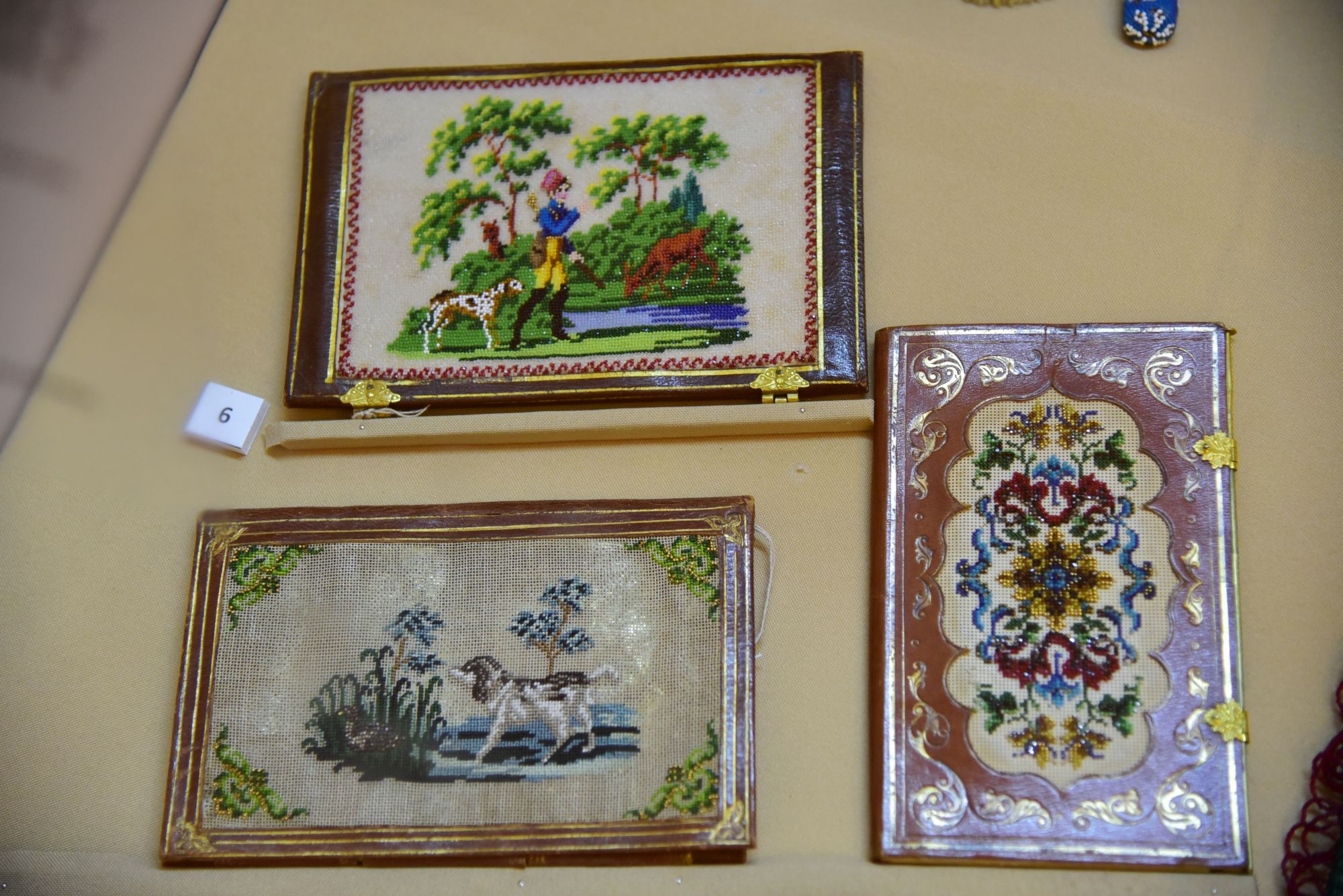 12 июля 2016 В 10.7.2016 at 01:15, Миссис Мыштон сказал: На втором этаже в уютной гостиной расположились всякие дамские безделушки : , Простые, но изящные вещицы - туфельки, перчатки, веера, платья. Ну я дополню - там рядом с этими платьями стояло кресло с вышитой подушкой. Фотографироваться оно не желало - бликует стекло. Вышивка прям вся такая старая - потертая, местами выцветшая - видно, что использовалась. Мне вот жалко было бы... В 10.7.2016 at 01:15, Миссис Мыштон сказал: А возле этой витрины я зависла надолго, т.к. там были всякие рукодельные вещицы . - красивый несессер, кошелек, записная книжка, вышитые бисером. Бисер очень мелкий, работа практически ювелирная, остается только восхититься рукодельницами прошлого. Ну, я тоже у этой же витрины зависла, так что дополню коллегу парой фотографий покрупнее: синяя сумочка и кожаная обложка (она мнев той витрине больше всего приглянулась): Veta, Путешественница, mrn1970 и 13 других сказали спасибо Поделиться сообщением Ссылка на сообщение