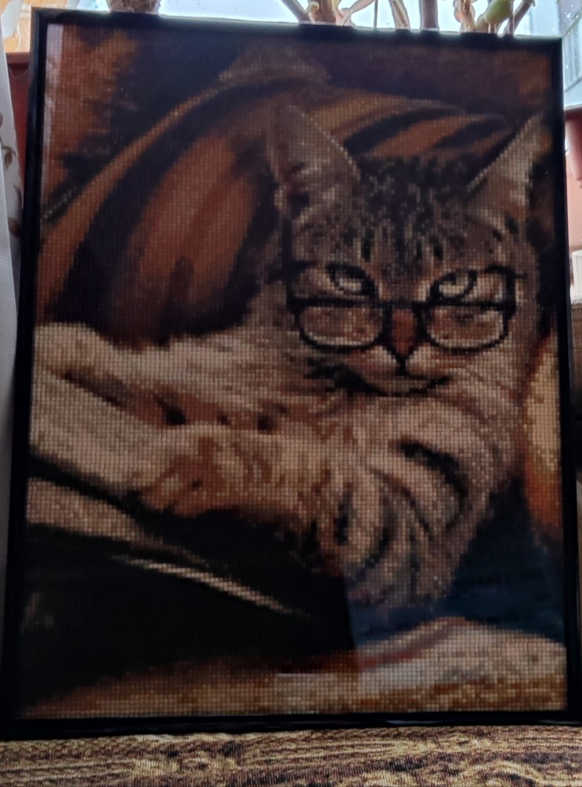 1 июля Состоялось мое первое знакомство с еще одним российским производителем наборов алмазной мозаики - Milato. Искала картинку в подарок для салона оптики и наткнулась на это чудо Набор называется "Книголюб", 30 х 40 см, без подрамника, квадратные стразы. В целом, от производителя осталось двоякое ощущение. С одной стороны, у набора множество плюсов - качественная комплектация, четкая схема, хорошо различимые символы, стразы вообще без брака (!) и их достаточно много, четкая картинка на готовой работе, невысокая цена. С другой стороны, есть один огромный минус - клеевой слой ужасно липкий, прям как клей "Момент", и им покрыта вся поверхность холста. Т.е. в процессе выкладывания руки постоянно прилипают к холсту, и оторвать их не так-то просто :)) И неровно приклеенную стразинку тоже подправить не получится, отсюда неизбежные "щели". Издалека их, возможно, и не заметно, но я-то знаю об их наличии . Оформила в готовую покупную тонкую черную рамку, смотрится вполне прилично (лучше, чем на моих фото). Хозяйка смешных зверей, Vika71, Dobraya_koshka и 11 других сказали спасибо Поделиться сообщением Ссылка на сообщение