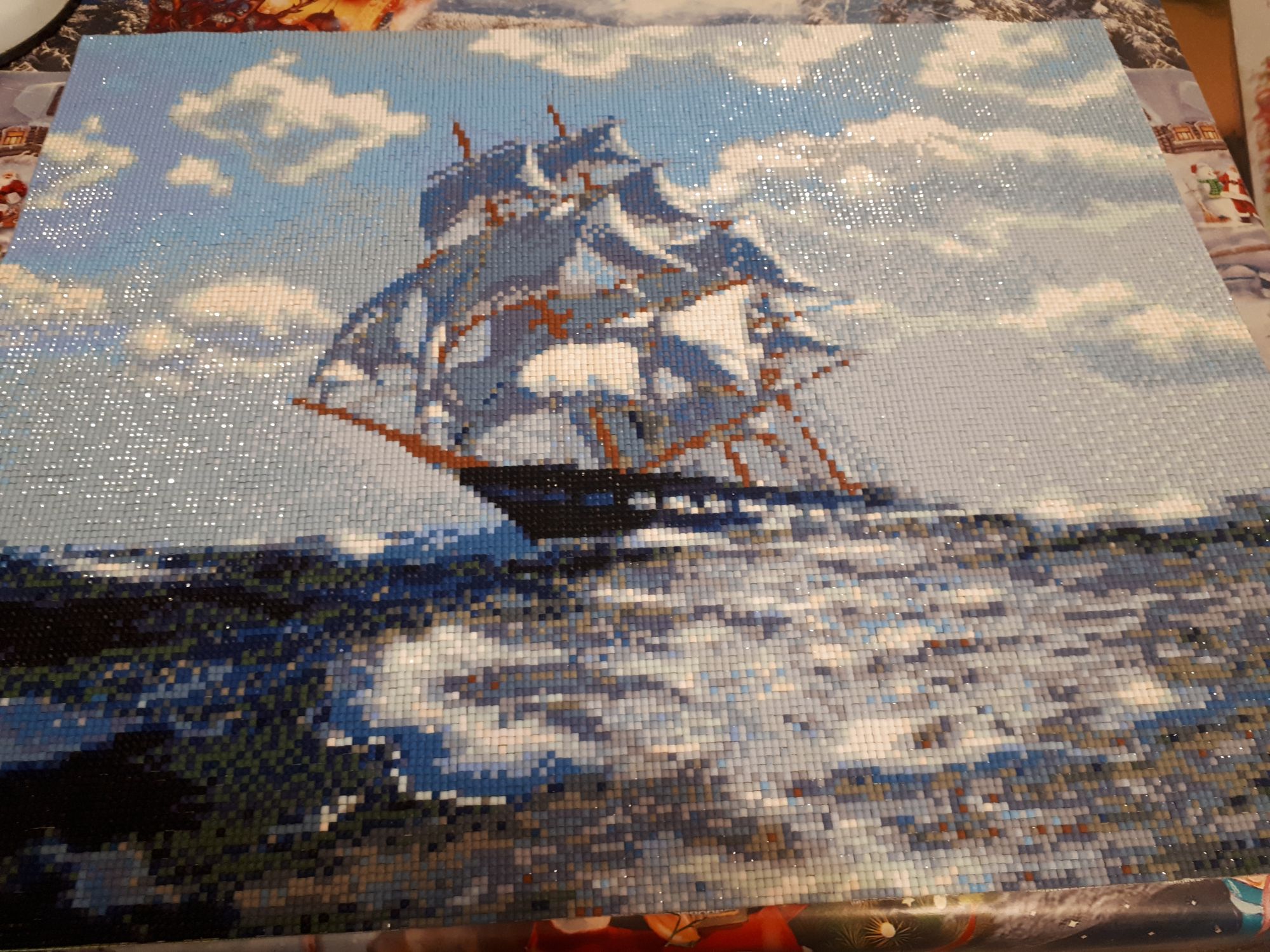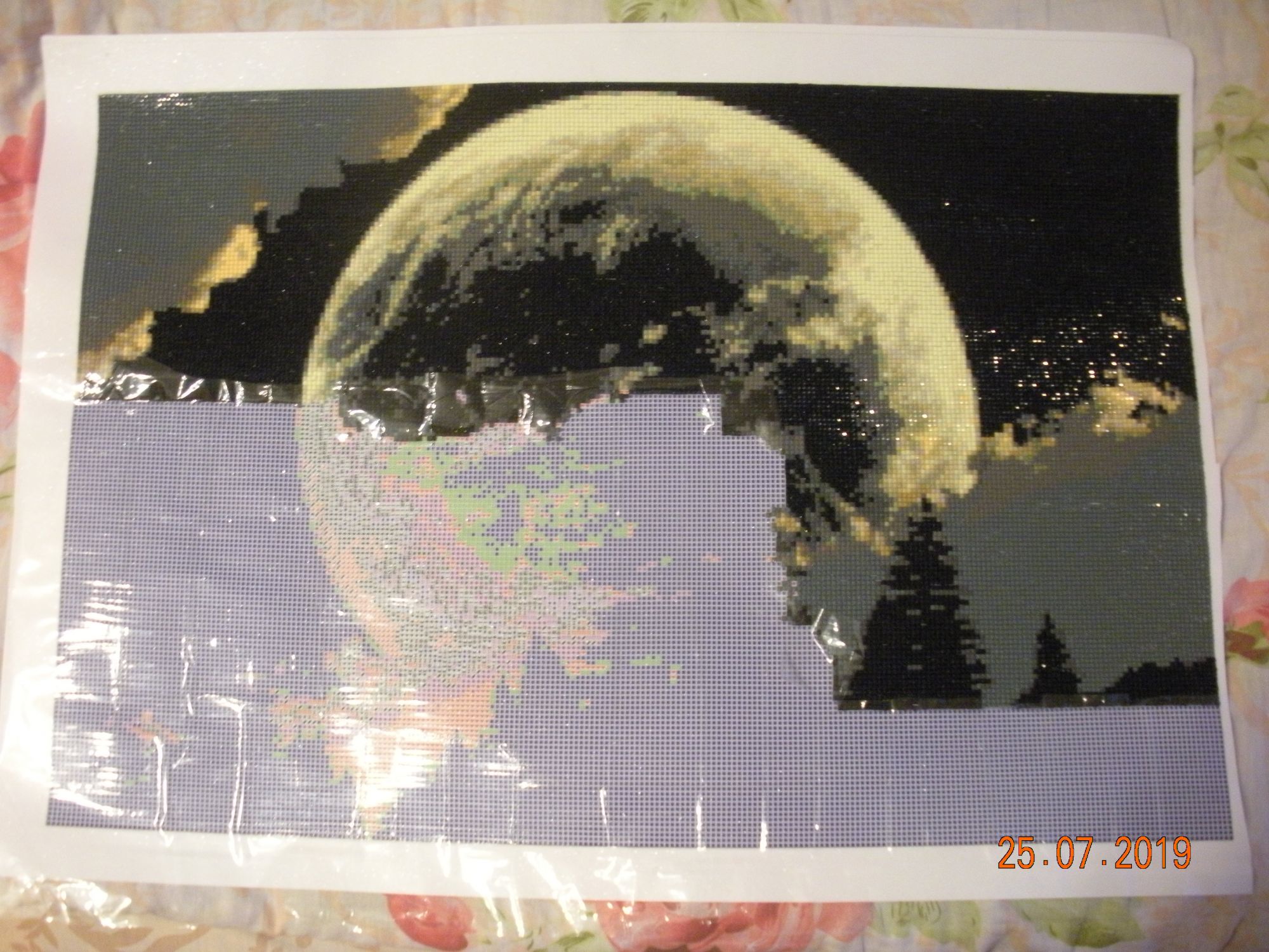 24 июня 2019 Я когда ездила получать в пункте выдаче заказанные вышивки, проходила мимо магазина с алмазкой. Целый год мимо проходила, и однажды, меня туда зенесло. Хорошо зенесло! Увидела я там готовую работу "Луна в облаках". Хочу, хочу, хочу! Эта была мысль, когда я приехала домой. До этого я выложила одну маленькую картинку с котиком, которую мне подарила подруга, с круглыми стразами. Не могу сказать, что меня это впечатлило. Так вот, на счет Луны. Надо же сначала руку набить, попробовать. Я купила орхидею. Подумала, что красиво должно получиться и не ошиблась. Теперь я выкладываю Луну. Размер большой 40х60. Специально купила подставку, не всегда есть место, чтобы разложить такое полотно. Вот что должно получиться А пока вот что выложено Ольга-мышка, Пумочка-13, rramil и 12 других сказали спасибо Поделиться сообщением Ссылка на сообщение
