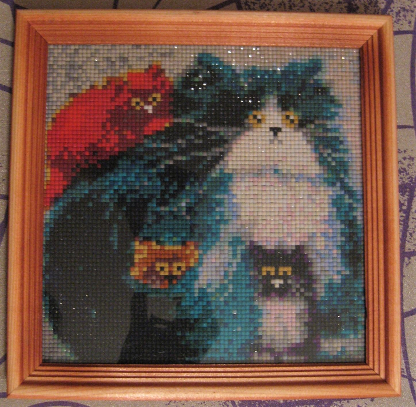 7 ноября 2019 Мое знакомство с алмазной мозаикой началось с наборов с известного китайского магазина. Тогда эти котики только вошли в продажу за самые смешные цены, и судя по количеству заказов на них был настоящий бум. Однако Кроме красивых картинок исходников никто не видел реально получающиеся работы. И если большие котейки получались еще годные (приходилось импровизировать и потаскивать цвета из разных наборов чтобы подкорректировать рисунок), то с маленькими было сложнее. Но даже при этом я все еще от них в восторге. А вот с карпами расстроилась, маленькие кляксы на камушках :с Хозяйка смешных зверей, Пушистая, Mirabella77 и 2 других сказали спасибо Поделиться сообщением Ссылка на сообщение