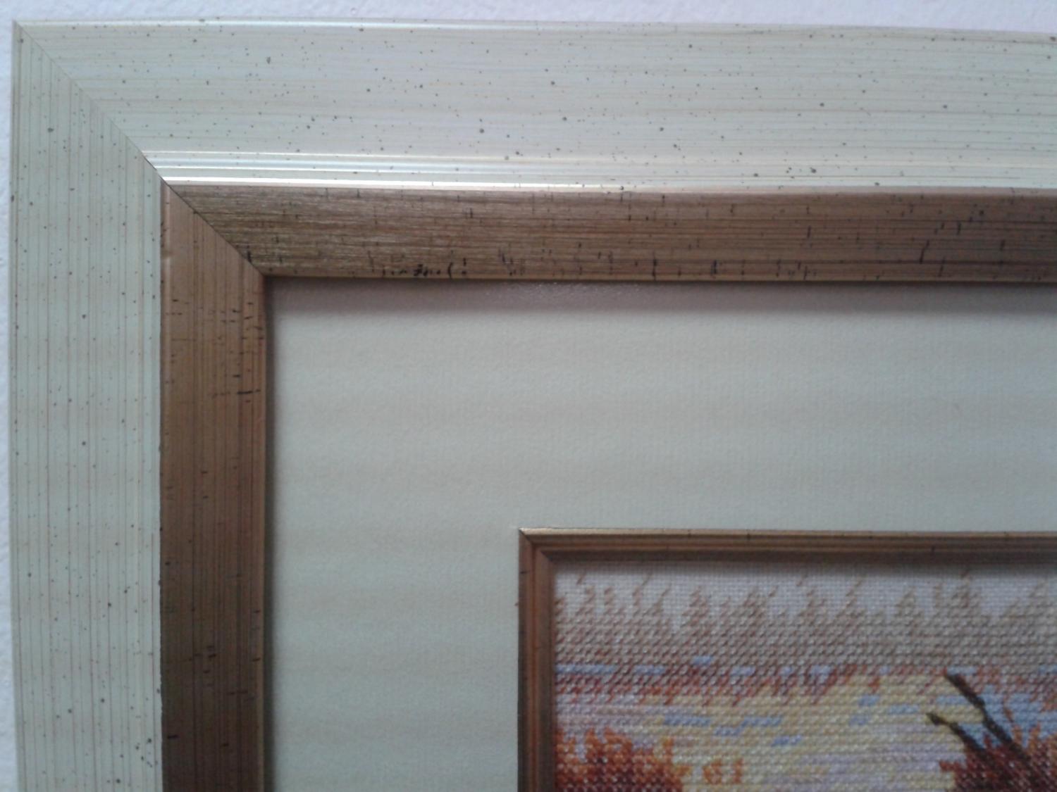 Я примчалась показать вам своих Солнечных цапель в оформлении! Только что привезли, и мне так понравилось оформление, что аж распирает похвастаться. Скажу сразу, переживаний было много, т. к. цвет подобрали тот, которого в картине нет- бледно-оливковый. Но, как и убеждали все принимавшие участие в этом нелегком процессе, оказалось самое оно. Это испанский багет из новой партии, поэтому пока еще не востребован и не очень дорог. Но багет, без преувеличения, идеален. Во внутреннем окошке плоский слип, повторяющий внутренний кант багета. Паспарту точно в цвет багета.