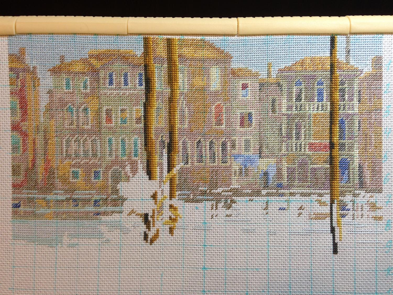 Принесла вам сегодня показать продвижение в Венеции. Дальний план завершен. Наконец-то я добралась до цветочков. Следующий раз уже покажу вам их.
