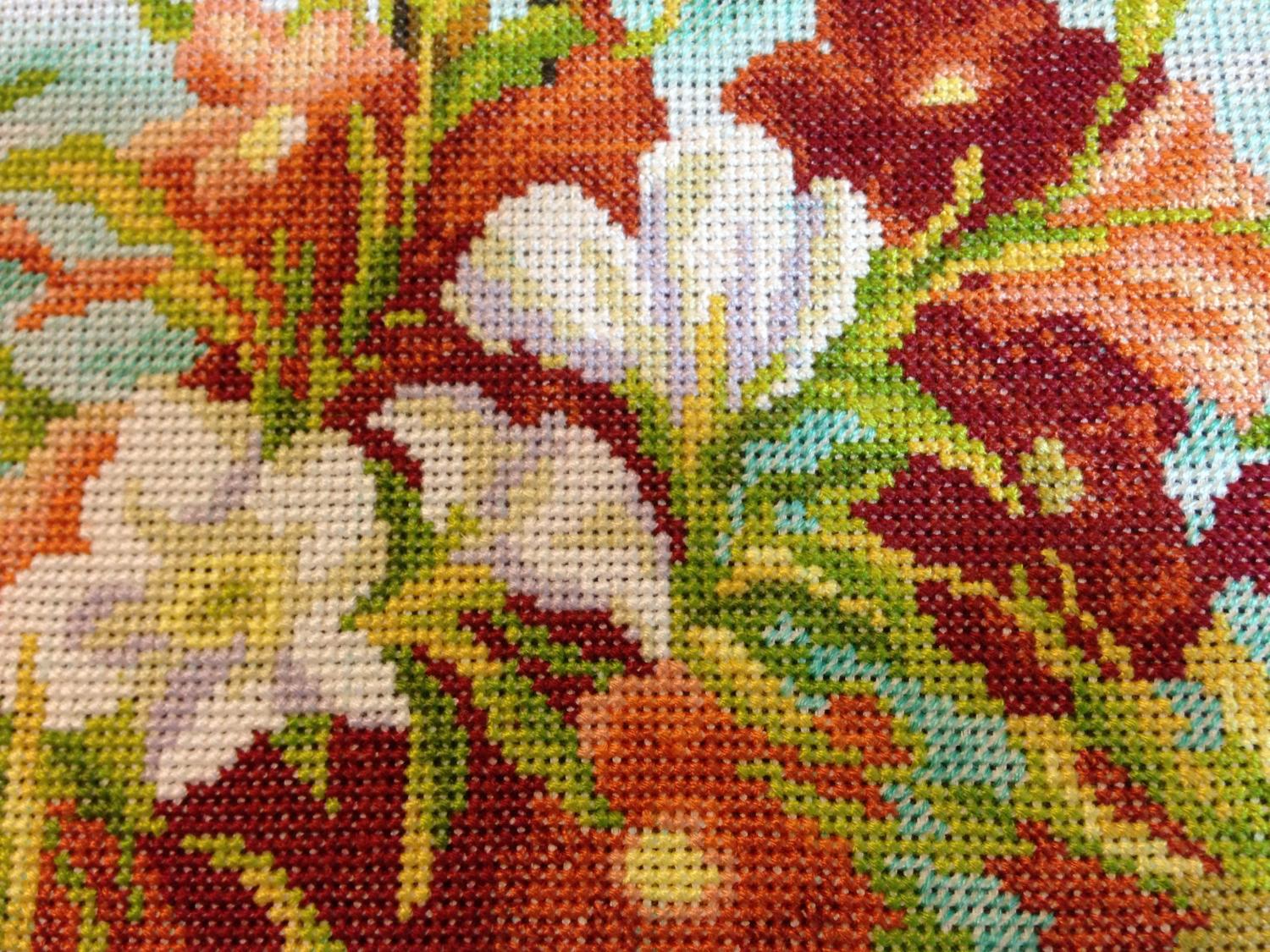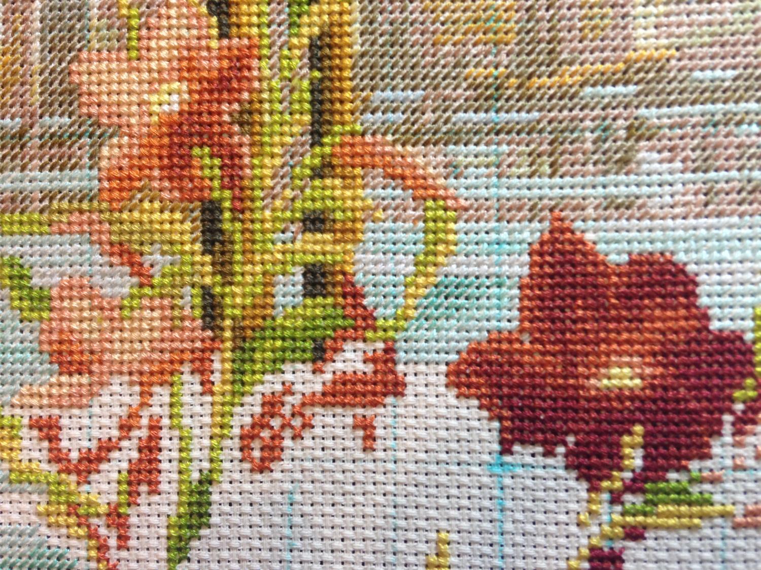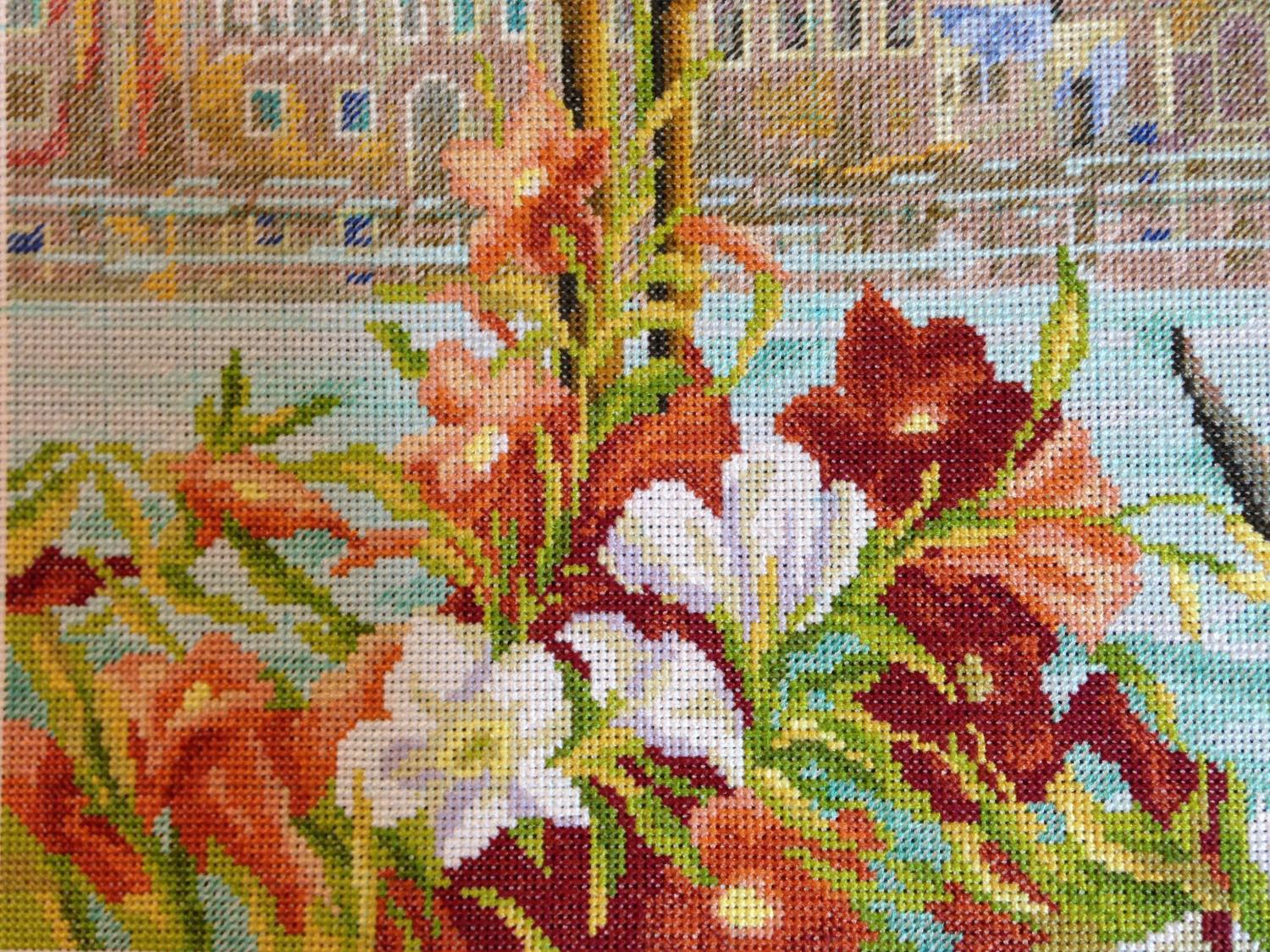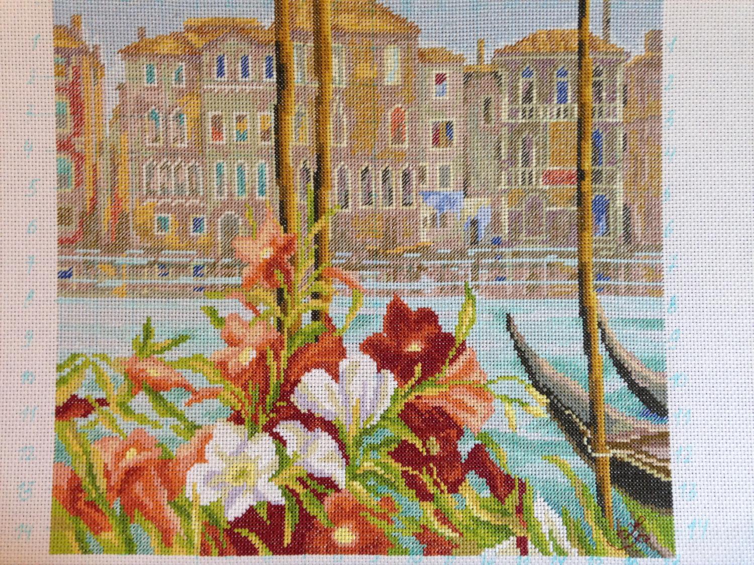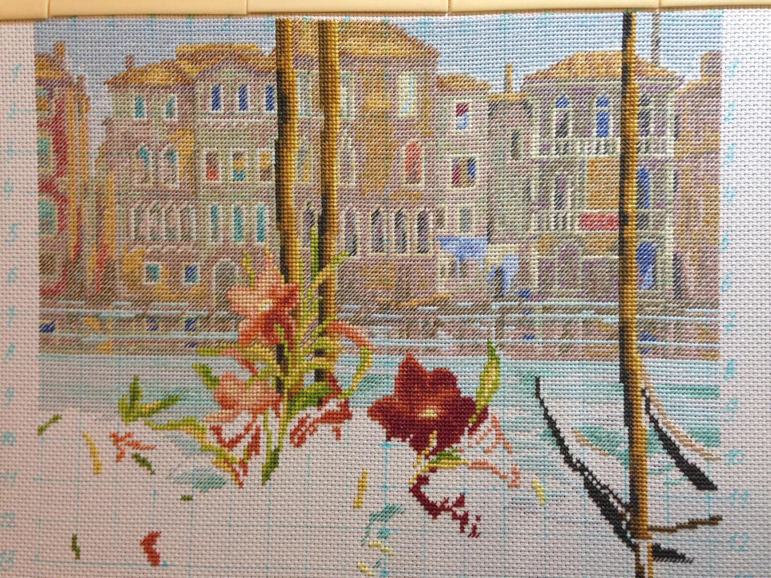 И о вышивальном. Было немного времени на рукоделие, но все же до цветочков в Венеции я добралась. Сейчас уже и приятнее, и живее пойдет дело.