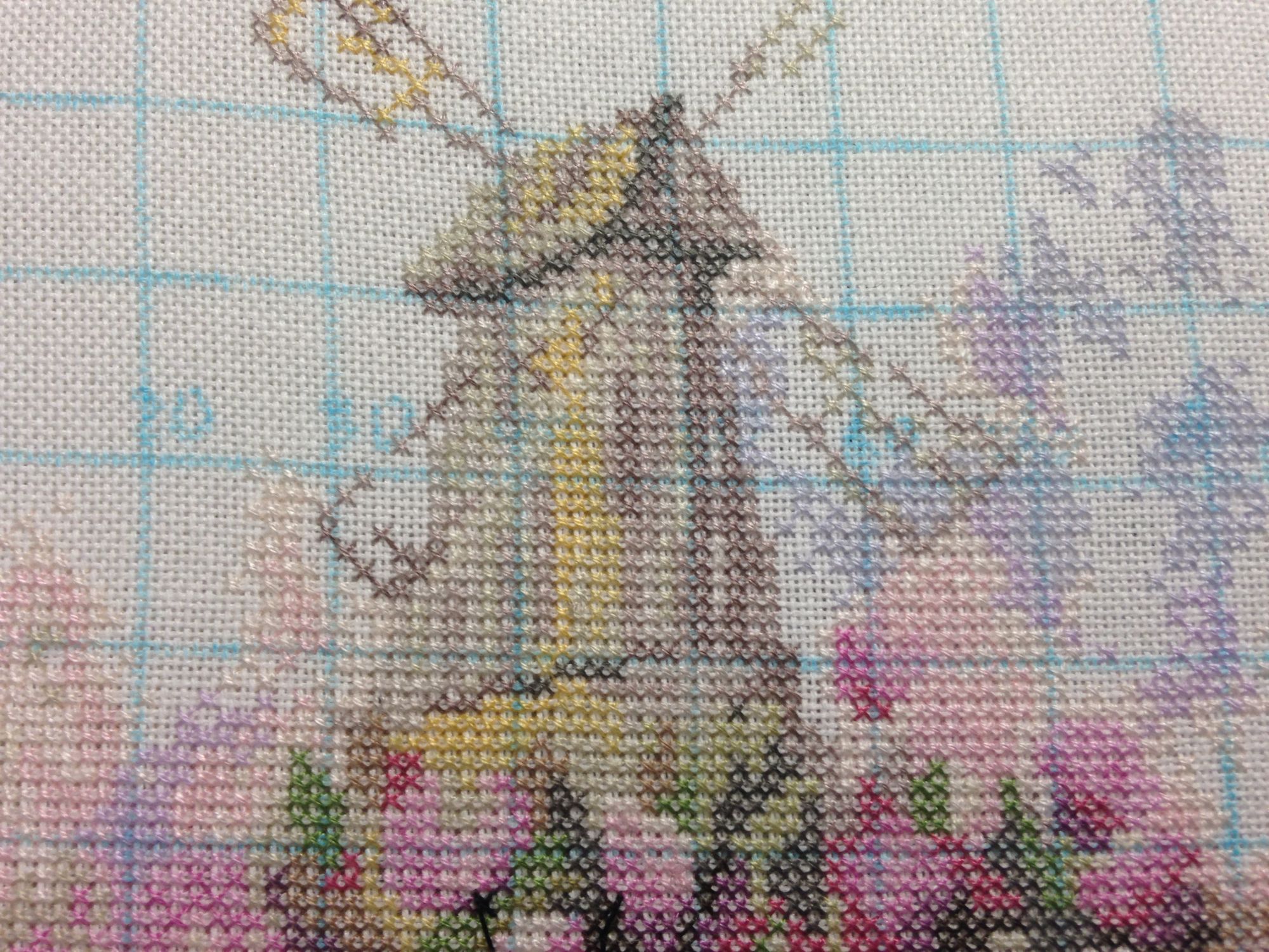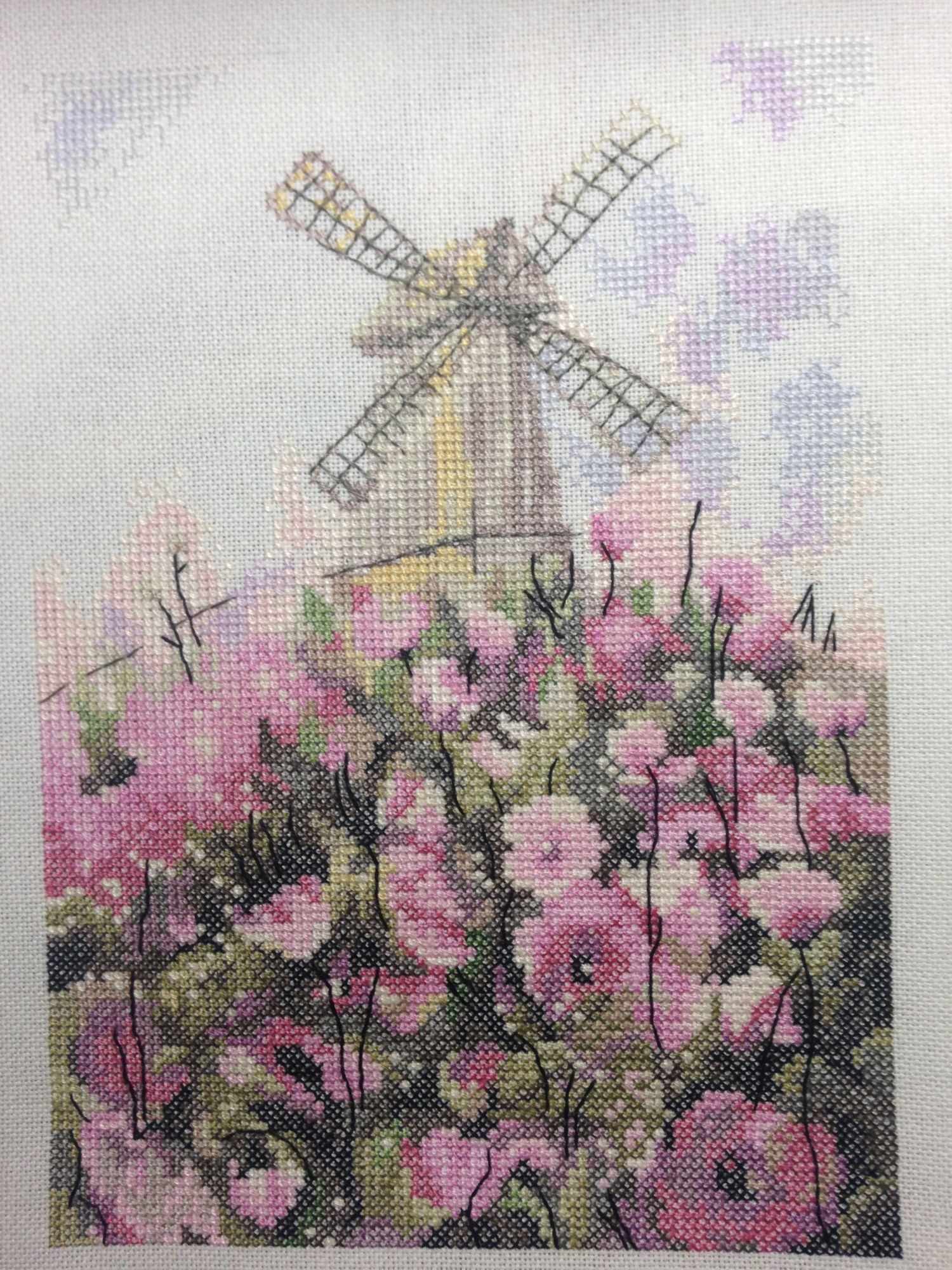 Мельничка тоже классно смотрится. Все-таки есть прелесть в работах, вышитых в одну ниточку, они смотрятся какими-то ажурными что ли. Я знаю, многие не любят, когда просвечивает ткань или канва, и специально добавляют нити, чтобы зашивка была как можно плотнее. Я вот отношусь к другой категории - мне очень нравятся именно эти просветы и получившаяся нежность.