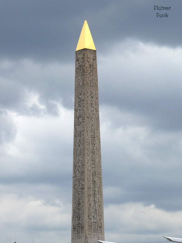 За Пирамидой Лувра Вырастет Луксорский обелиск.Он был подарен египетским правителем и установлен в центре площади Согласия в 18 веке. На нем нанесены диаграммы, иллюстрирующие процесс доставки 23-х метрового сооружения из Египта в Париж. Верхушка обелиска позолоченная.