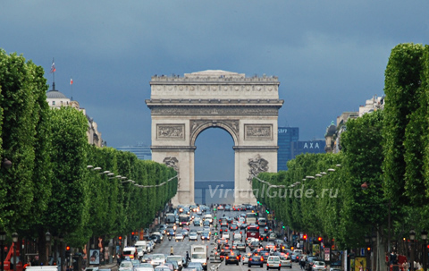 За Эйфелевой башней появится Триумфальная Арка, возведенная на площади Шарля де Голля, по распоряжению Наполеона, в честь побед его великой армии.