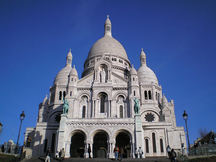 Затем мы увидим Базилику Сакре-Кер или Базилику Святого Сердца, т. е. Сердца Христова. Это католический храм в Париже на вершине холма Монмартр, на самой высокой точке города.