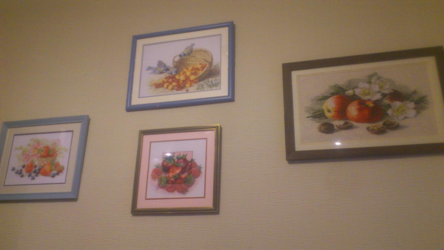 5 октября 2015 По мне, так все как надо)) Мне очень нравится! Понятно, что можно применить ещё 100 вариантов оформления, но то, что сейчас, меня очень радует)) Ну вот муж мне тоже говорит, да ладно тебе, все гармонично весьма, верхнее паспарту под светлые цвета корзины, нижнее под ягоды, а багет с серебрянными полосами ему сам по себе очень нравится:-D я и тоже успокаиваюсь, захочется переоформлю, да и в кухне все равно такое всё пестрое, что если что и не так, то не сильно выделяется, ибо на кухне всё как радуга:-D квартира новая, ремонт старый, вешаю все подряд.... Desha сказал(а) спасибо Поделиться сообщением Ссылка на сообщение