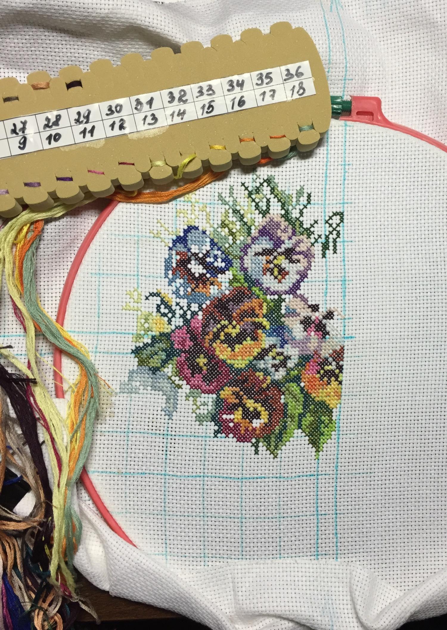 4 ноября 2015 канву перетянула немного. Пока буду вышивать слева. Вышивается не сложно, хотя и цветов там 29. Но все равно, получается красиво. Поделиться сообщением Ссылка на сообщение