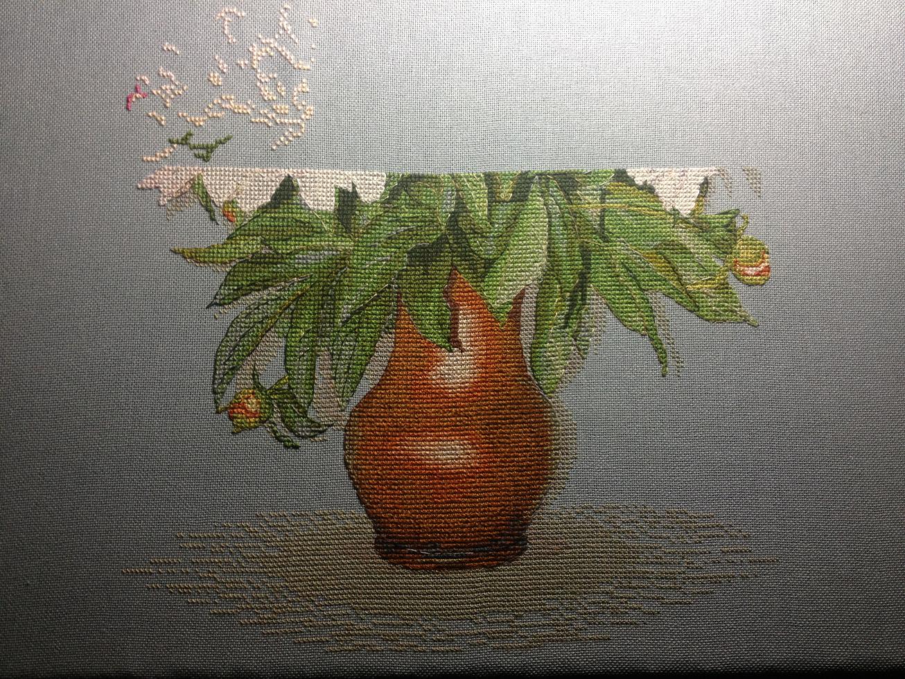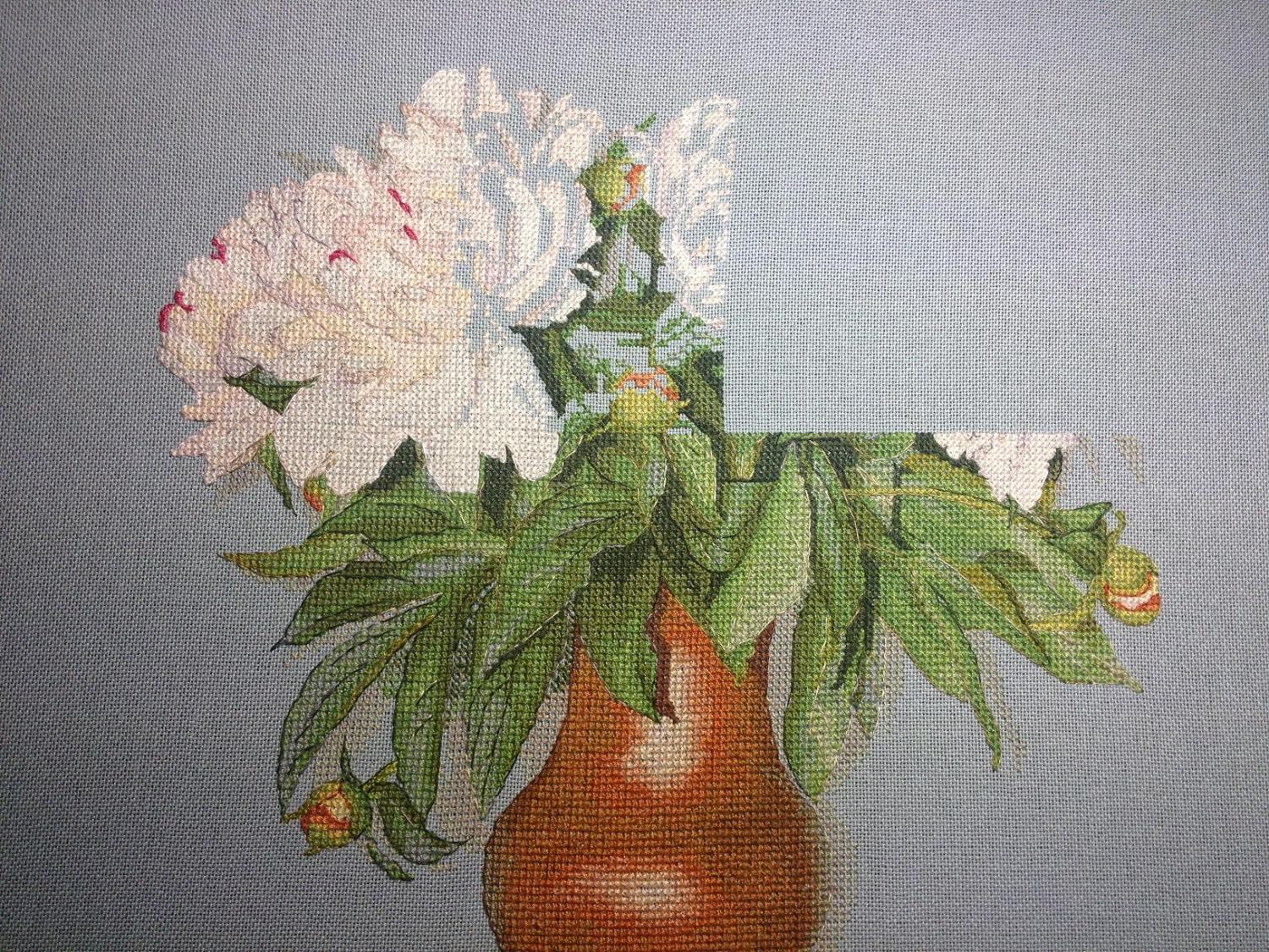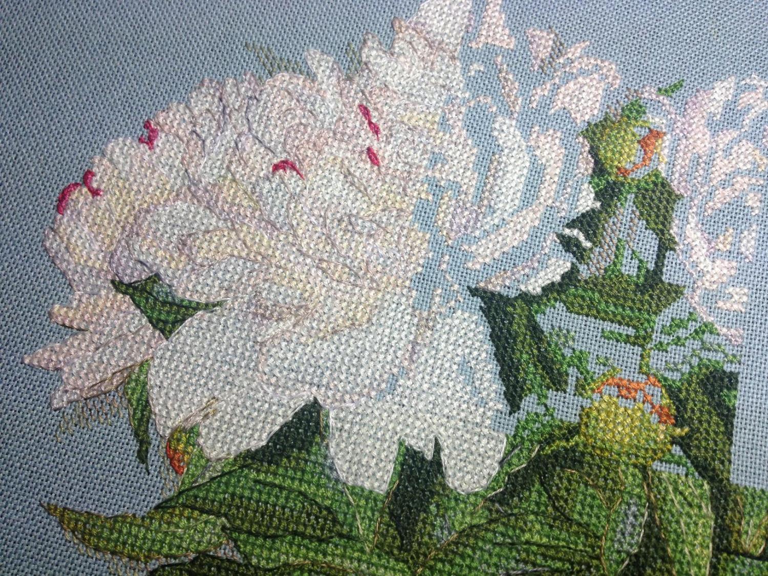 5 октября 2015 Всем привет! Опять меня накрыл рабочий кризис))) совершенно нет времени на отчет))) А пиончики тем временем все шьются, и вышито уже много. Столкнулась с тем, что очень сложно сфоткать оттенки белого, получается либо засвеченно, либо мутно, не судите строго. Фото "было" не загрузила, поэтому фото процесса. Знаете, что самое интересное, в цветах нет вообще белого цвета (который у DMC - 5200), есть куча оттенков серого, бежевого, розового, сиреневого, желтого, персика, и т.д., и т.п. Есть куча блендов из них во всех возможных вариациях... А чисто-белый - совсем немножко в бэке... Но получается очень нежно и красиво, не покидает чувство, что я вышиваю ЧУДО. За это спасибо Кате! На улице уже осень, а у меня прекрасная весна. Но осень у нас в этом году чудесно-мягкая, чего и вам всем желаю))) veravas, elena1203, Морская и 13 других сказали спасибо Поделиться сообщением Ссылка на сообщение