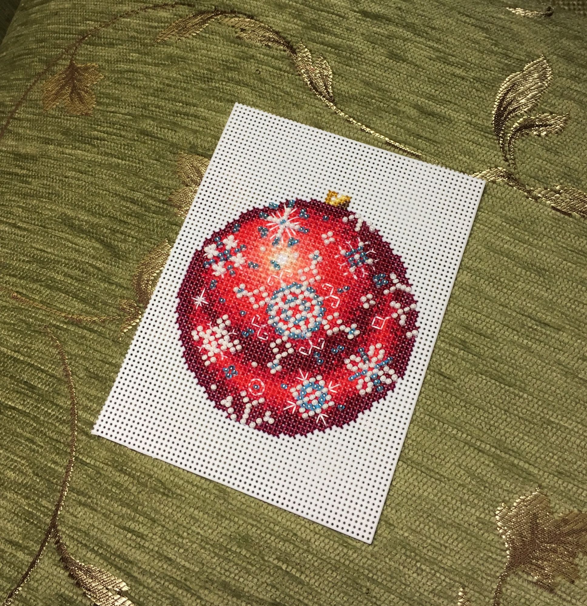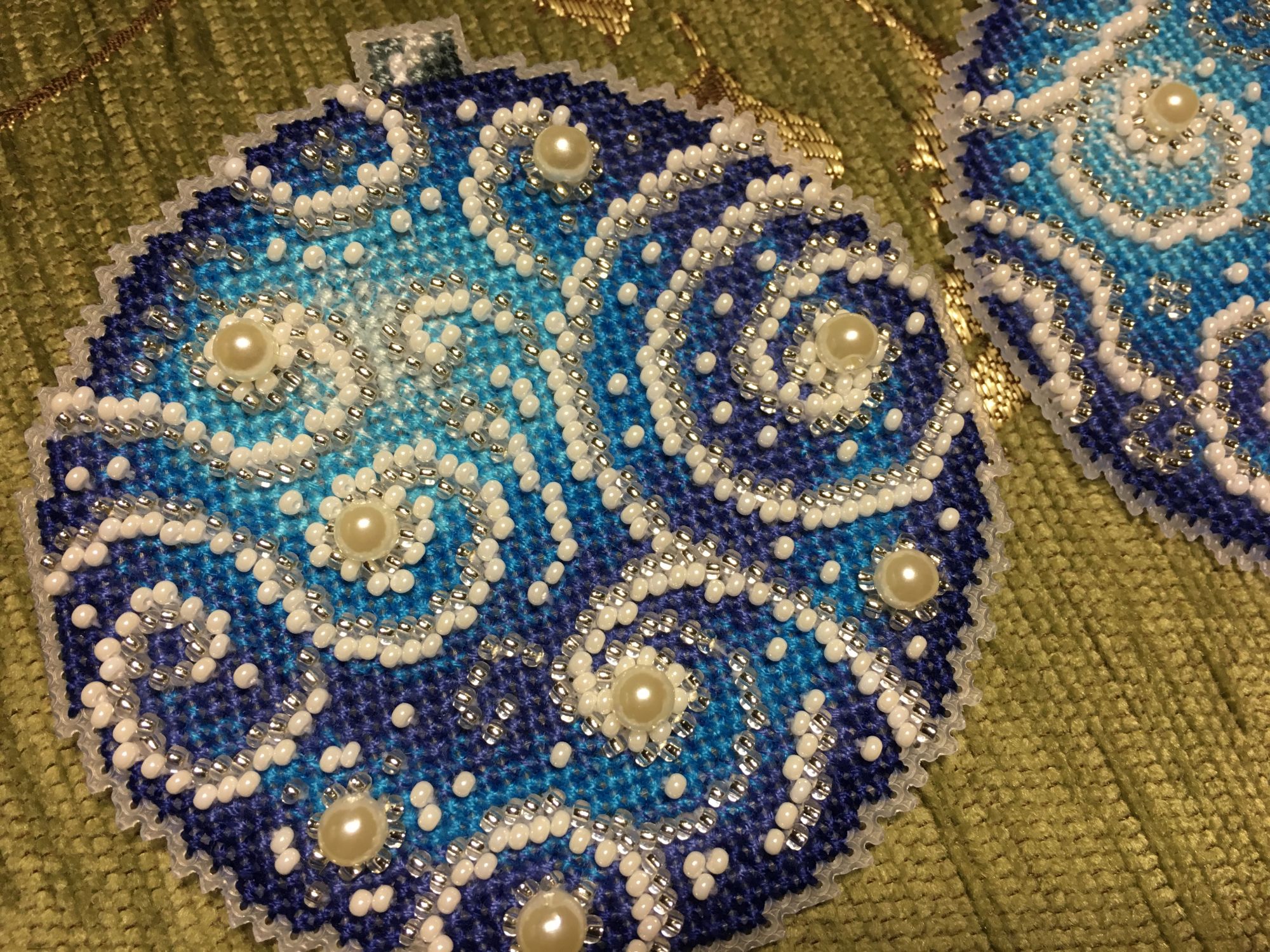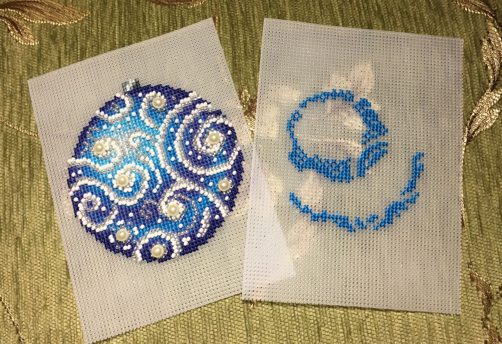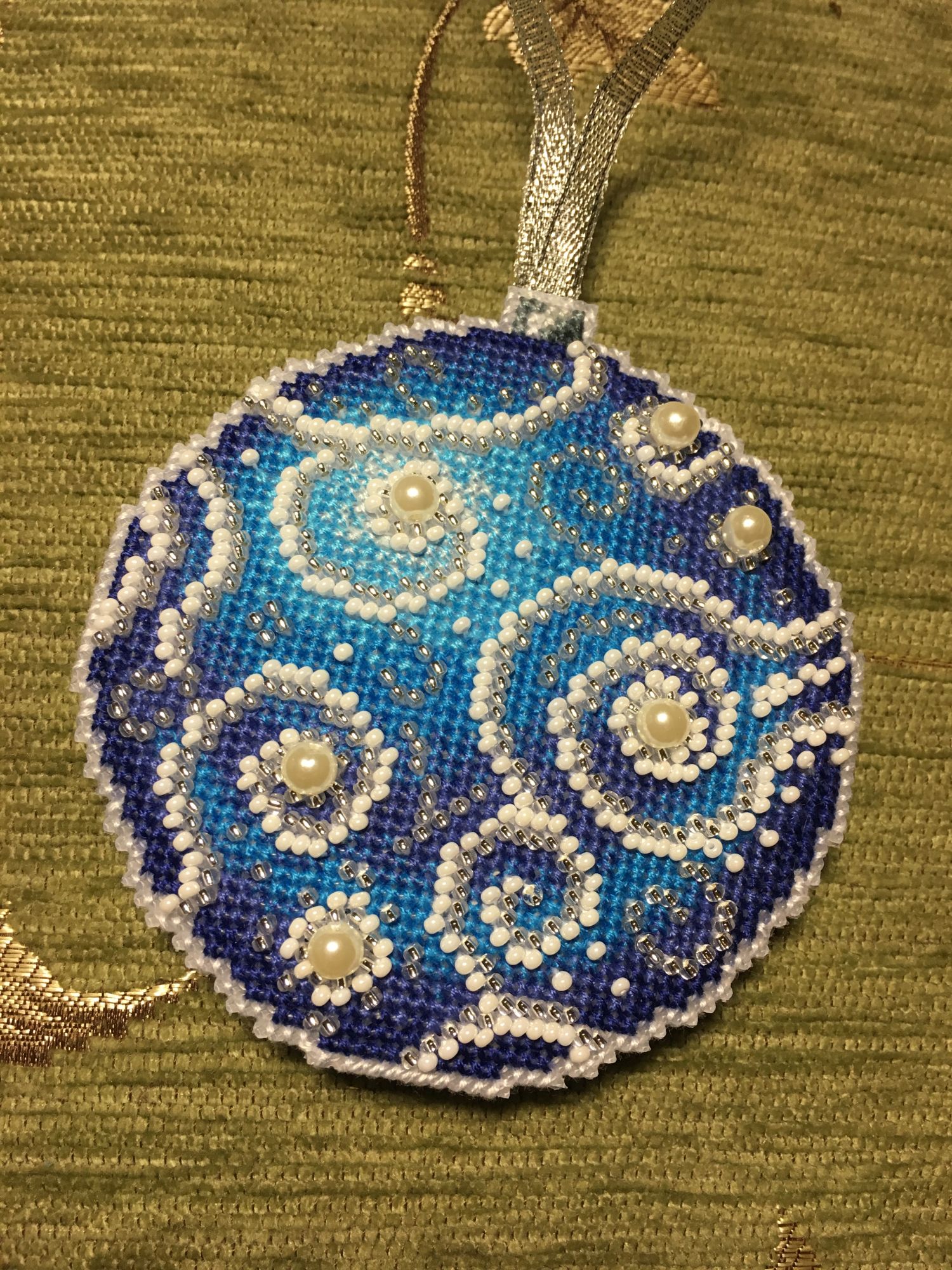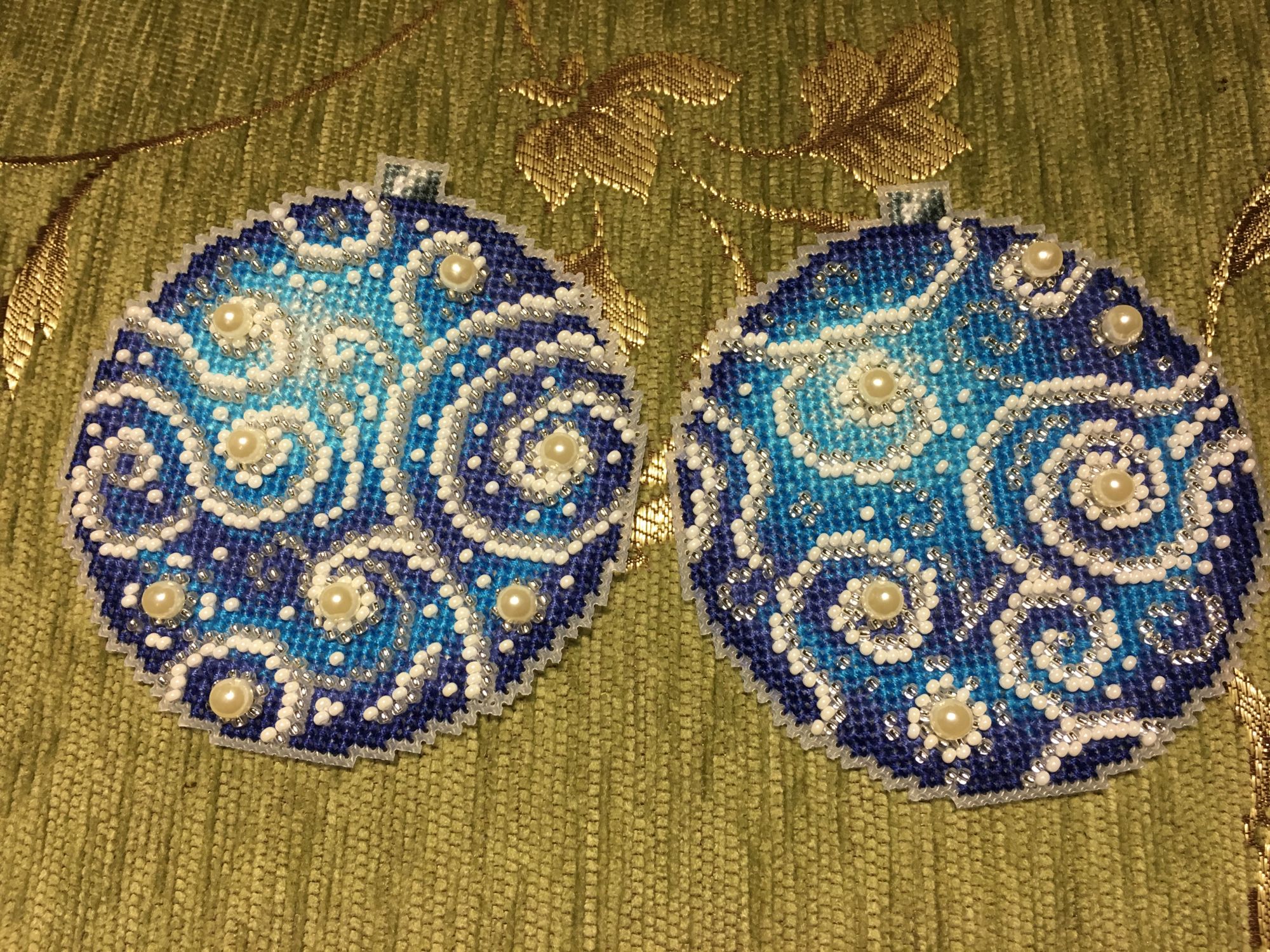 13 января 2018 Всем привет! Всех-всех ещё раз со всеми праздниками))))) Начался и закончился завершающий в этом году шарик от МП-студии «Узоры зимы», но мне как-то привычнее по цветам их идентифицировать)))) Понеслась Ну и собранный Вполне ожидаемо, Голубой оказался самым нарядным. Ну, во-первых, цвет этот я люблю очень, а во-вторых, на нём больше всего бисера, он-то и придаёт ажурность! Почему-то канва для него была не белая, а прозрачная. Но это никак не повлияло не на что, ну чууууть тяжелее было дырочки видеть. Хотела вышить все 4 шарика, и купила их все, но один выпросила сестра, поэтому у меня трио уже говорила, что шьётся легко и непринуждённо, стороны на всех шариках разные (даже на Зелёном), поэтому абсолютно не скучно. И материала больше, чем достаточно! Осталось много и бисера, и мулине во всех наборах. Всем советую! Коврик тоже плела, но там буквально 5-6 рядов добавила, позже покажу. Всё, с чистой совестью и свежими силами возвращаюсь к Деревеньке. Там остался завершающий рывок - один домик, и он самый маленький. Всем прекрасного настроения!!! irinka-mandarinka, Наталья2013, TheSunniestDay и 9 других сказали спасибо Поделиться сообщением Ссылка на сообщение