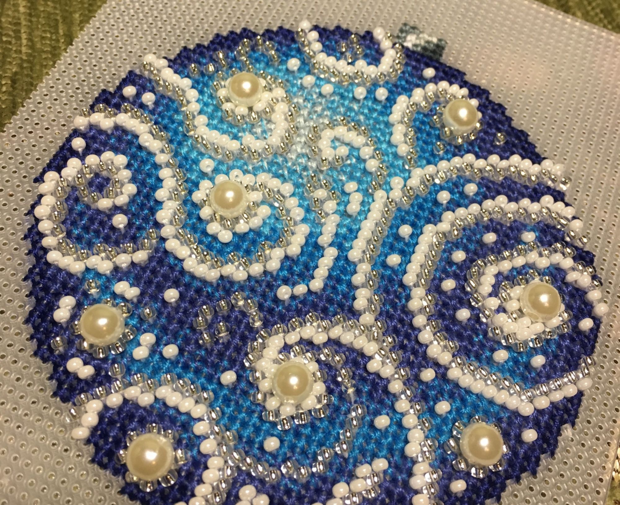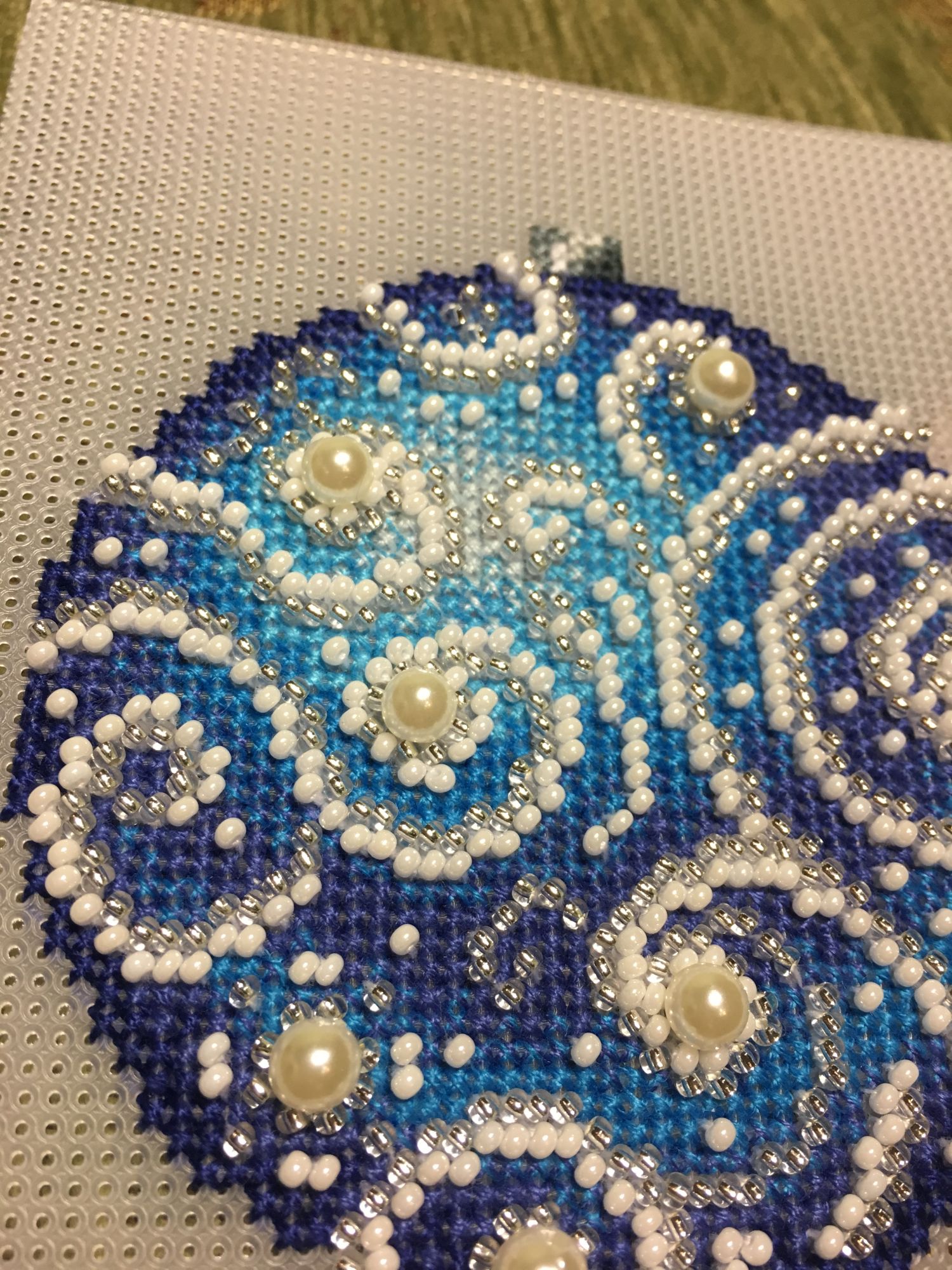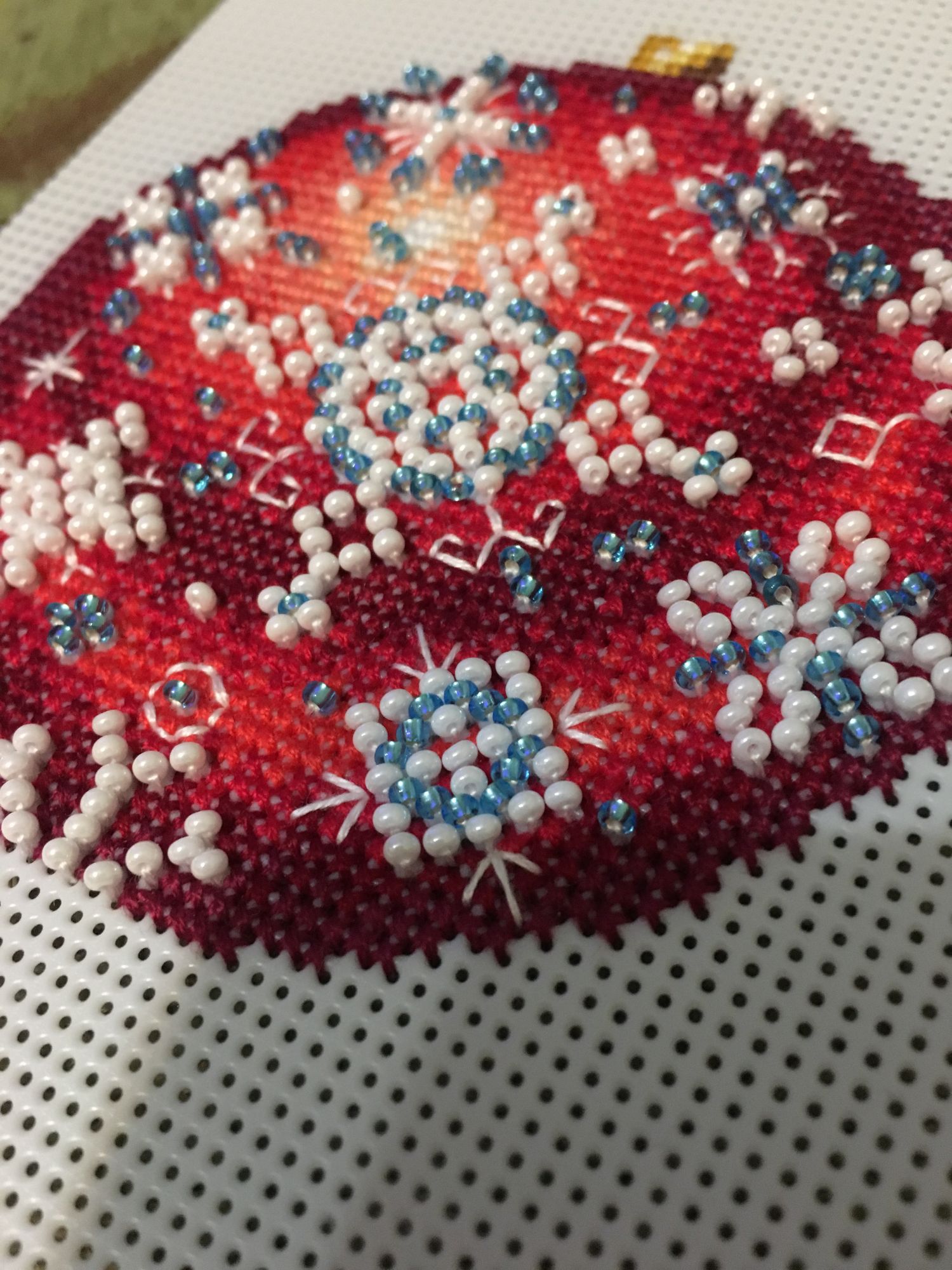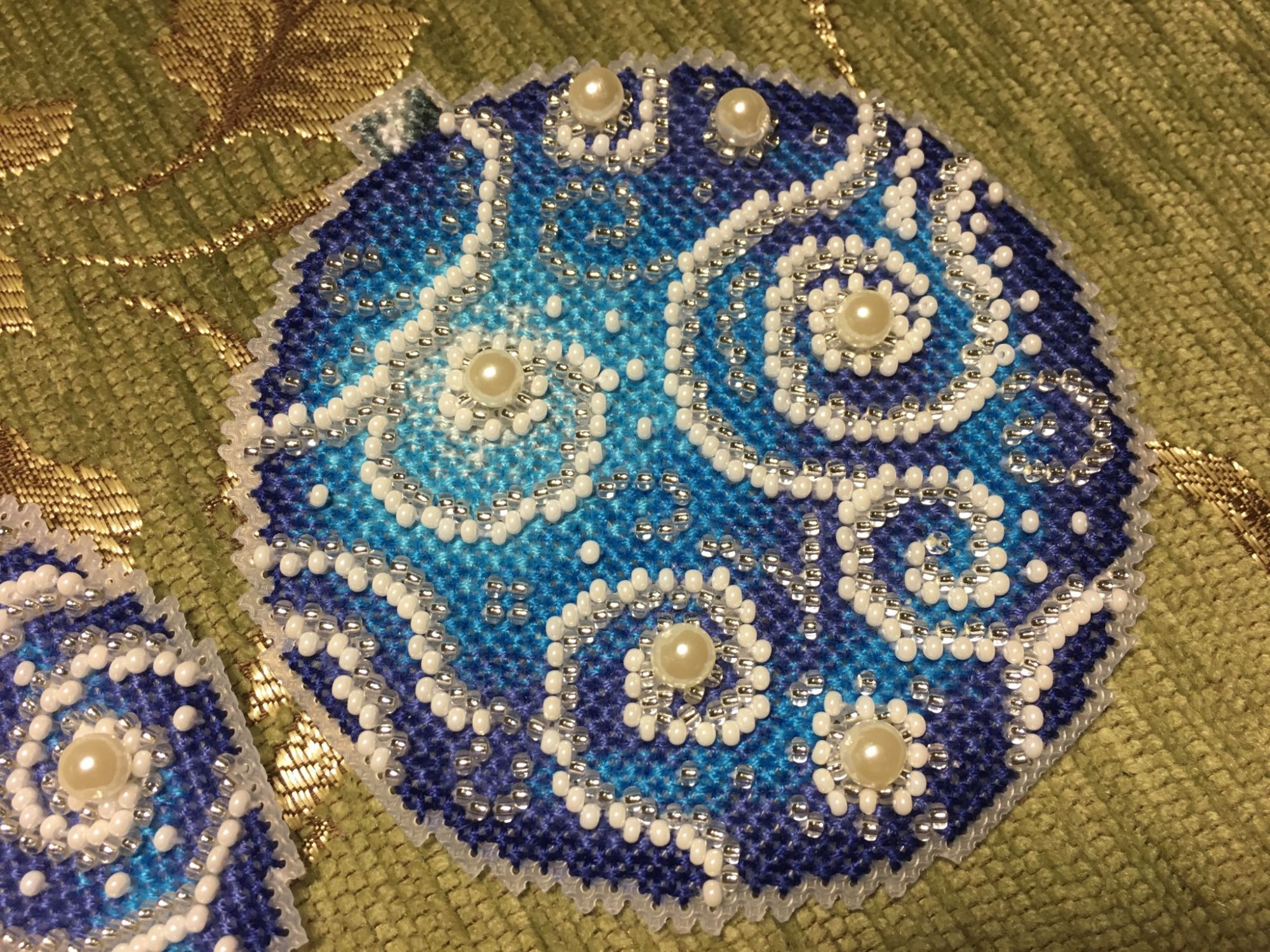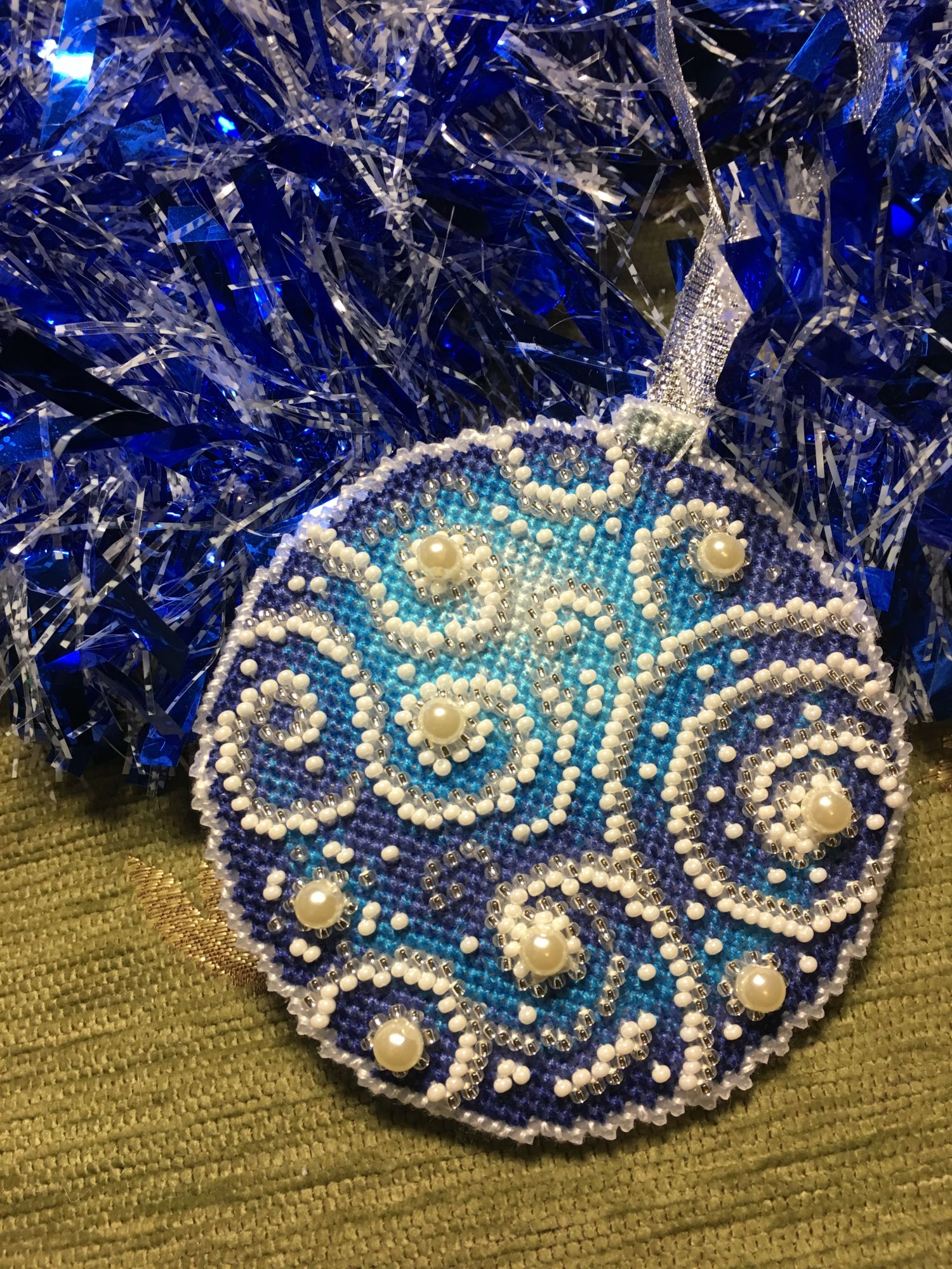 13 января 2018 Всем привет! Всех-всех ещё раз со всеми праздниками))))) Начался и закончился завершающий в этом году шарик от МП-студии «Узоры зимы», но мне как-то привычнее по цветам их идентифицировать)))) Понеслась Ну и собранный Вполне ожидаемо, Голубой оказался самым нарядным. Ну, во-первых, цвет этот я люблю очень, а во-вторых, на нём больше всего бисера, он-то и придаёт ажурность! Почему-то канва для него была не белая, а прозрачная. Но это никак не повлияло не на что, ну чууууть тяжелее было дырочки видеть. Хотела вышить все 4 шарика, и купила их все, но один выпросила сестра, поэтому у меня трио уже говорила, что шьётся легко и непринуждённо, стороны на всех шариках разные (даже на Зелёном), поэтому абсолютно не скучно. И материала больше, чем достаточно! Осталось много и бисера, и мулине во всех наборах. Всем советую! Коврик тоже плела, но там буквально 5-6 рядов добавила, позже покажу. Всё, с чистой совестью и свежими силами возвращаюсь к Деревеньке. Там остался завершающий рывок - один домик, и он самый маленький. Всем прекрасного настроения!!! irinka-mandarinka, Наталья2013, TheSunniestDay и 9 других сказали спасибо Поделиться сообщением Ссылка на сообщение